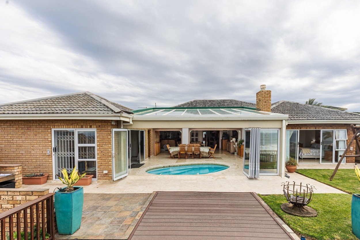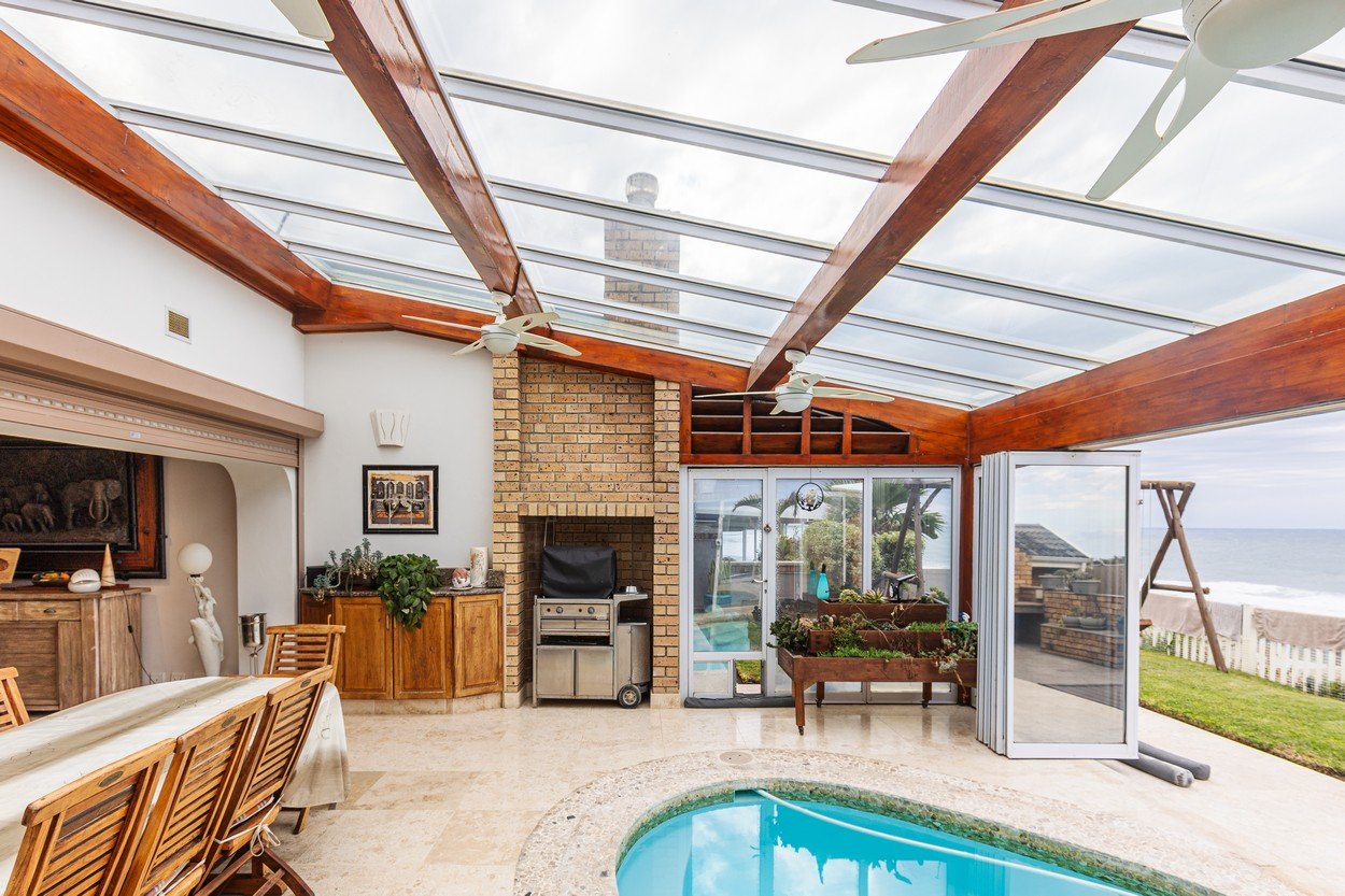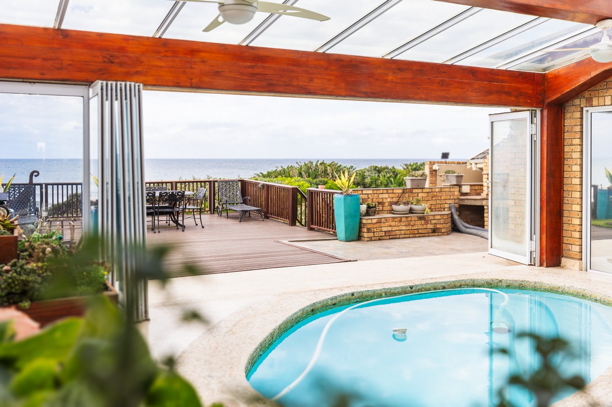 The kitchen is a chef's dream with its granite tops, eye level oven, pantry, and scullery, providing ample space and functionality. The open plan living area seamlessly connects with the indoor pool, as stack doors lead to a deck boasting breathtaking sea views. With 6 bedrooms and 4 bathrooms, there is no shortage of space for accommodating guests or a growing family.