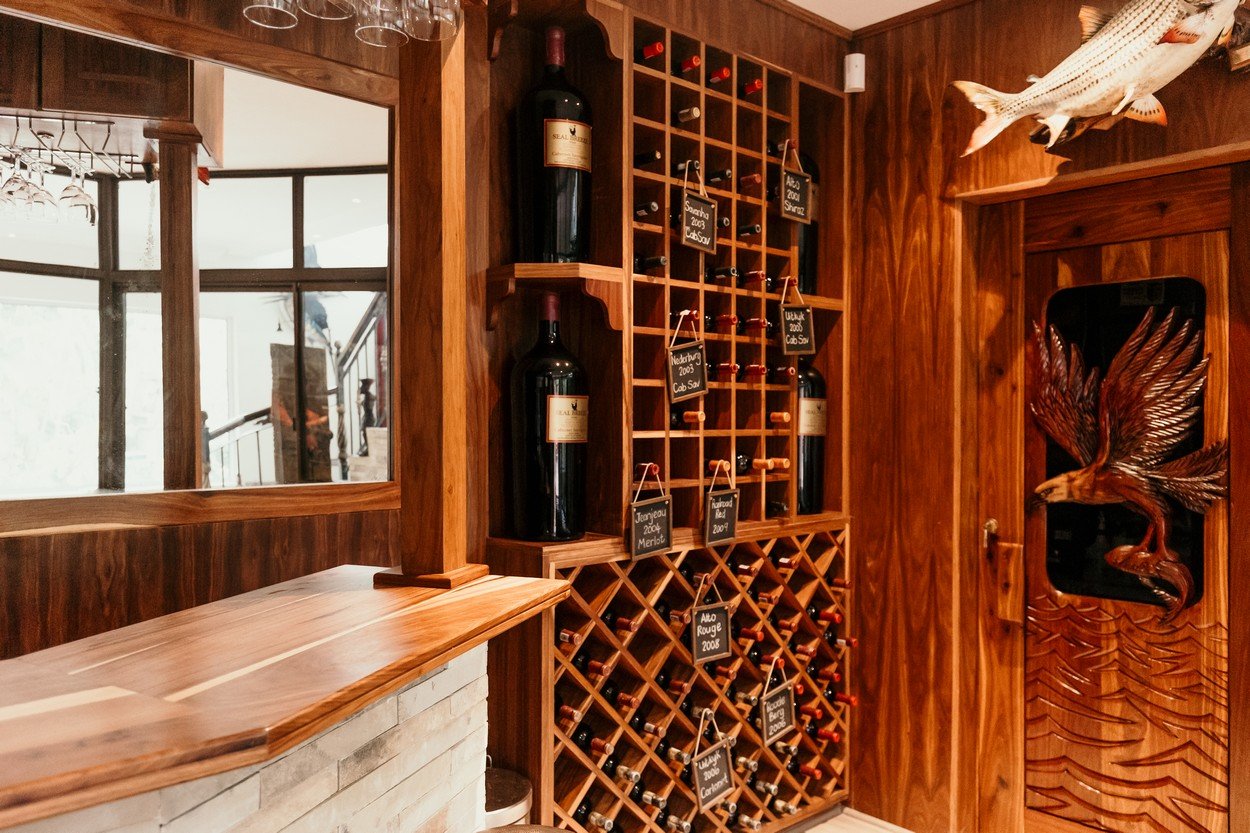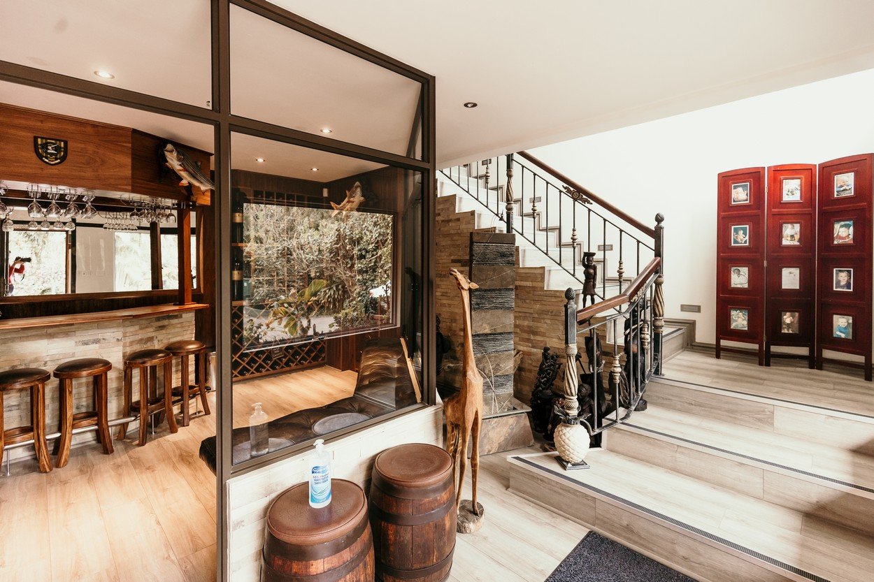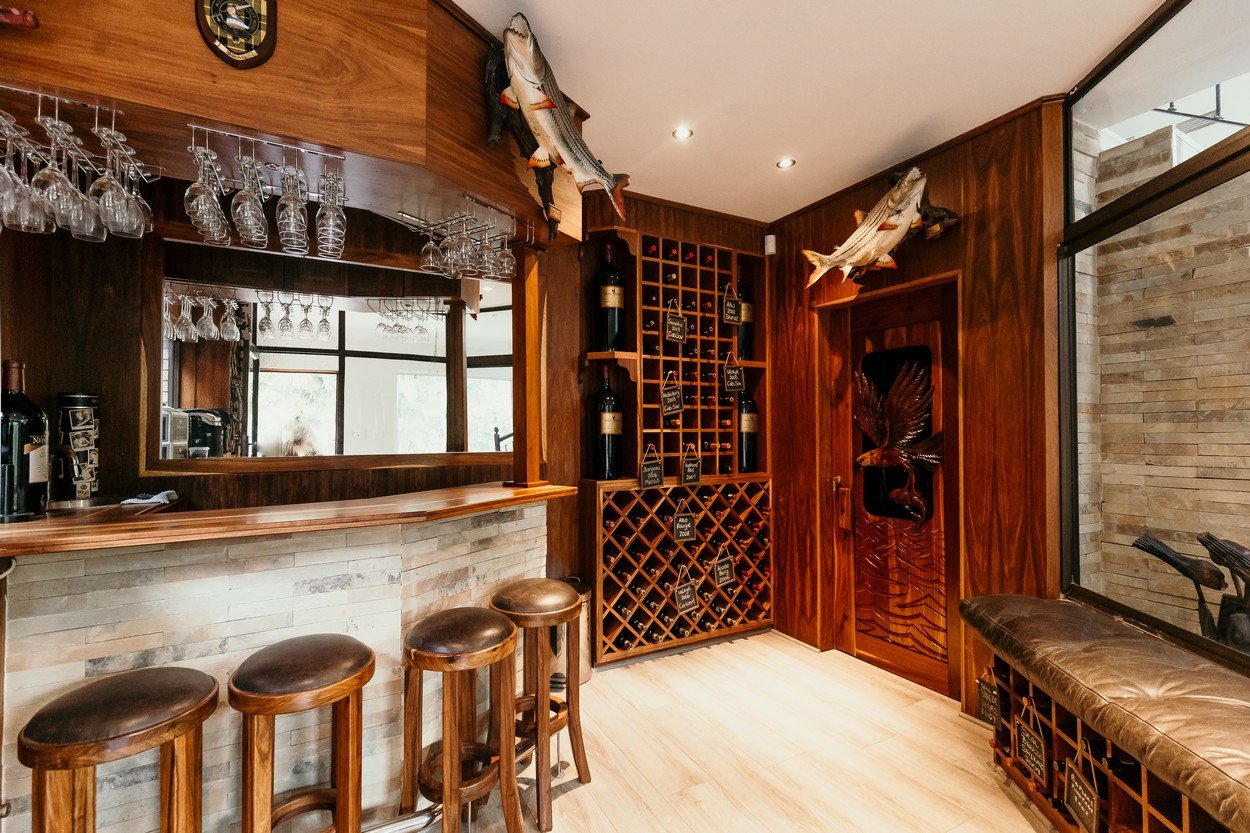 Downstairs, you'll find a wine cellar and bar counter, while upstairs features yet another bar counter for your convenience.