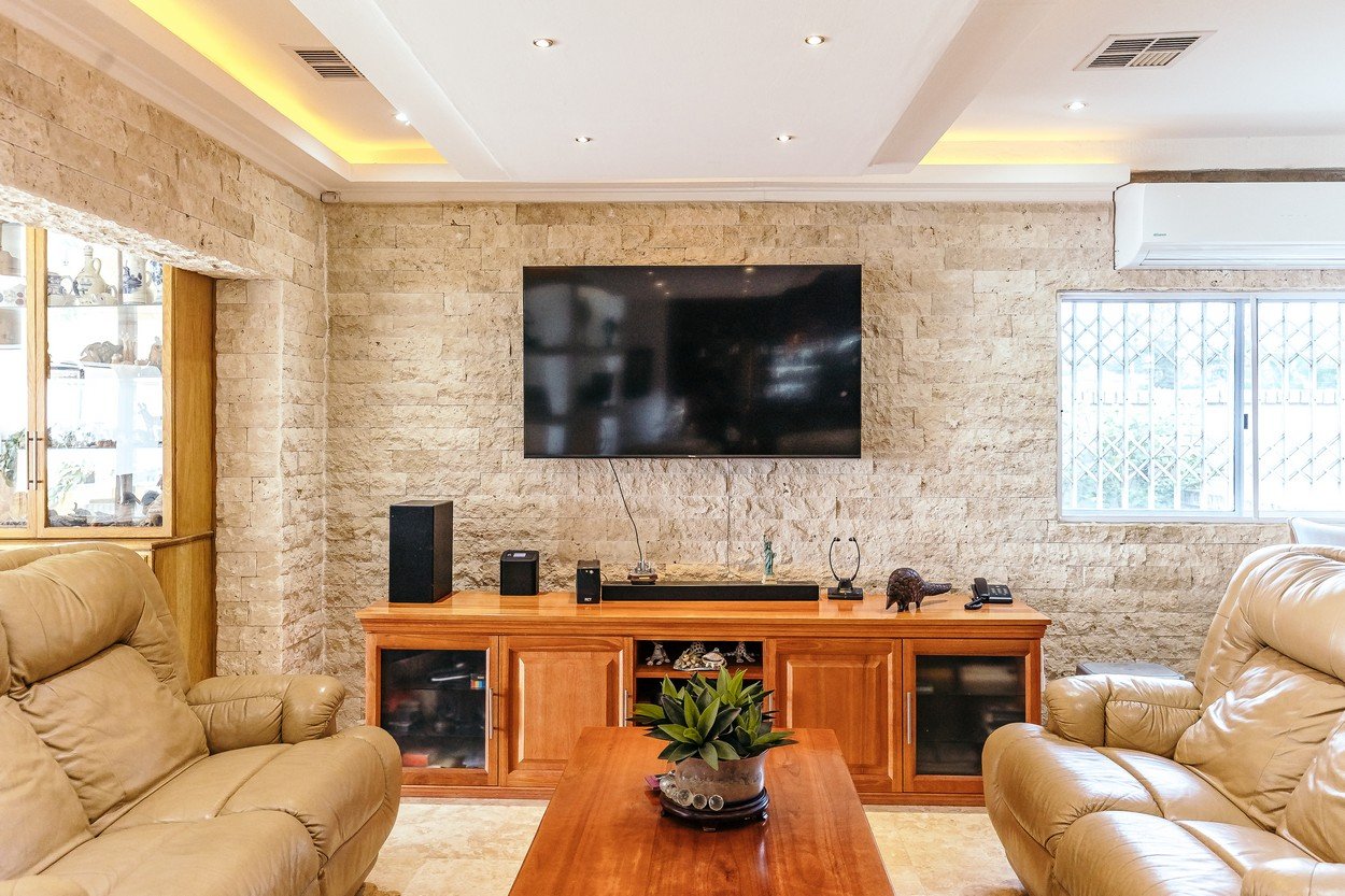 The residence is secured with an alarm system, beams, and CCTV surveillance.