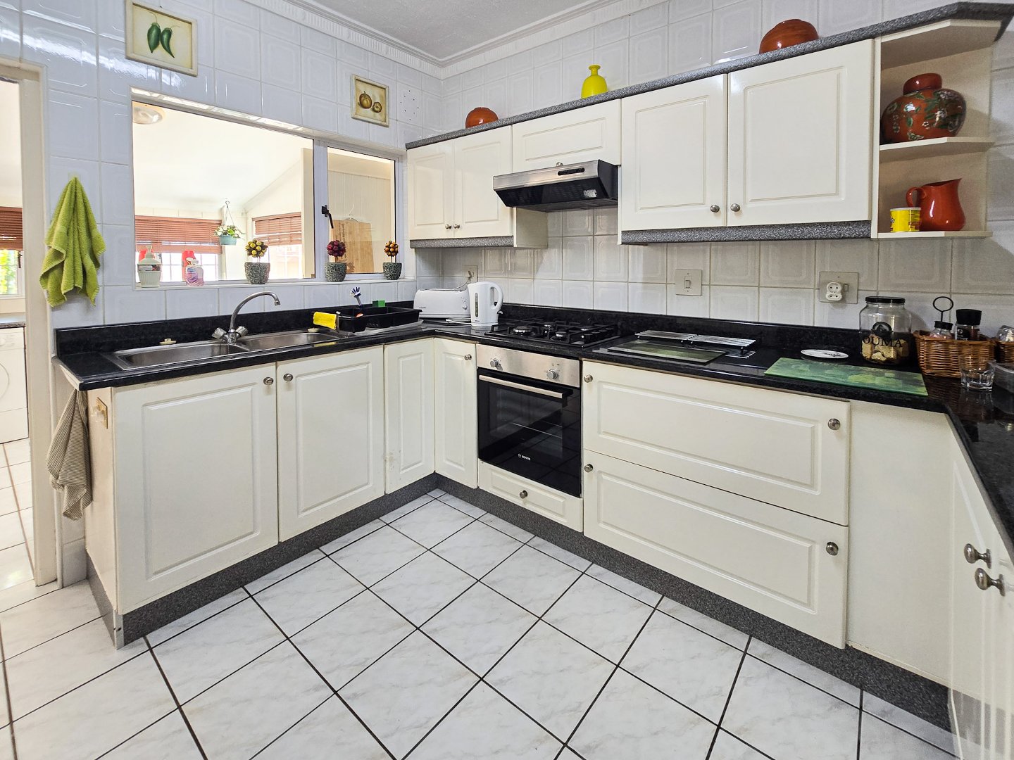 The kitchen is lovely, featuring granite countertops, a convenient gas hob, an undercounter oven, and a large scullery.