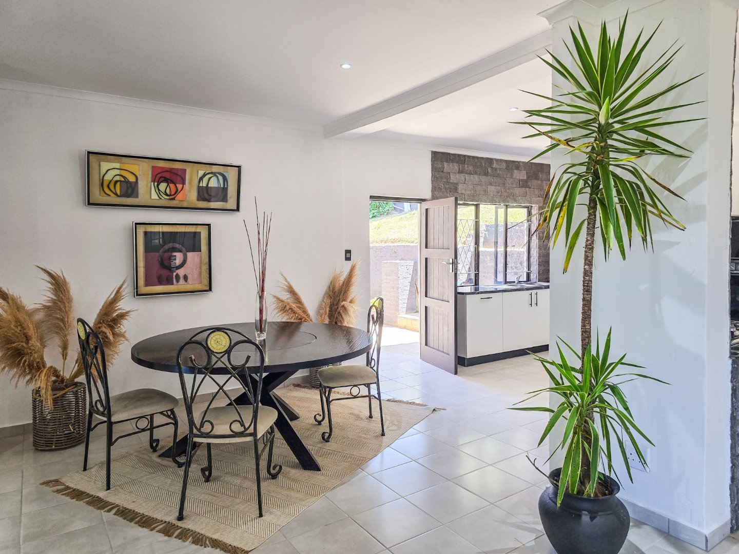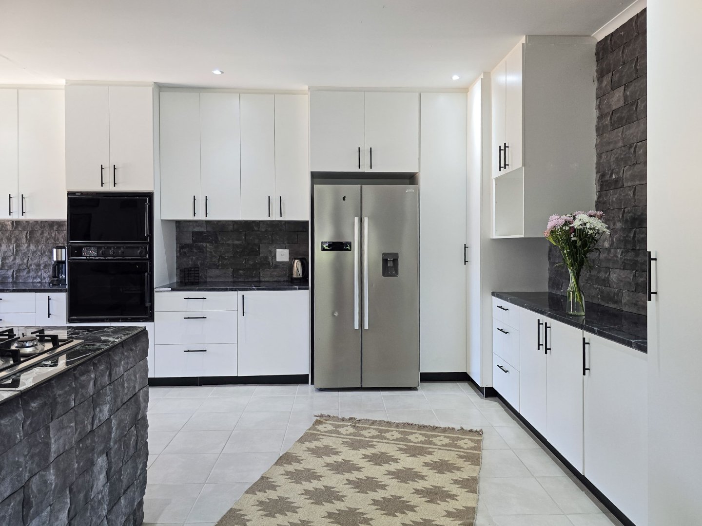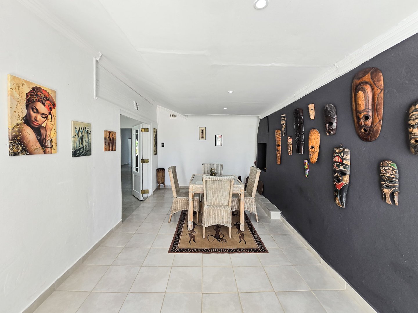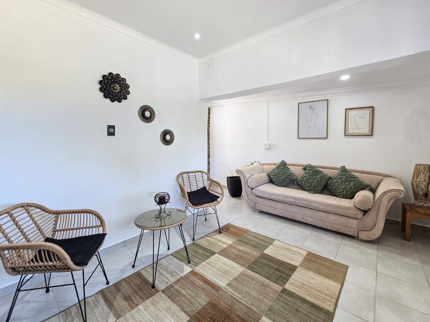 There are 4 bedrooms, two of which boasts ensuites. The one bedroom can easily serve as a cozy lounge, ideal for relaxing or hosting friends. This bedroom is currently used as a small lounge as there is no built-in cupboards. The large living area can accommodate two dining room tables, making it perfect for large family gatherings.