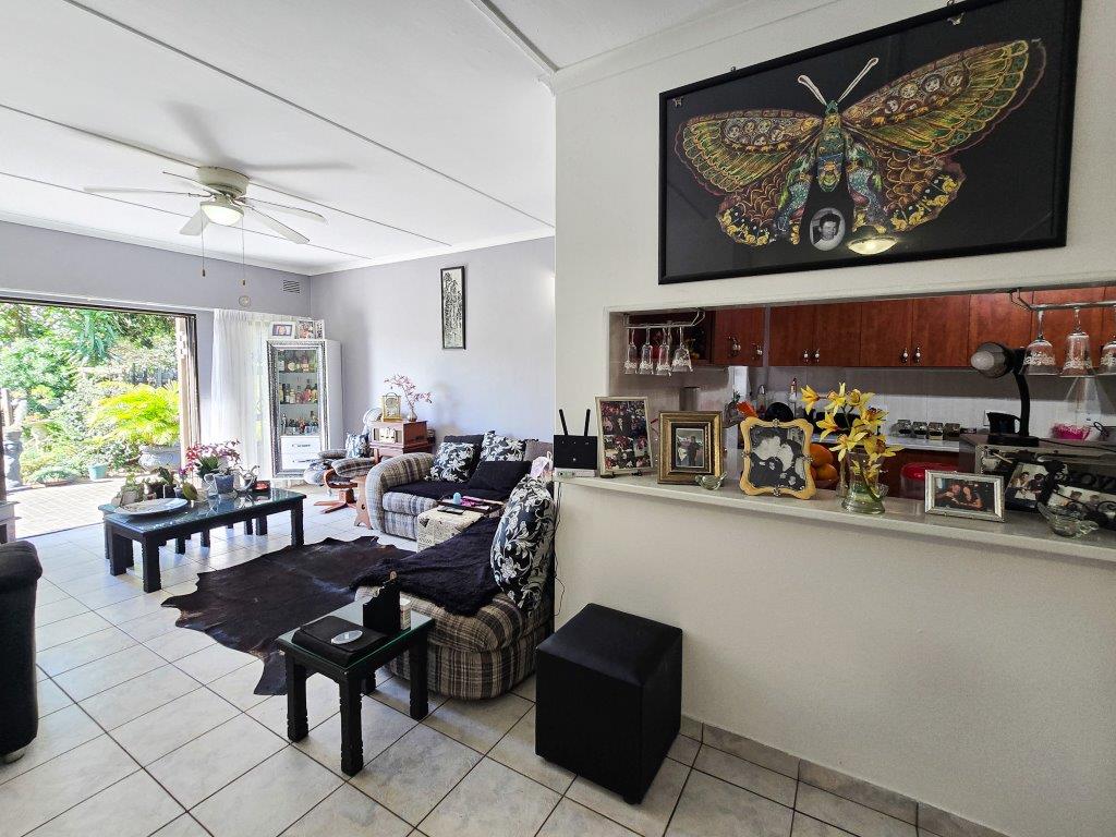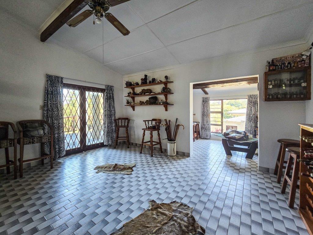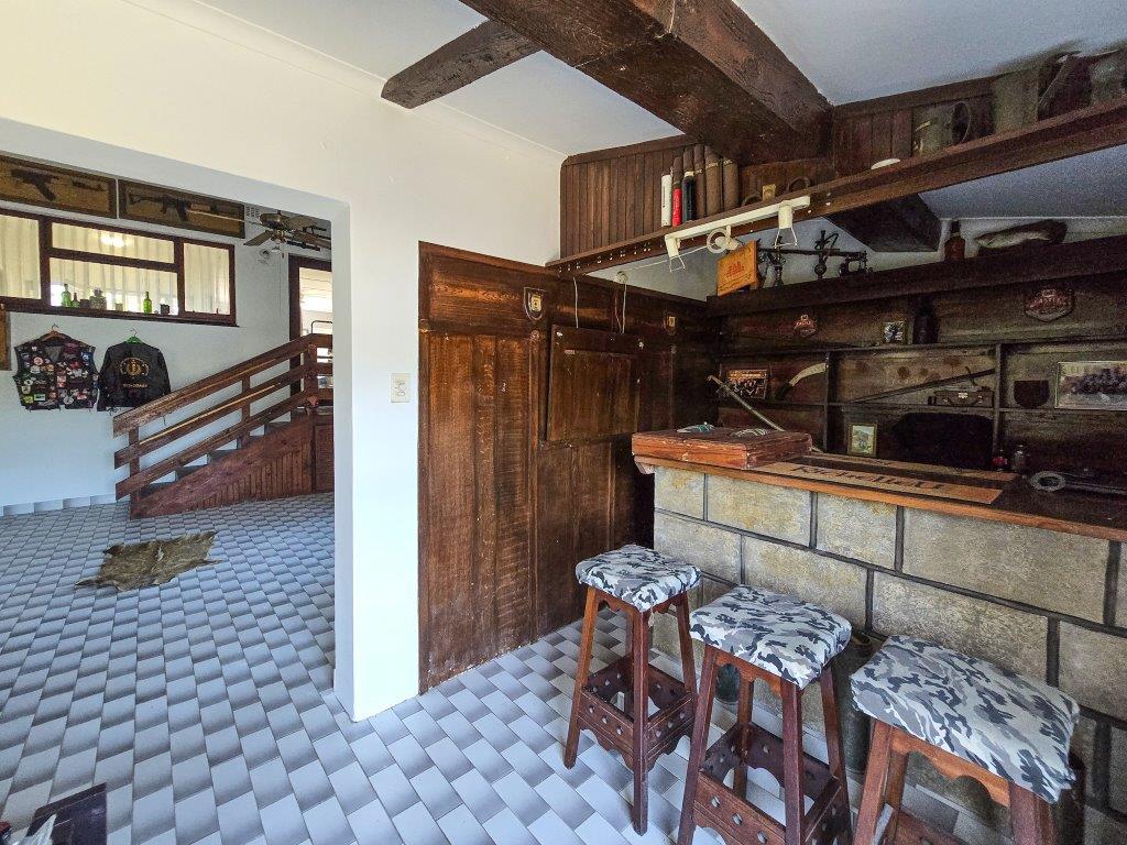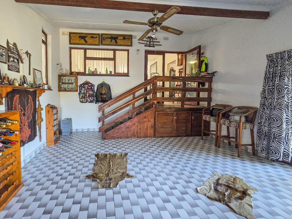 Then comes the fun part—the entertainment wing. Wooden stairs lead down to a massive entertainment room that opens through sliding doors onto a wooden deck overlooking the garden. It’s the ultimate setting for relaxed afternoons and sundowners with friends, there is a built-in bar area—ideal for parties, but also versatile enough to convert into a private flatlet for a teenager or extended family member.