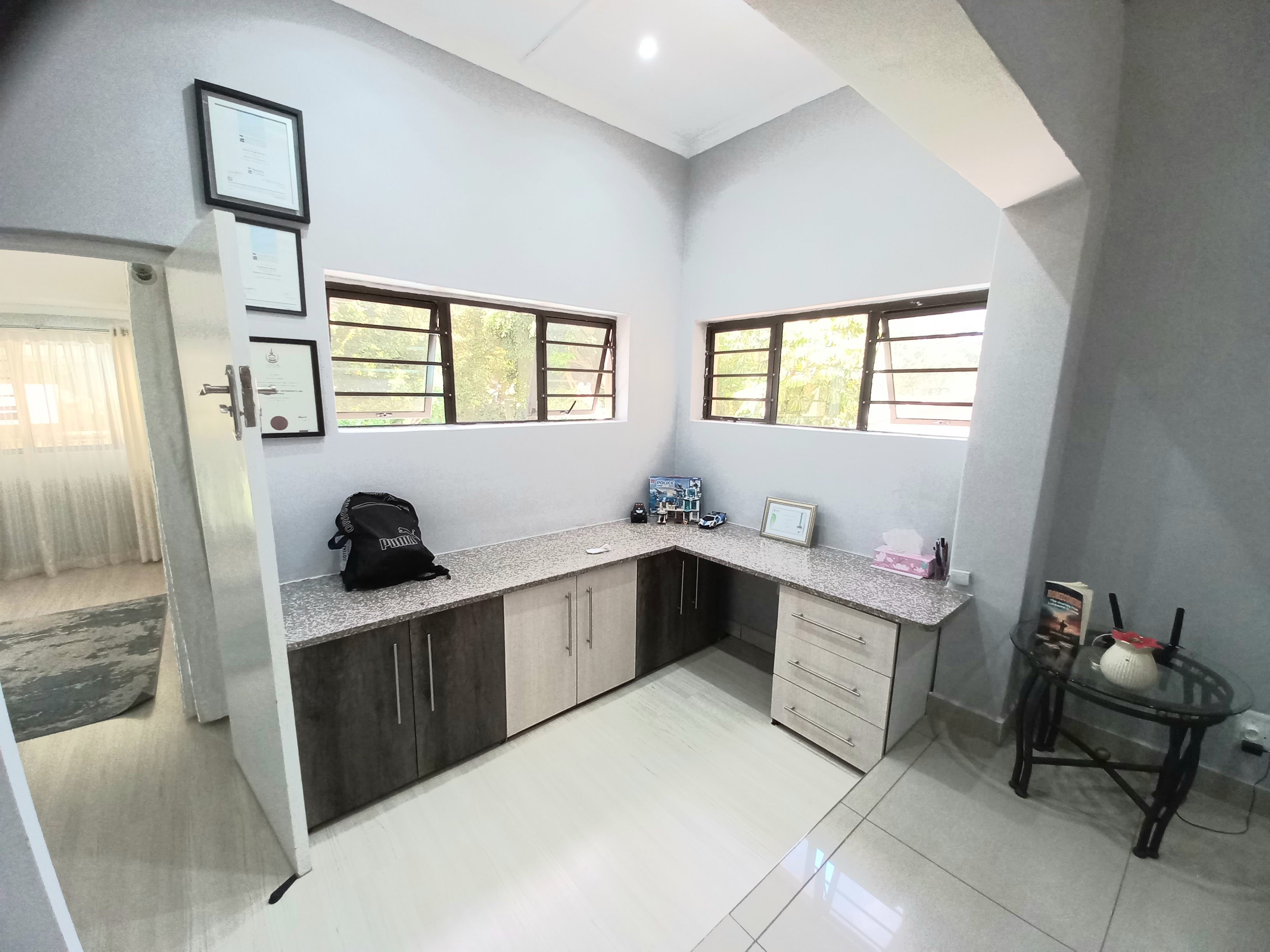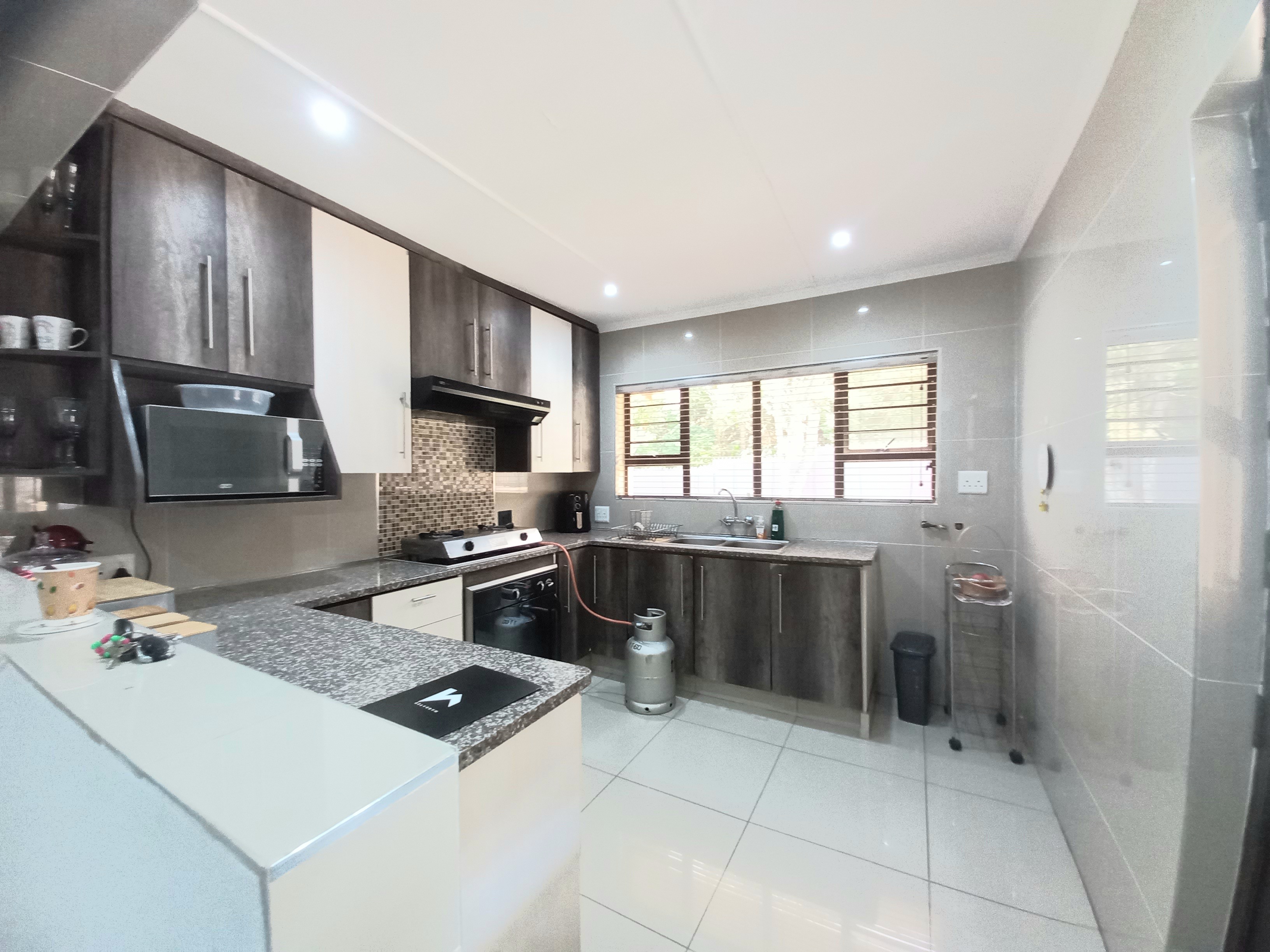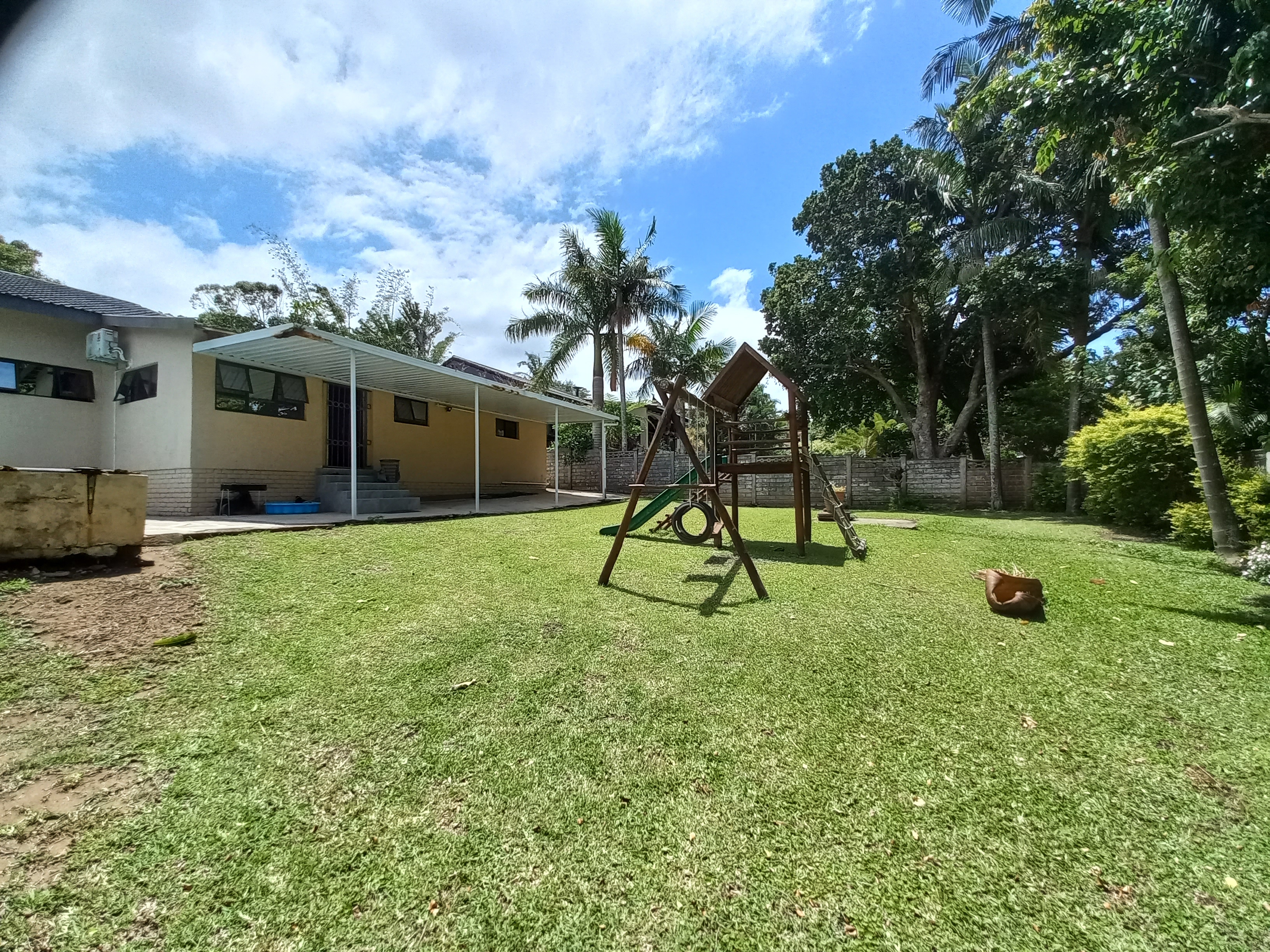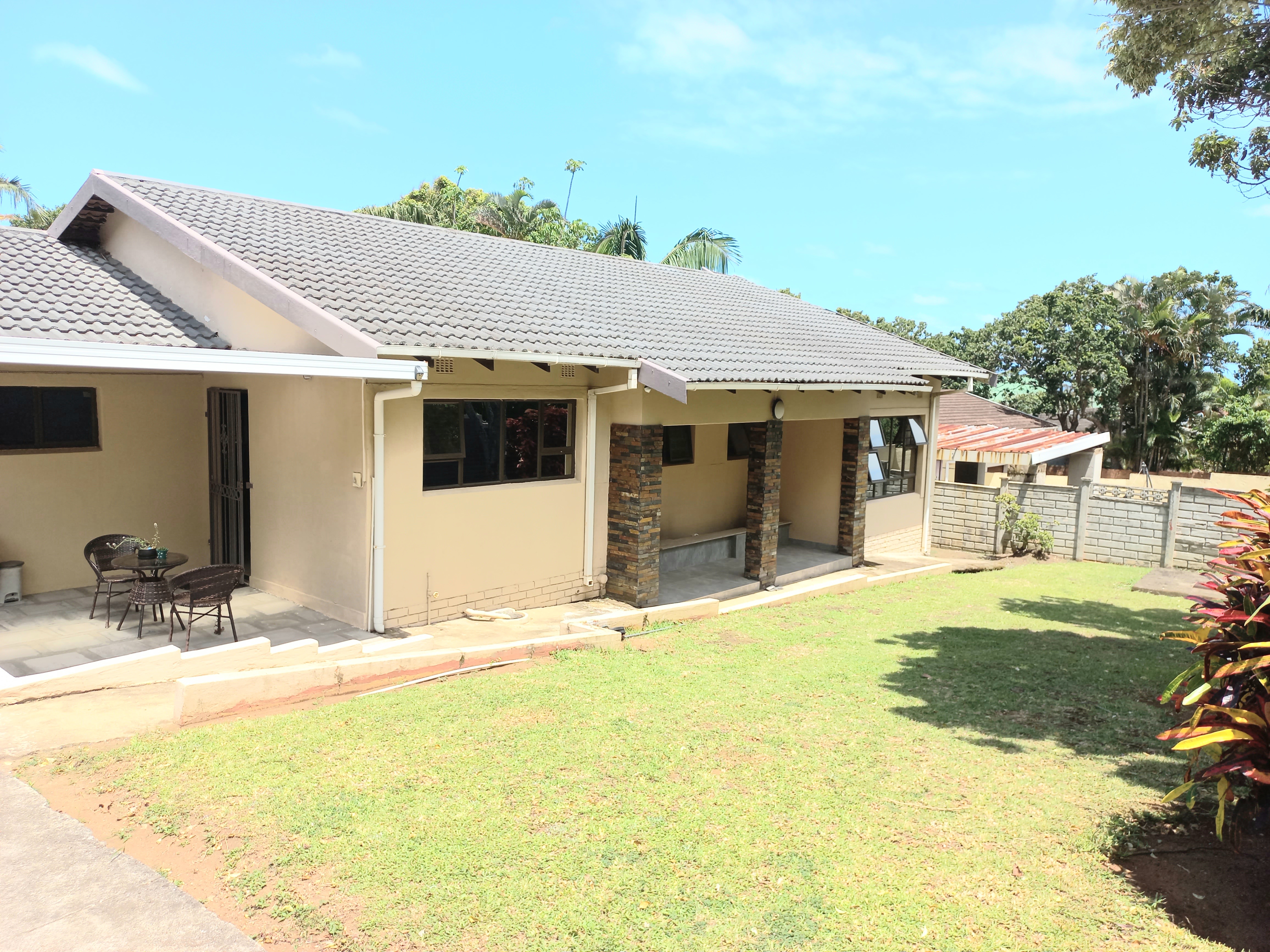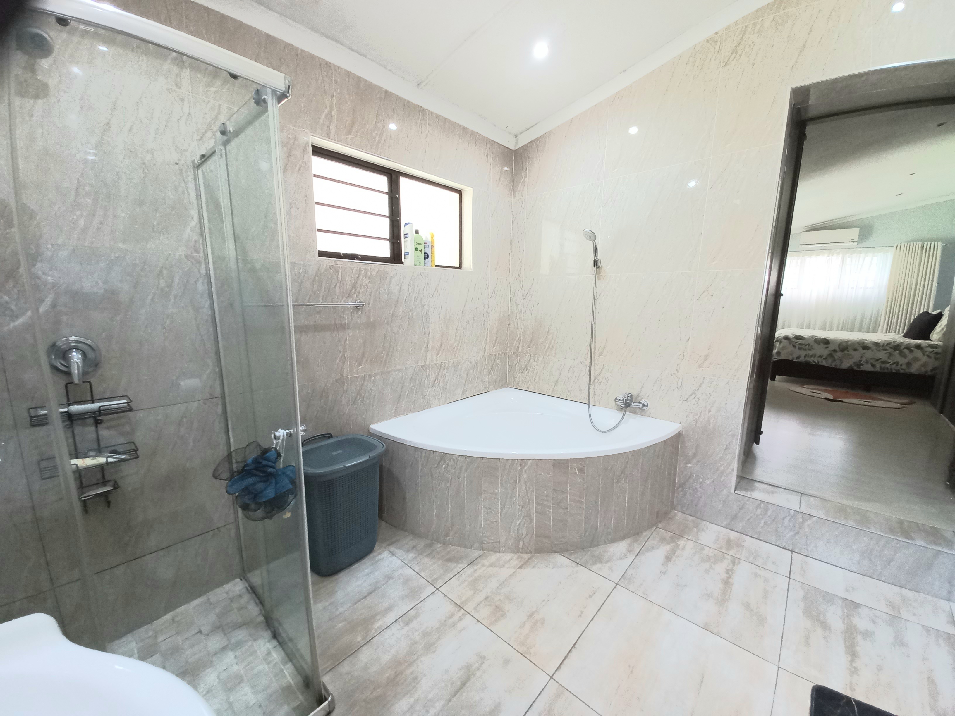 Beautiful 4 - bedroom, 3 bathroom home offering modern living at its best. The spacious main bedroom features ample built-in cupboards and a luxurious en-suite bathroom with a corner bath and shower. The second bedroom also boasts its own en-suite, perfect for guests or family convenience. This home offers a sleek, fully tiled modern interior with a stylish kitchen flowing seamlessly into the dining area and lounge - ideal for entertaining. Air conditioning in the main bedroom and lounge ensures year - round comfort. Security and practicality are well catered for with an alarm system, aluminium doors and windows throughout, burglar bars, security gates, and a fully walled year. The double tiled garage includes a toilet, basin, and shower for added functinality. Outside, enjoy a neat garden with plenty of space for kids and pets, a wooden jungle gym, and a sparkling pool - perfect for family living. Ideally situated in the sought - after Shelly Beach Area