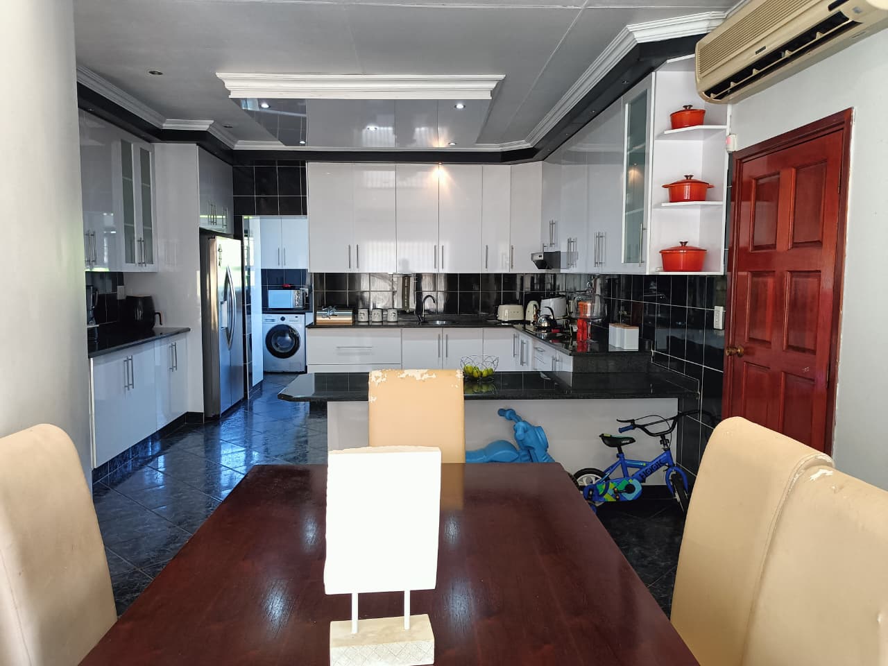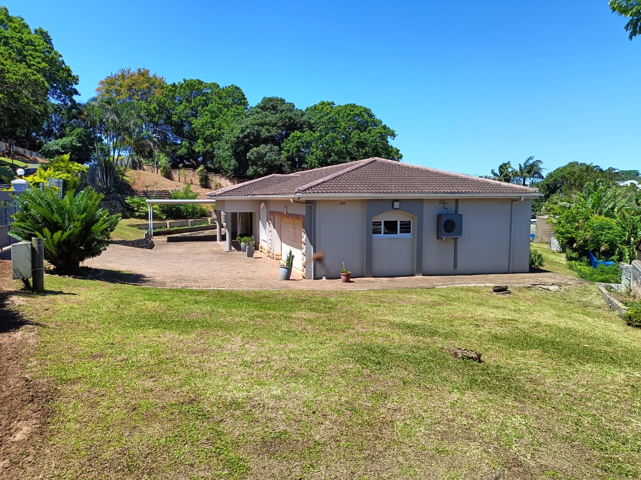 Discover this elegant and spacious upmarket home, perfectly situated in a quiet and sought-after area of Shelly Beach. This property offers a blend of comfort, style, and functionality — ideal for modern family living. Interior Features Upon entering, you’re welcomed by a spacious lounge that flows seamlessly into a separate open-plan dining area. The modern kitchen features granite countertops, a glass-top stove, undercounter oven, and plenty of built-in cupboards. A large scullery offers additional storage and convenience, complete with a second gas stove top. The home boasts three well-sized bedrooms, all fitted with built-in cupboards and air conditioners. The main bedroom includes a walk-through dressing area leading to a luxurious en-suite bathroom with a shower. A fourth room can either be used as a study on converted to a bedroom. A guest bathroom with a shower and a separate guest toilet with basin complete the interior. The home is fully tiled throughout and features beautifully designed ceilings for a stylish finish. Exterior Features Double lock-up garage plus a carport accommodating two additional vehicles. A JoJo water tank connected to the house ensures a reliable water supply. The property is fully fenced for privacy and security. Aluminium windows add a modern and low-maintenance touch. This stunning property is move-in ready and perfect for buyers seeking a peaceful, upmarket lifestyle close to all amenities in Shelly Beach. Location: Shelly Beach, South Coast: 3 Bedrooms | 2.5 Bathrooms | Double Garage + Carport