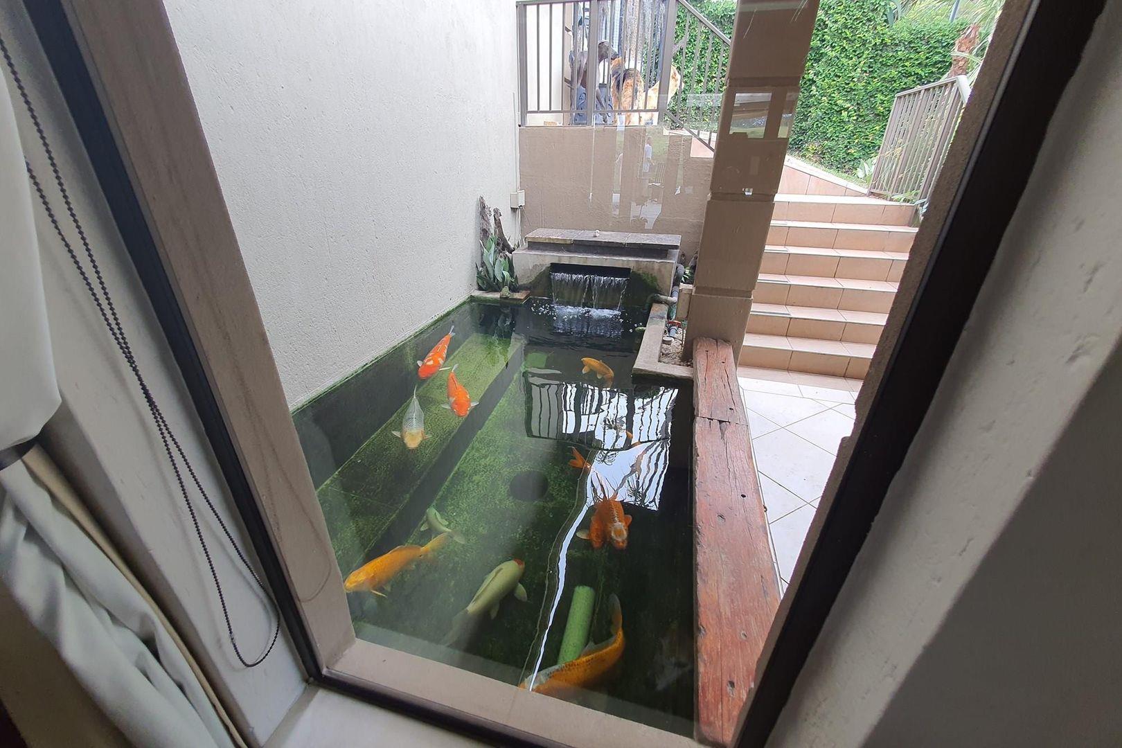Adjacent to the property lies a green belt eco section, ensuring privacy and preventing further development. From the entertainment area and pool deck, one can enjoy sweeping views of the valley adorned with lush trees and abundant birdlife. The current owner also owns the property below the residence and will be available to an interested buyer at a additional cost.