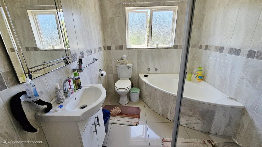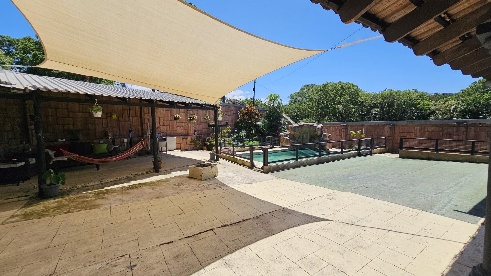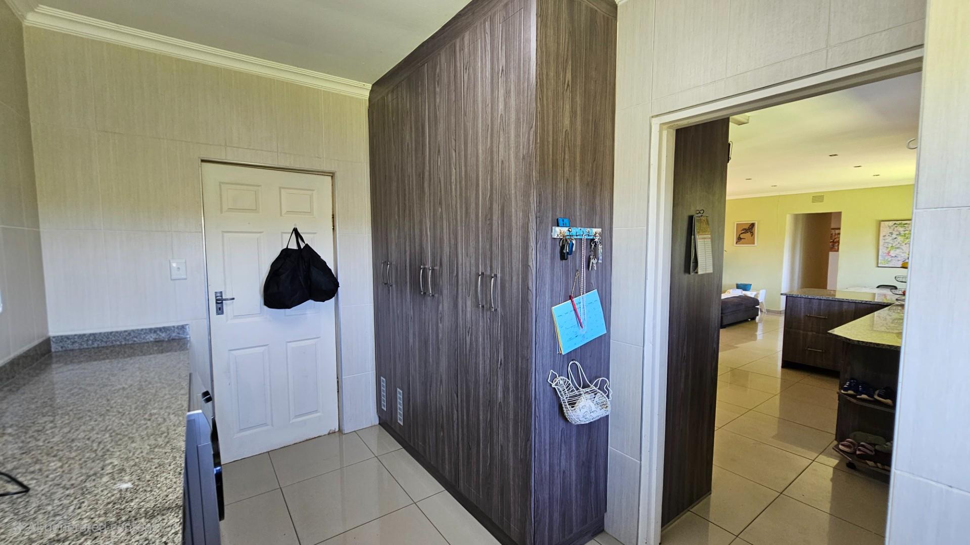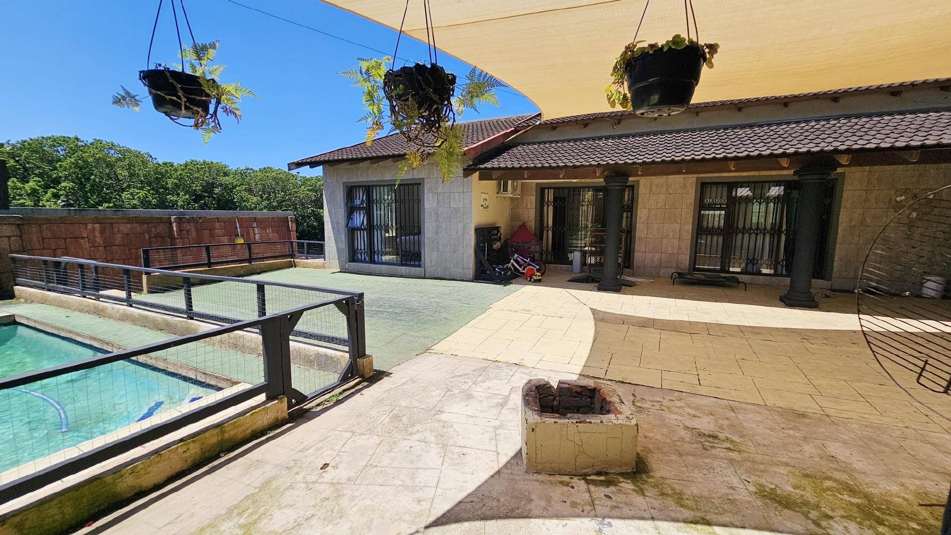 The open plan design of this home seamlessly connects the kitchen to a dining area, a comfortable lounge area and a children`s playroom/sunroom creating beautiful flow. This beautiful space has three spacious bedrooms, 2 of which are fitted with ensuite bathrooms. Each bedroom has ample wardrobe space and two of the bedrooms have direct patio access. The home also has additional office space perfect for a home run business, although it could also double up as a flatlet with a few modifications. Step outside to discover a private oasis, the lush garden and crisp blue swimming pool with a rock waterfall creates a tranquil escape. A covered patio makes this area ideal for outdoor dining and entertaining. The property is also totally walled and all entrance points have trellidoors ensuring peace of mind. The home offers adequate parking as well as a double garage with roll up doors. The additional benefit of this property is that it offers staff quarters making it possible for staff to live in if need be. The home also offers a reserve water tank as well as a filtration system that filters the water before it goes into the tank or into the home.