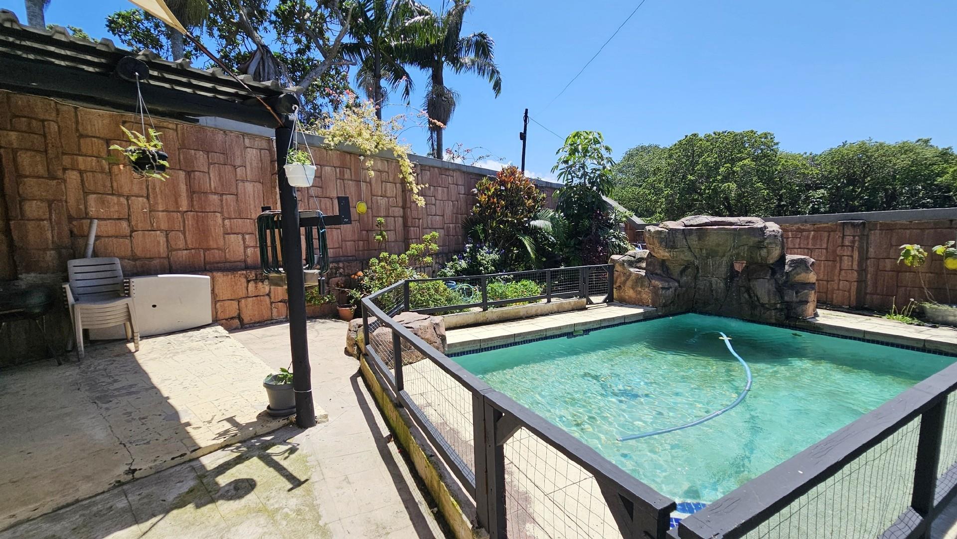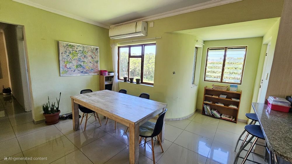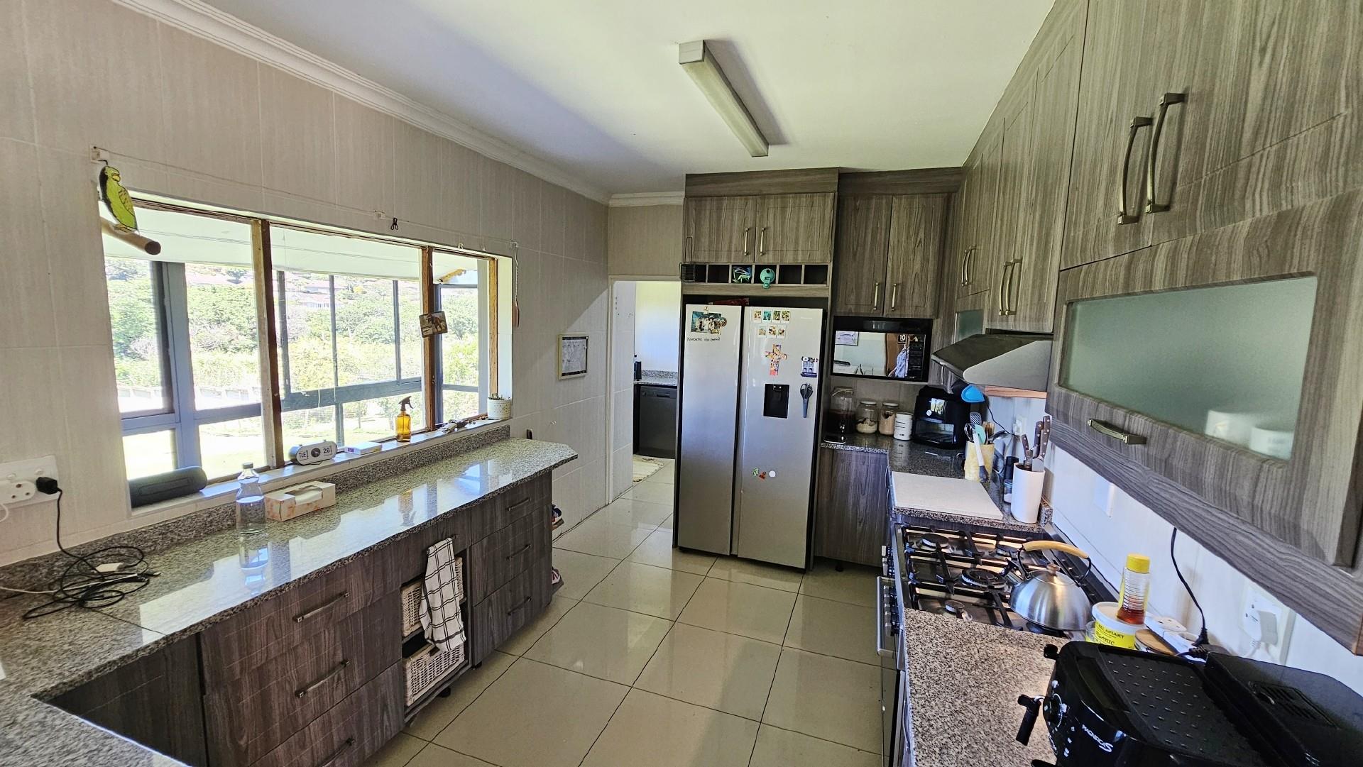This inviting 3 bedroom,3 bathroom residence in Shelly Beach offers a perfect blend of comfortable living in coastal charm. Ideal as a family home or holiday retreat, the property boasts a spacious layout perfectly designed for relaxation and entertaining. This property has an enormous garden with, so much potential! Currently it offers a variety of fruit trees and the owners have their own chicken coop setup, creating a very self sustaining space as there is ample room for veggie boxes and beautiful gardens. The modern kitchen is the highlight in the home, featuring extensive woodgrain cabinetry in both the kitchen and scullery area, finished with elegant granite countertops and sleek white tiled floors. It is also equipped with a sizeable gas hob, extractor fan and ample space for a double door refrigerator along with other appliances.