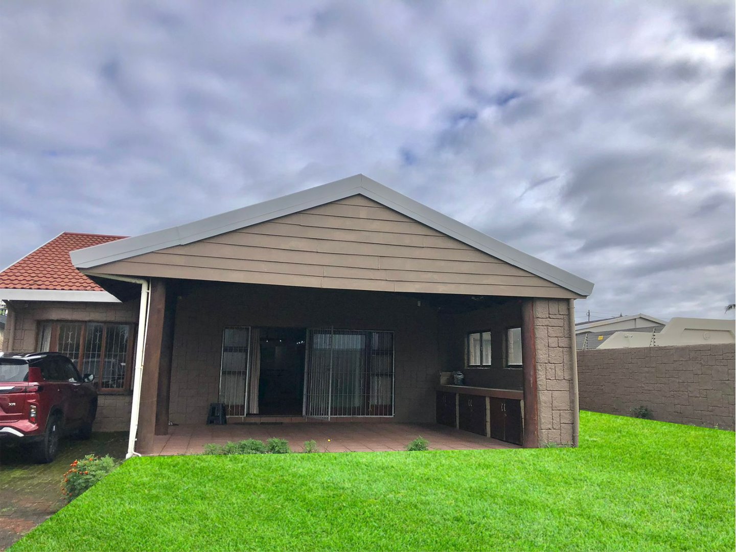 This property has so much to offer when looking at an investment. Welcome to the main house from the undercover patio to the large open plan lounge and kitchen with granite tops, breakfast counter gas hob and scullery. Enter the huge dining area / entertainment area with build in gas braai, overhead projector with a pull down flat screen for hours of family movies or parties. Sliding doors lead to another undercover patio. The main house comprises of 5 large bedrooms all with build in cupboards. 3 of the bedrooms have en-suite bathrooms, making comfort and practicality a priority. There is a 4th full bathroom servicing the other 2 rooms.