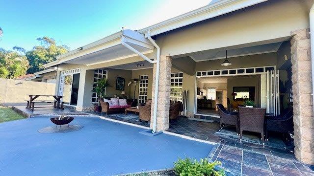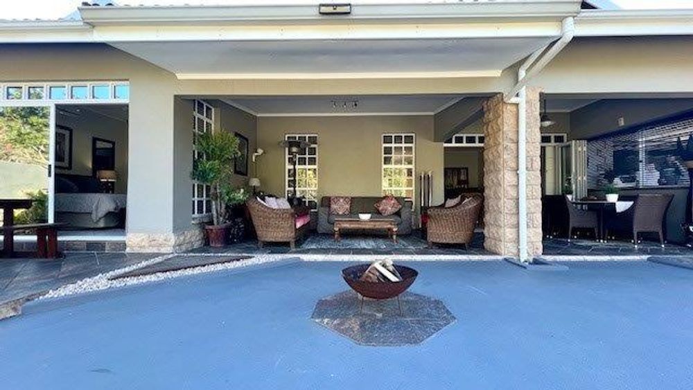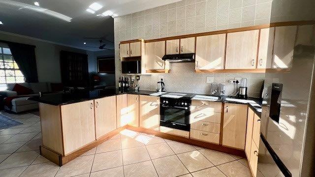 The beautiful open-plan kitchen is fitted with granite countertops breakfast counter and has ample cupboard space. A separate laundry and scullery area keeps the main kitchen organized and tidy, leading to a covered courtyard for additional convenience.
