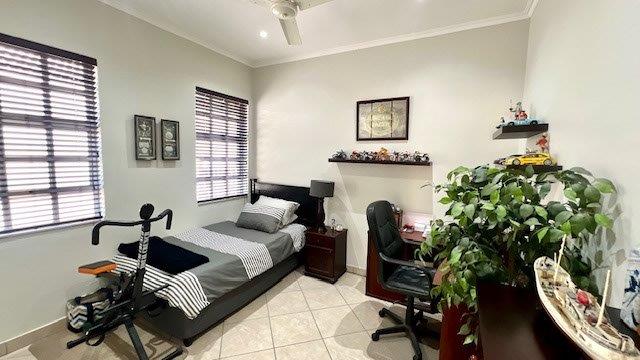 All bedrooms come with built-in cupboards, fitted ceiling fans, while two are equipped with air conditioners for added comfort.