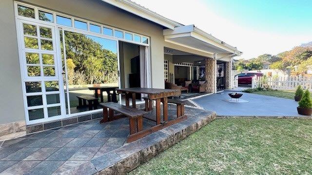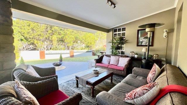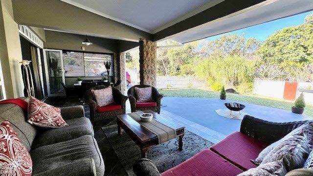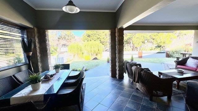 A large covered patio provides an ideal space for entertainment and outdoor relaxation, seamlessly connected to the interior through stacker doors. The open-plan dining and lounge area creates a spacious and inviting atmosphere, perfect for hosting gatherings or enjoying family time.