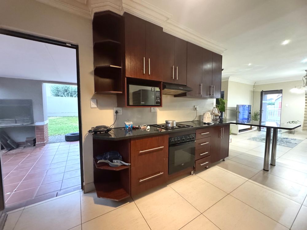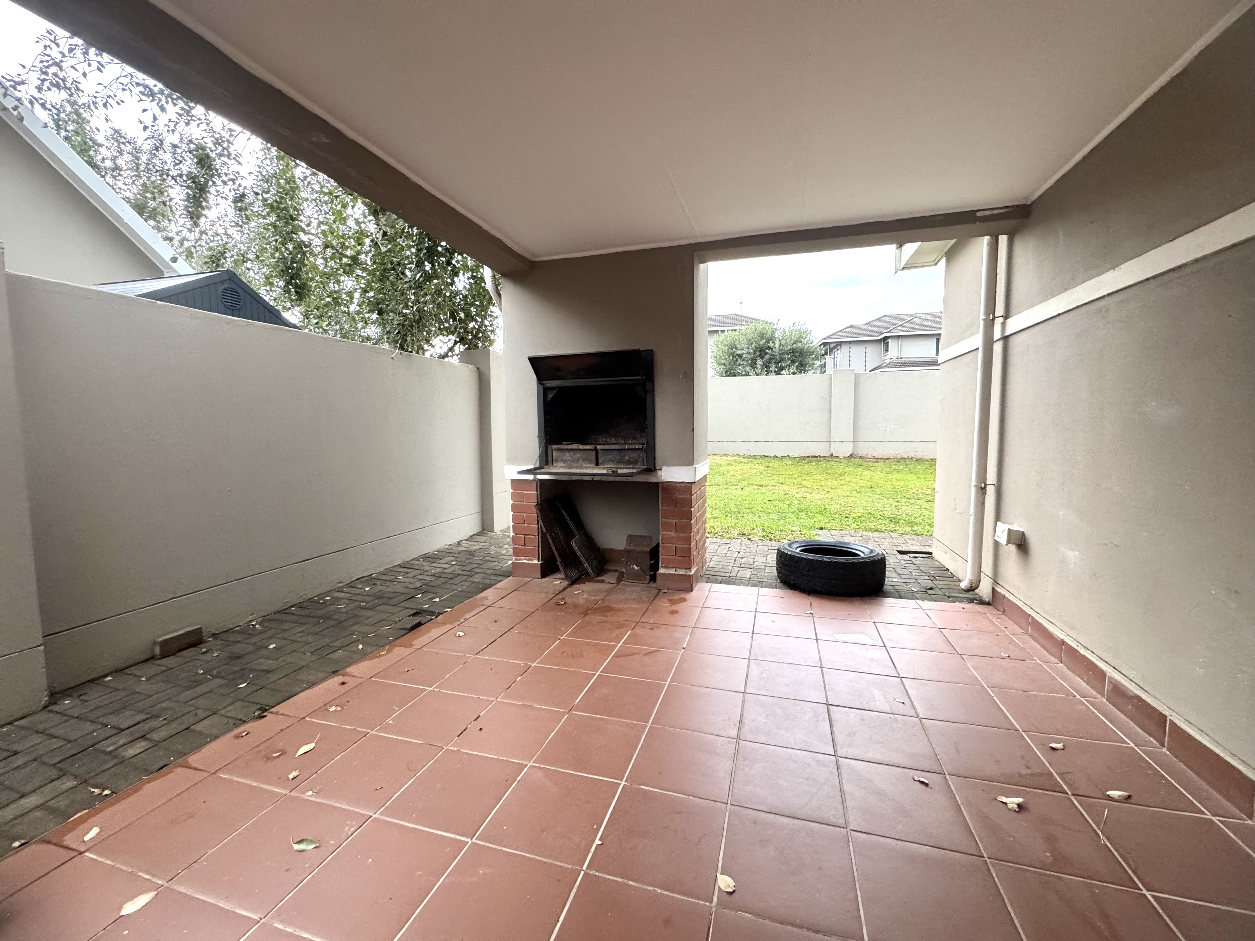 For those who enjoy entertaining, the home features a covered patio with a built-in braai, overlooking a generously sized private garden – ideal for gatherings or relaxing in a tranquil setting.
