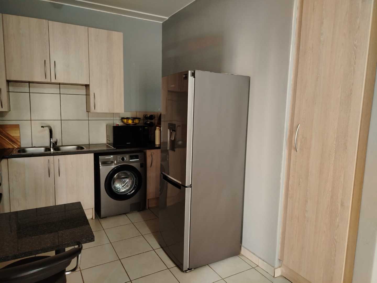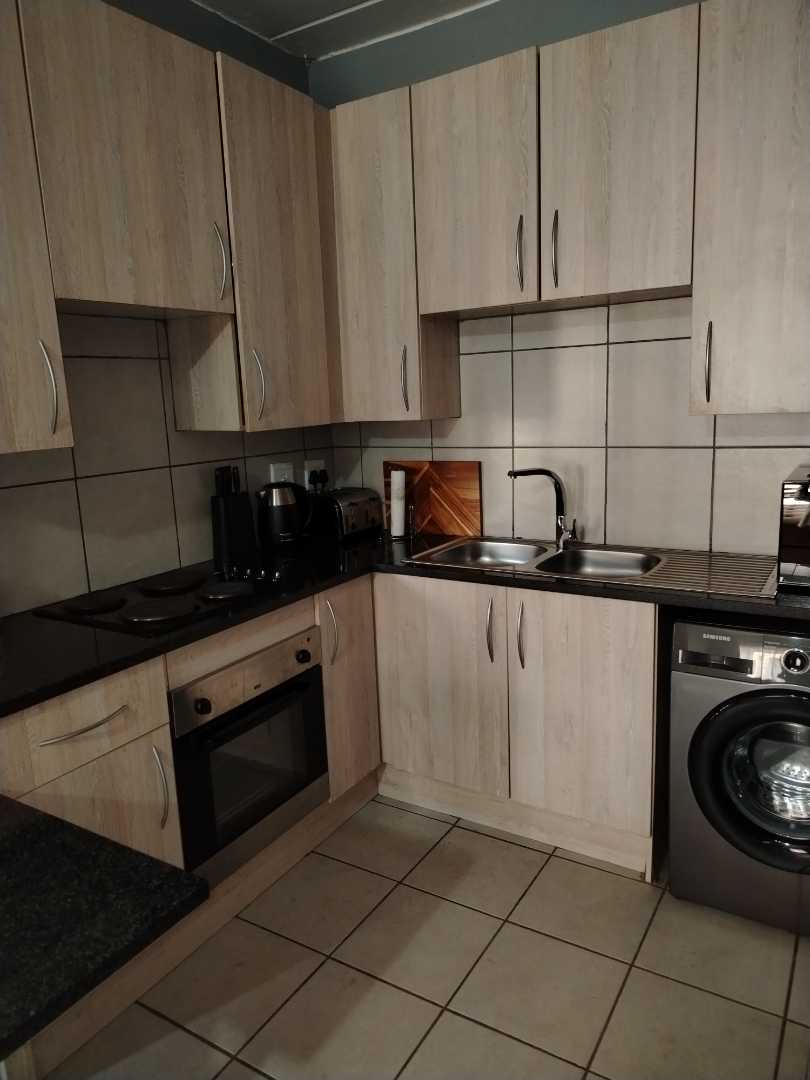 The heart of the apartment is its open plan kitchen, complete with built-in cabinets and an electric stove, making cooking and entertaining a delight. Adjacent to the kitchen is a cozy lounge area, ideal for unwinding after a long day or hosting guests.