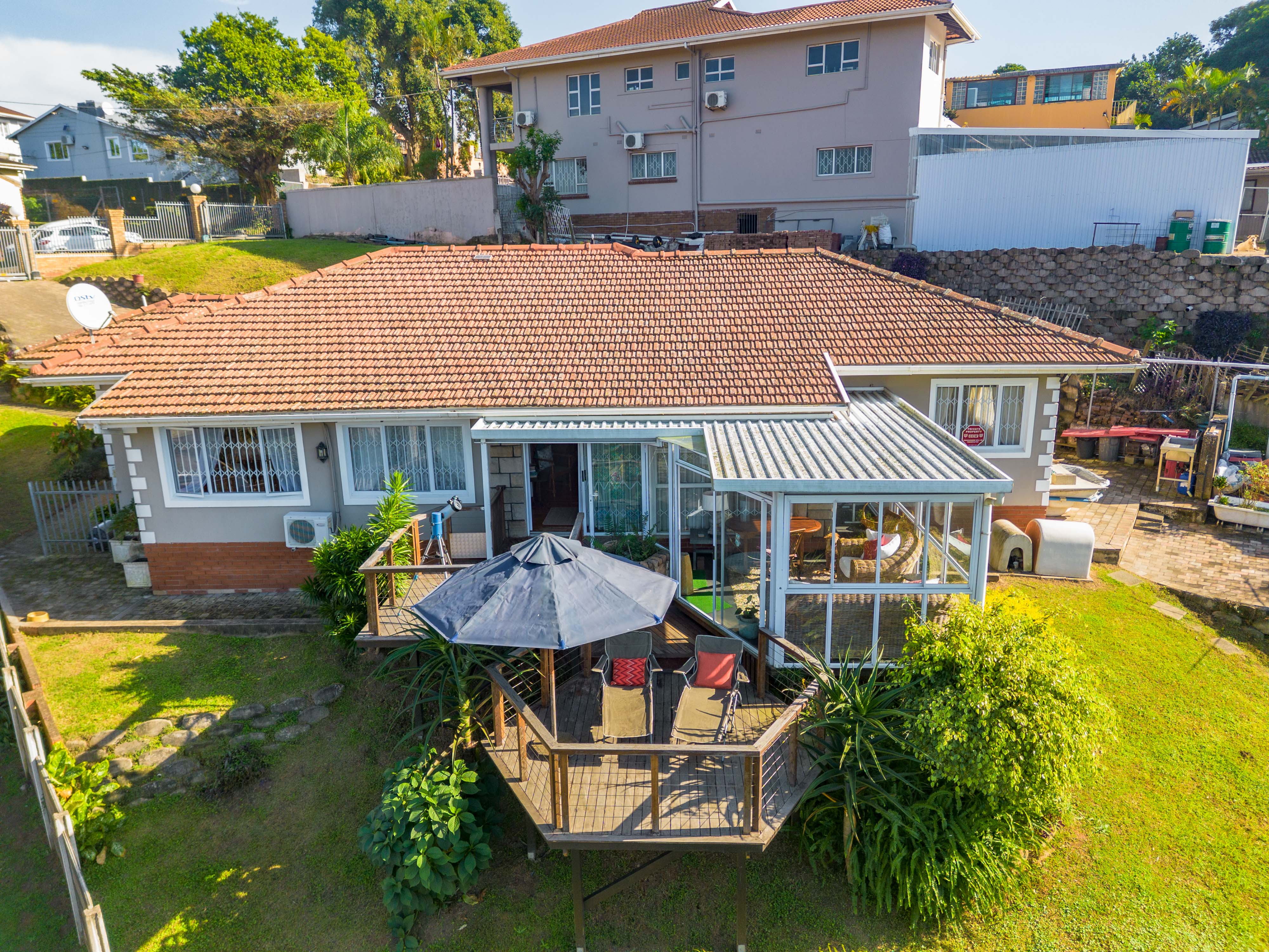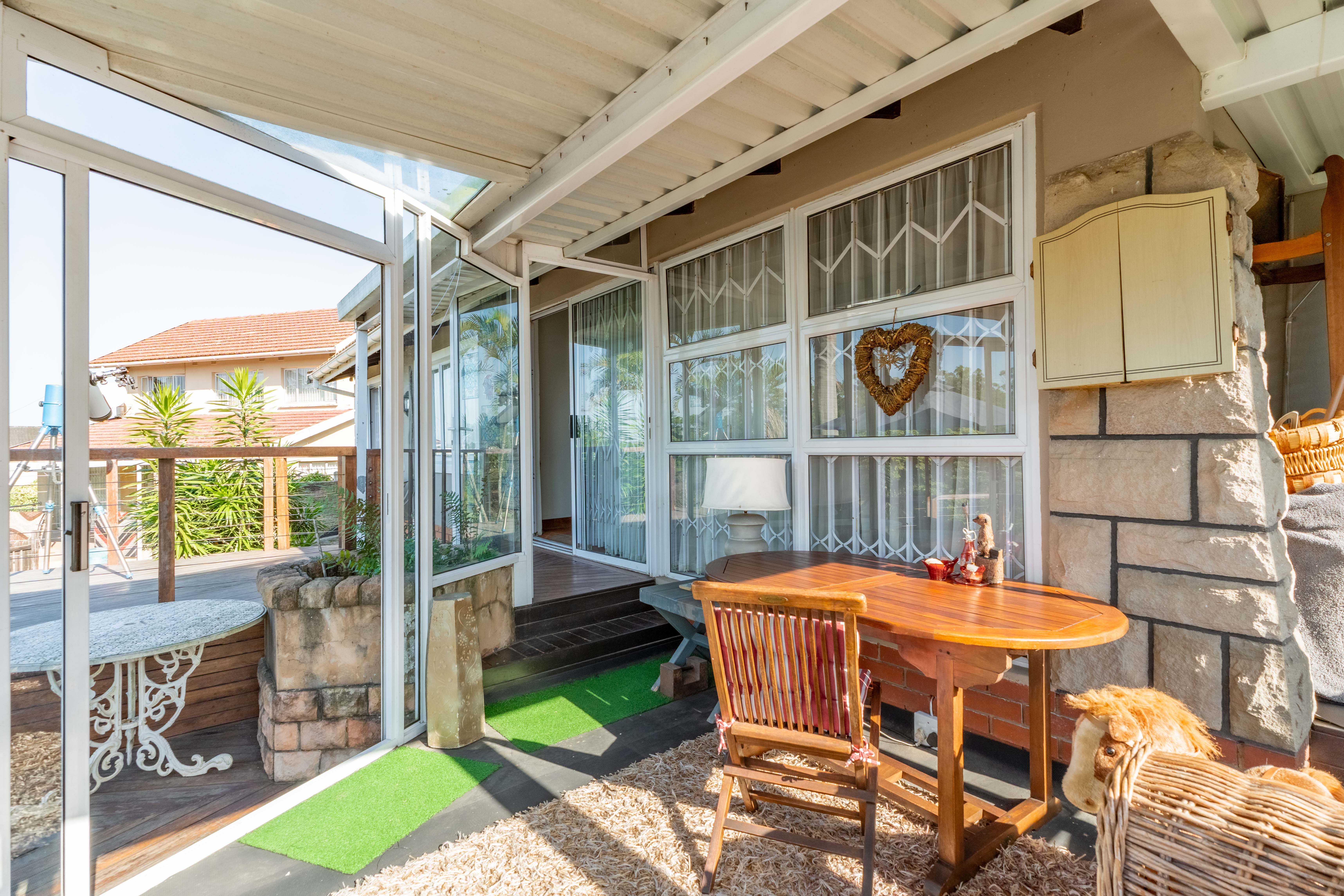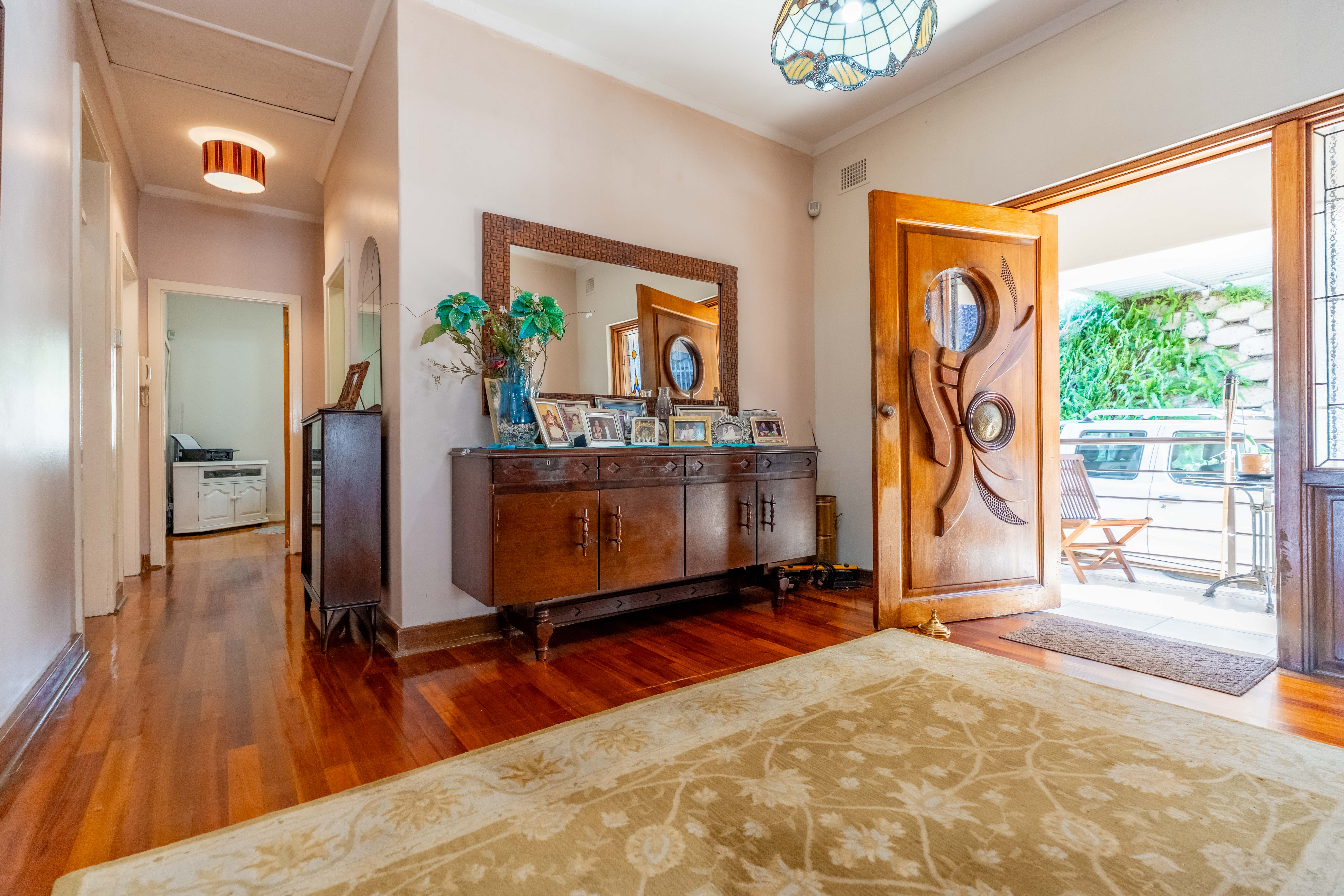 Lovingly owned and meticulously maintained for over three decades, this residence brims with charm and character, its saligna wooden floors adding warmth to every step. As you enter through a grand door with stained-glass windows, a spacious entrance hall welcomes you, leading to a spacious lounge that flows seamlessly onto a wooden deck. Here, surrounded by lush greenery, you can stargaze with a telescope or host a lively braai. Adjacent, an enclosed sun-lounge offers a tranquil retreat for family game nights or quiet moments with a book.