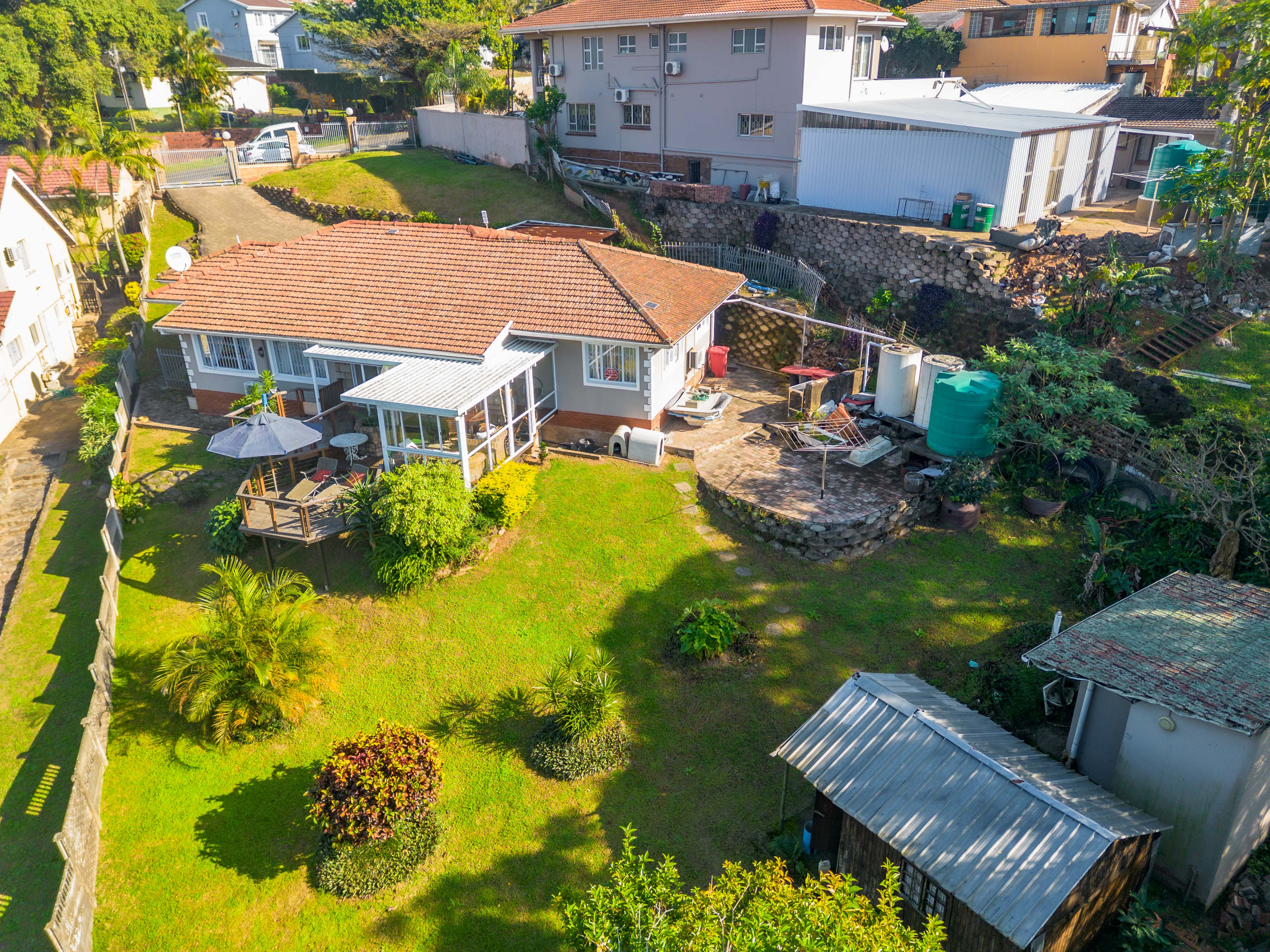Beyond the main house, practical features include discreet staff quarters, Jojo tanks for a reliable water supply, and a fully fenced property with secure electric gated access.