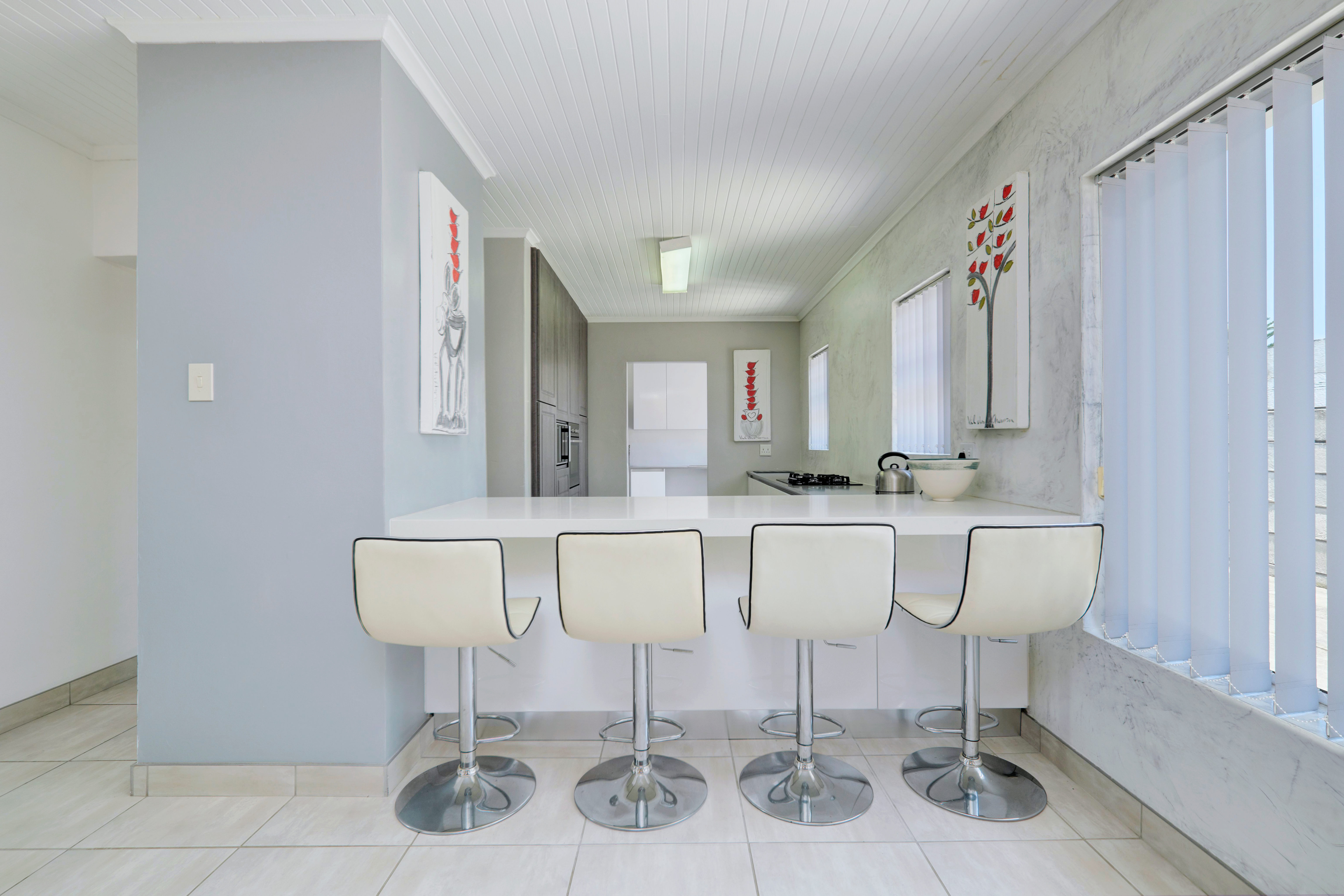 The home features a generous entertainment area that flows seamlessly into three separate living areas, offering excellent versatility for family living and hosting guests. One of the living spaces is enhanced by a double-volume ceiling, creating a wonderful sense of light and openness. Two dining areas further add to the home’s flexible layout.