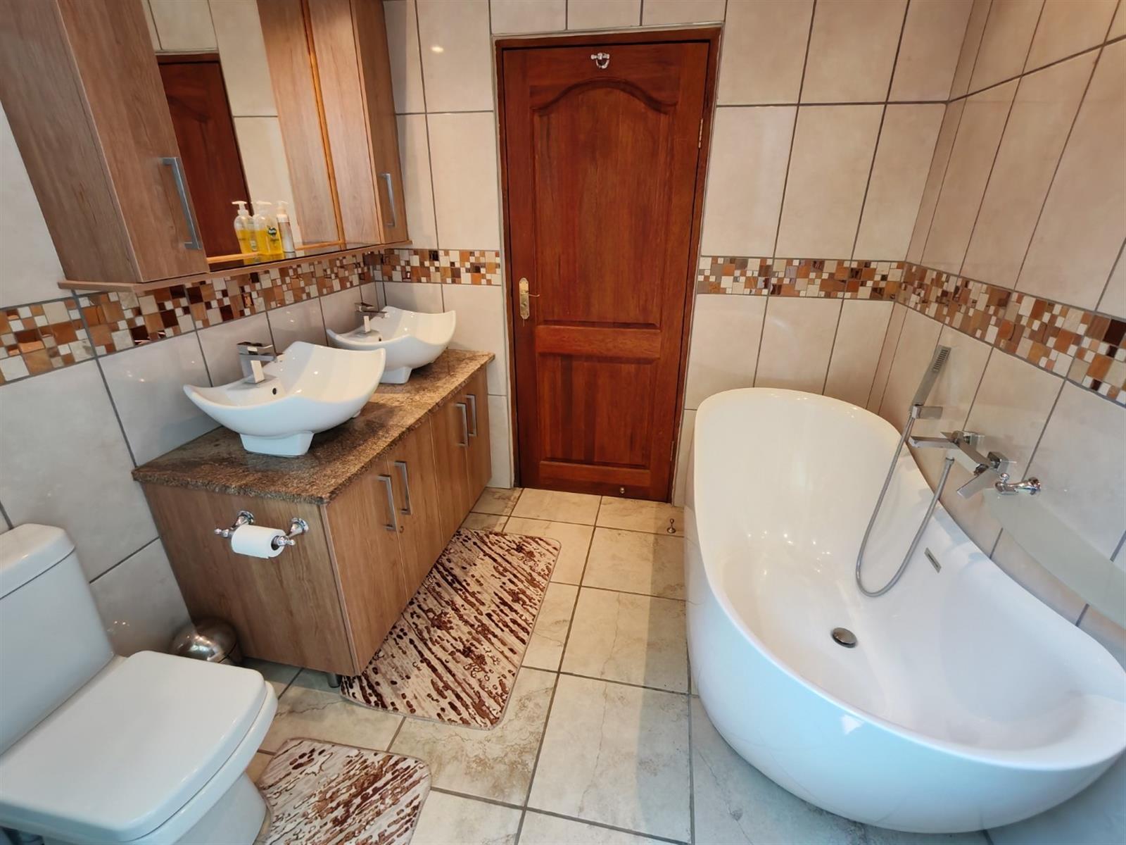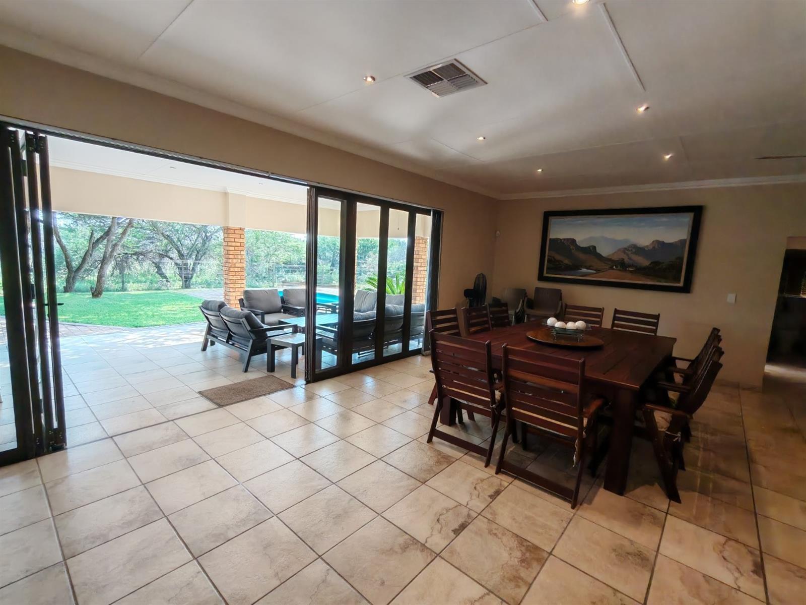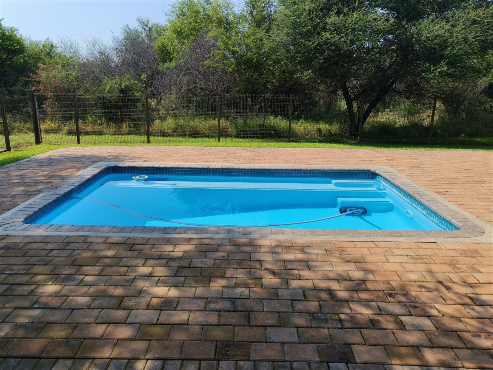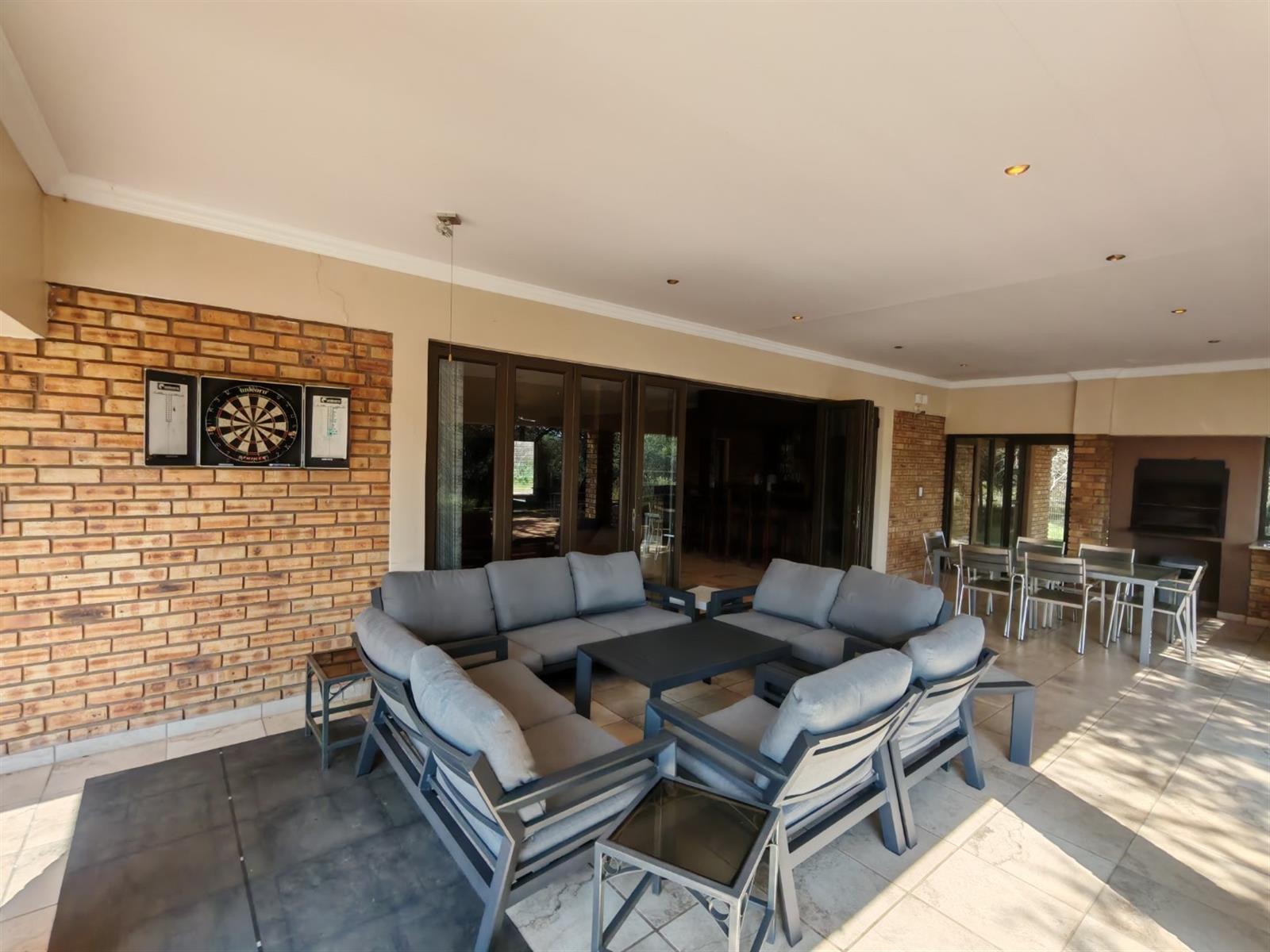 Expansive Outdoor Entertainment Step out to the large, inviting entertainment stoep with a built-in braai, gas 4-plate stove, and two patio sets seating up to 16 guests. A dedicated boma area includes multiple grills, additional braai equipment, and seating for 12, ideal for starlit evenings. The sparkling swimming pool comes complete with a cleaner. Part of the erf is fenced for added privacy, with automatic irrigation keeping the lawn lush.