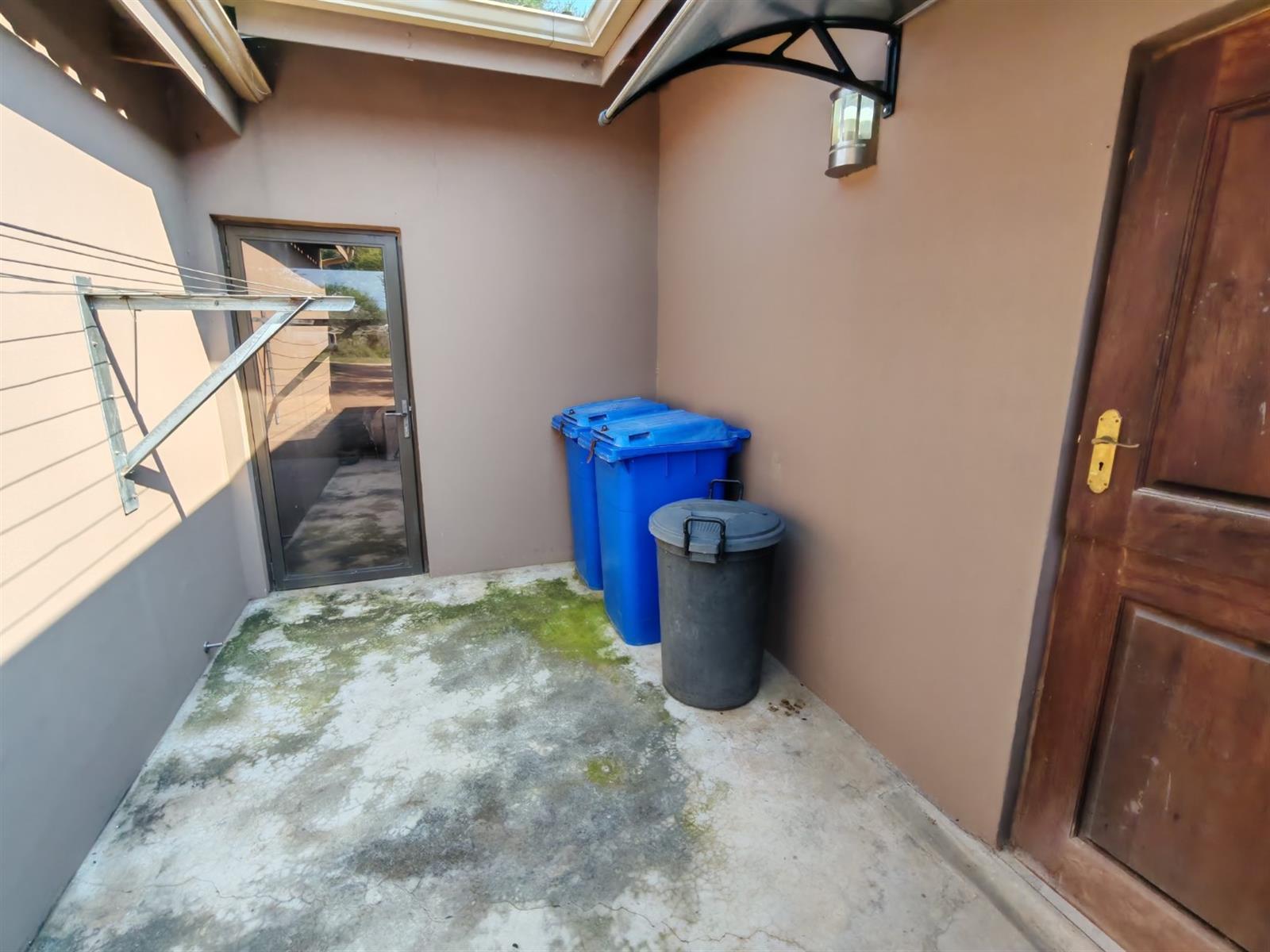 Gourmet Open-Plan Kitchen and Scullery The open-plan kitchen boasts a marble breakfast counter, abundant cupboards, an electric stove and oven. The adjacent scullery is well-equipped with two combination fridge/freezers, a dishwasher, washing machine, and ice machine—perfect for effortless hosting. The pantry is equipped with shelves and cupboards. A neat enclosed courtyard houses the washing line and refuse storage.
