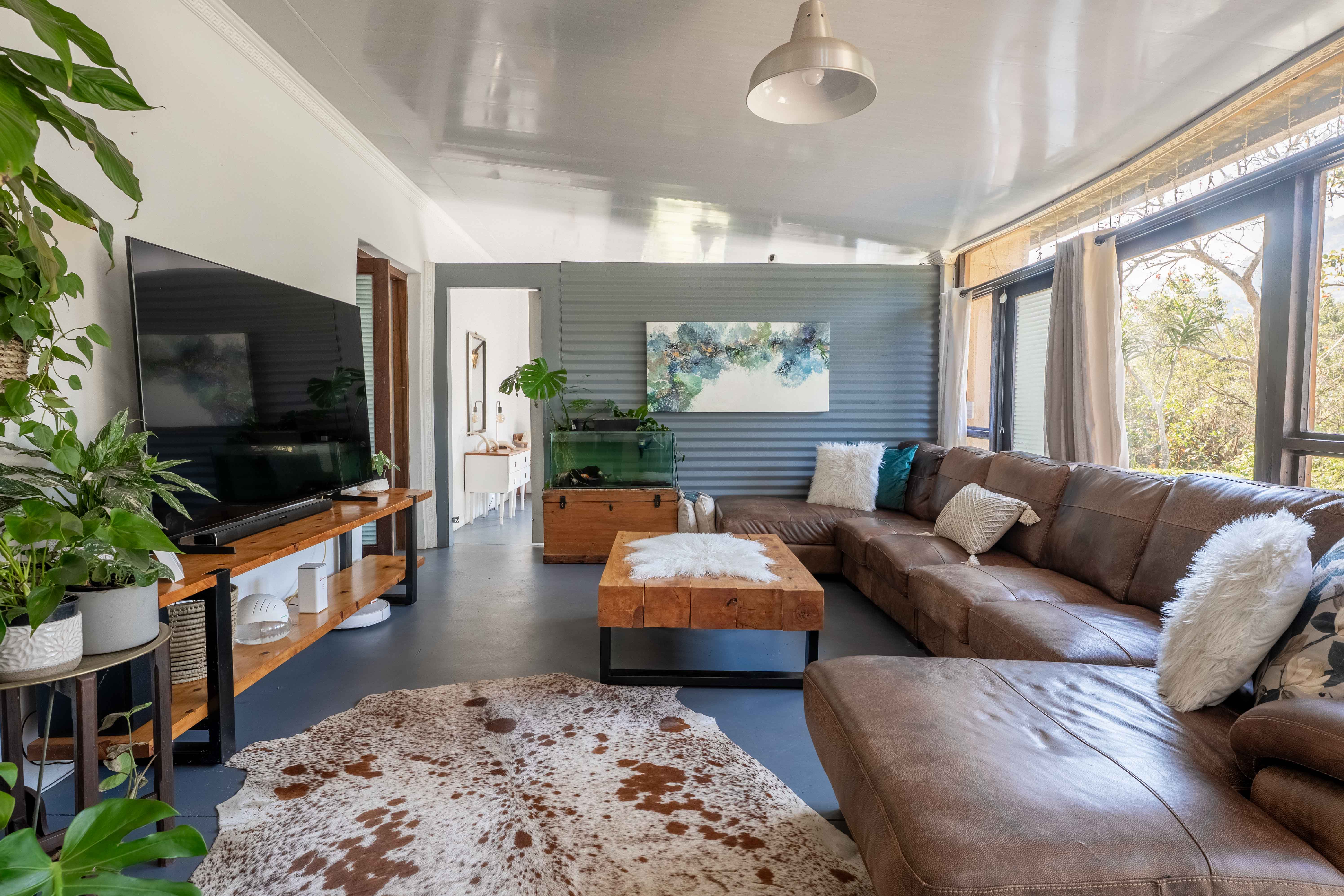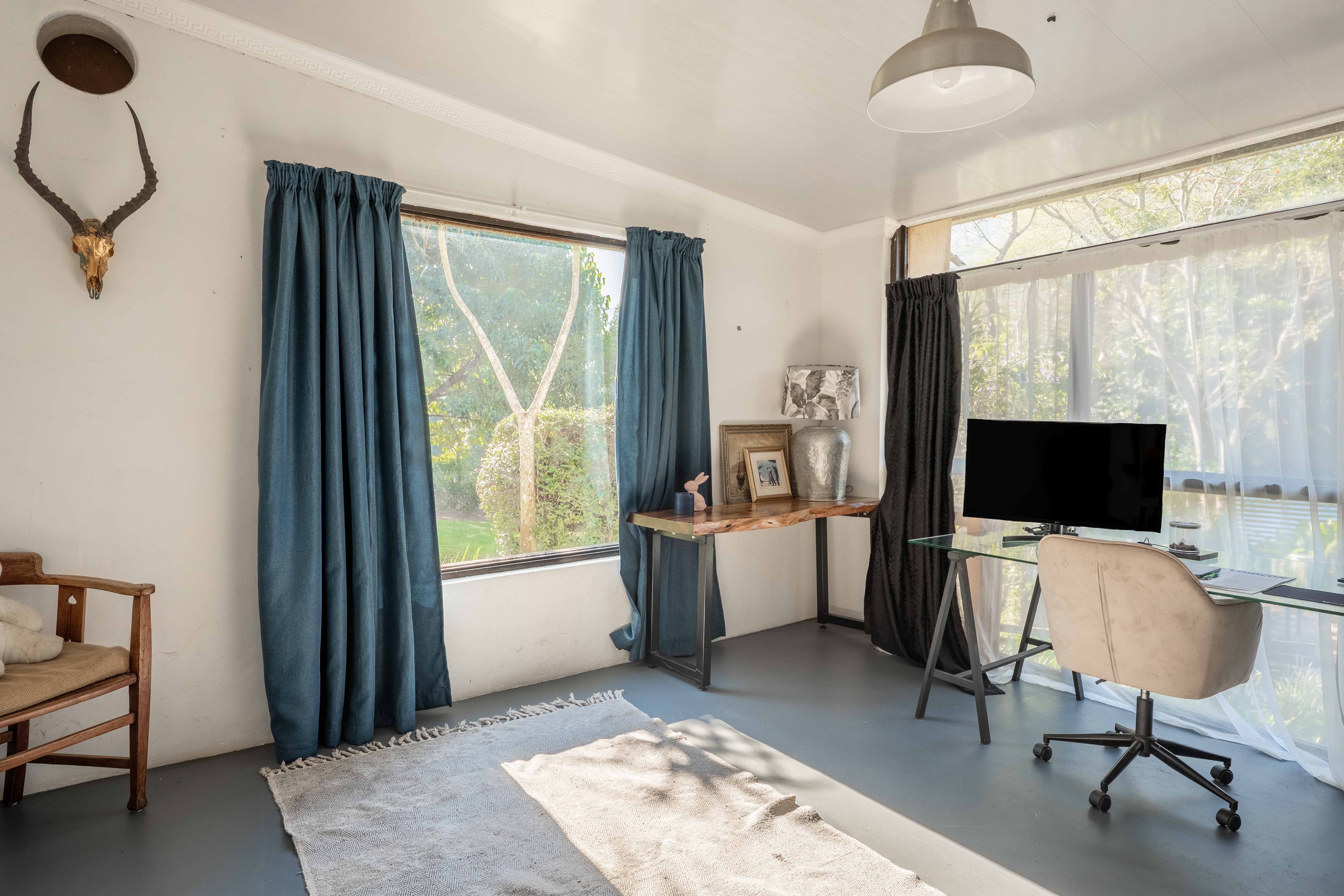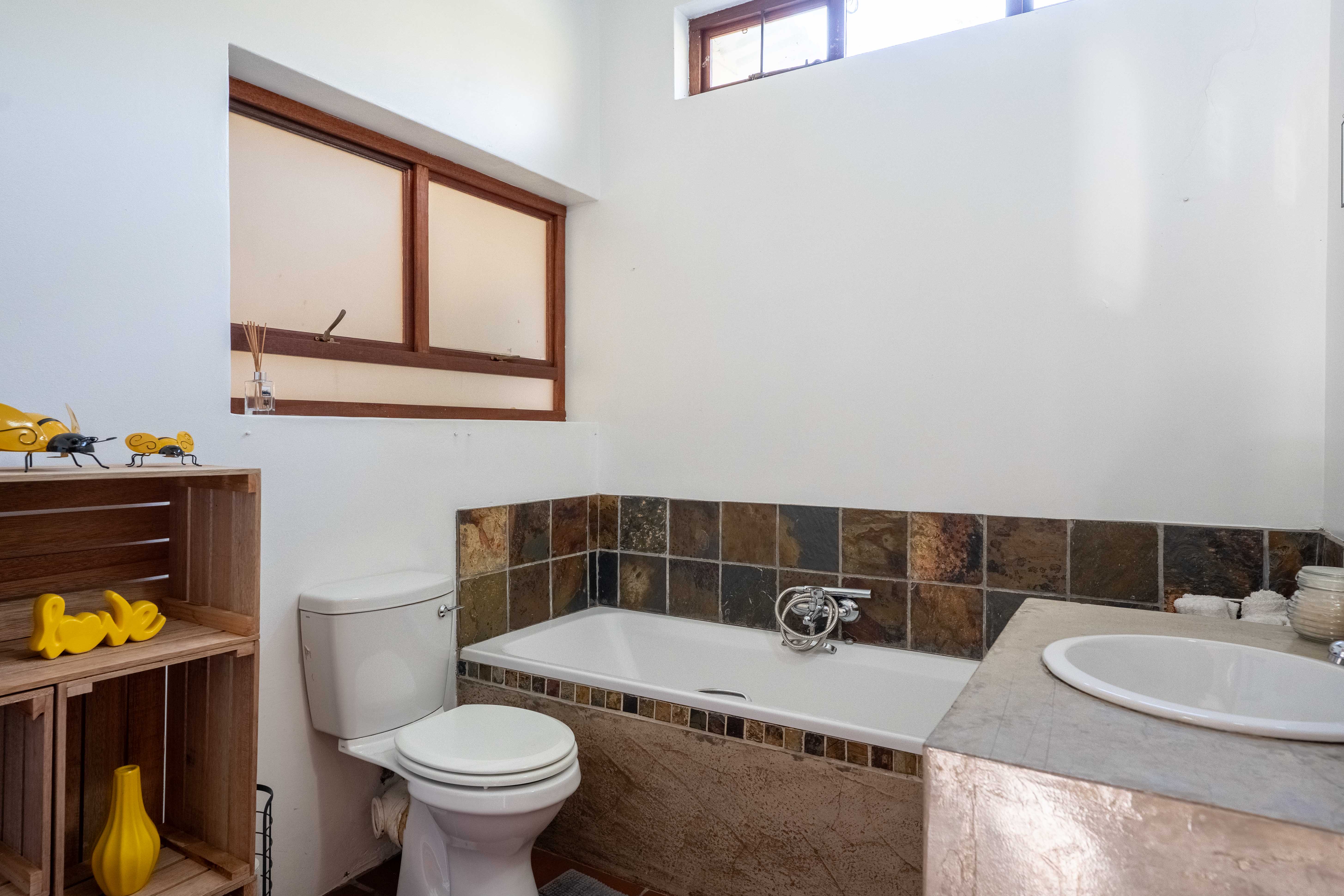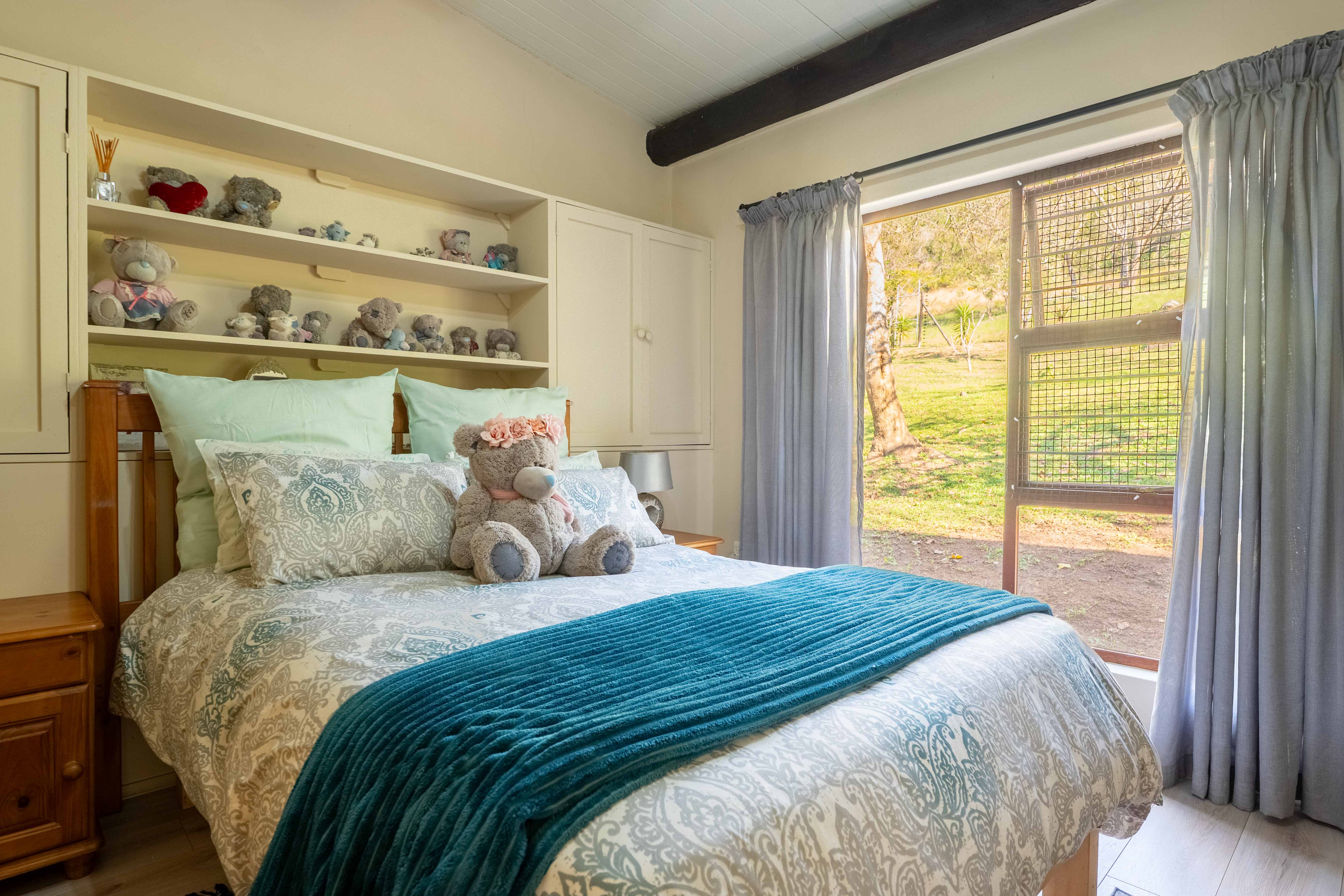 The second house on this property is a lovely three bedroom cottage of 110 m2. It is fully fenced and offers a large lounge with open plan kitchen and loads of glass to bring in the light and beautiful views of the mountain. This is the perfect income generating property or home for extended family. This lovely home also offers double garages and is has electric fencing, boomed access, water tanks and it has a solar and Invertor system on rental contract. There are 2 additional tool sheds for all the extras too! You have to feel this home and it’s special energy! See it today!