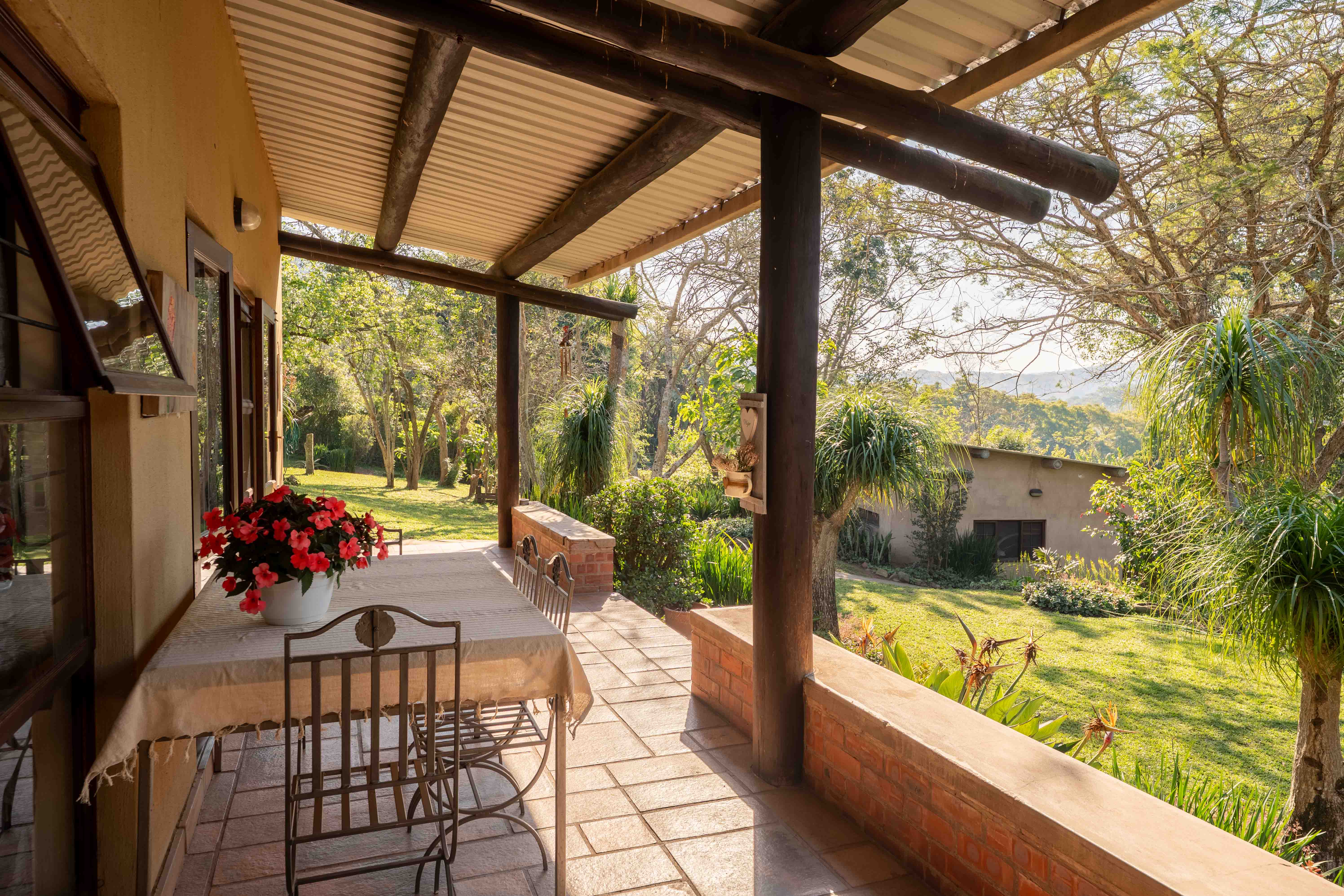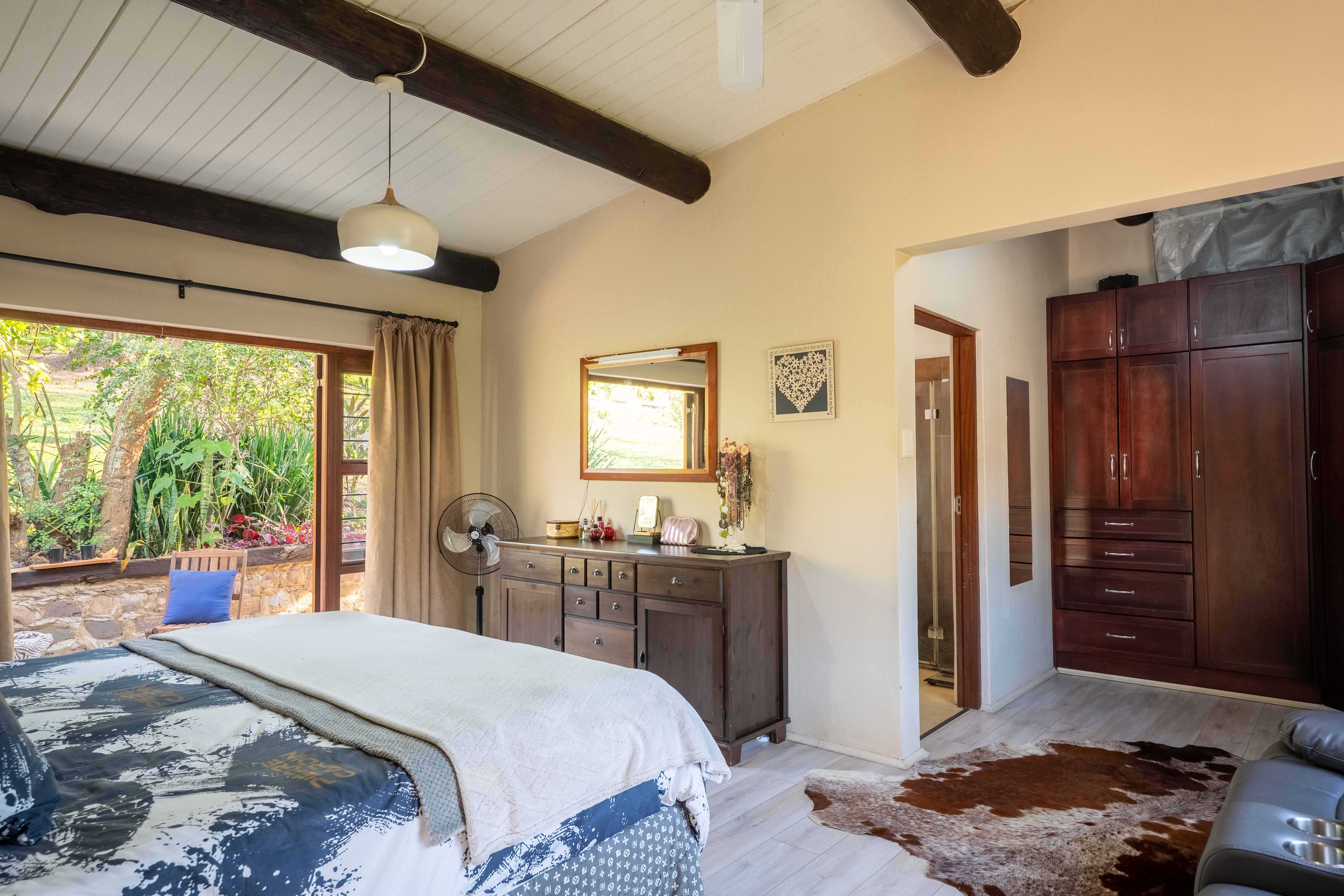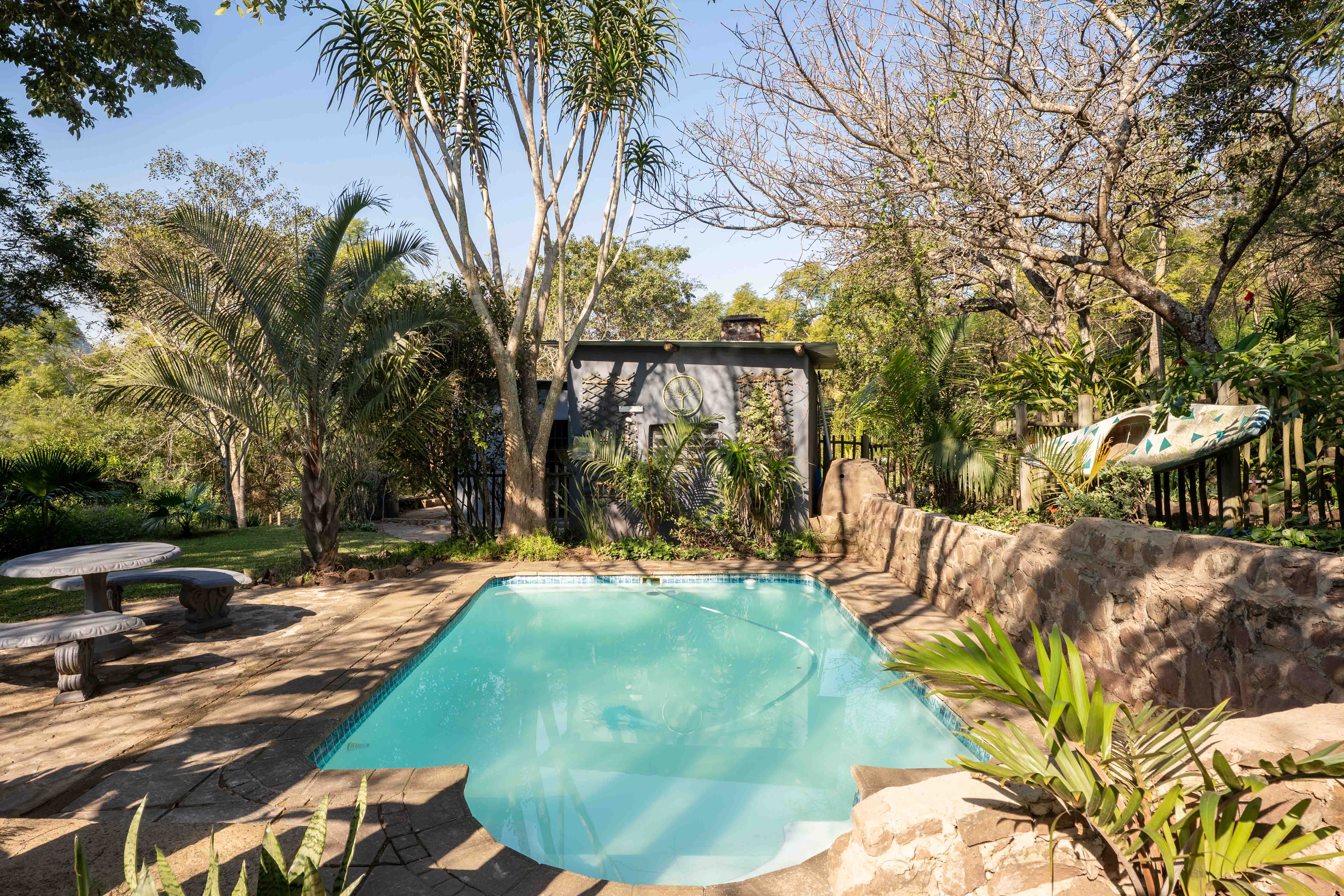 Welcome to your Oasis! A 3 Bed House and 3 Bed Cottage plus more! Welcome to an exceptional property, nestled between mountains in the most peaceful oasis! This secure boomed area of Shongweni is incredibly picturesque and peaceful. You are just minutes to Westown and this area is set to skyrocket in value! This home is set on 2.9 acres at the foot of a mountain and offers breathtaking sunrise and sunset views. This lovely little community of homes is friendly and welcoming with your neighbours being nearby but not too close to ensure your privacy. This home immediately draws you in with its retreat-like vibe and artistic flair. The main house offers three large bedrooms with the main suite boasting doors to the garden and view of the mountain as well as an en suite bathroom and walk-in closet. There are two spacious lounges, both with direct access out to the undercover veranda and view of the pool and the delightful barbecue area. Off the main lounge is a very large office space or 4th bedroom and the tv lounge is perfectly positioned to entertain or use as a pajama lounge. The heart-of-the-home kitchen and dining room are open plan with direct access to the large front stoep and more mountain views! The kitchen has a scullery and there is also an additional guest bathroom. For when family and friends come to stay there are 2 delightful outside guest suites with a funky indoor/outdoor bathroom to share and these rooms are positioned near the pool also making them a great option for Airbnb!