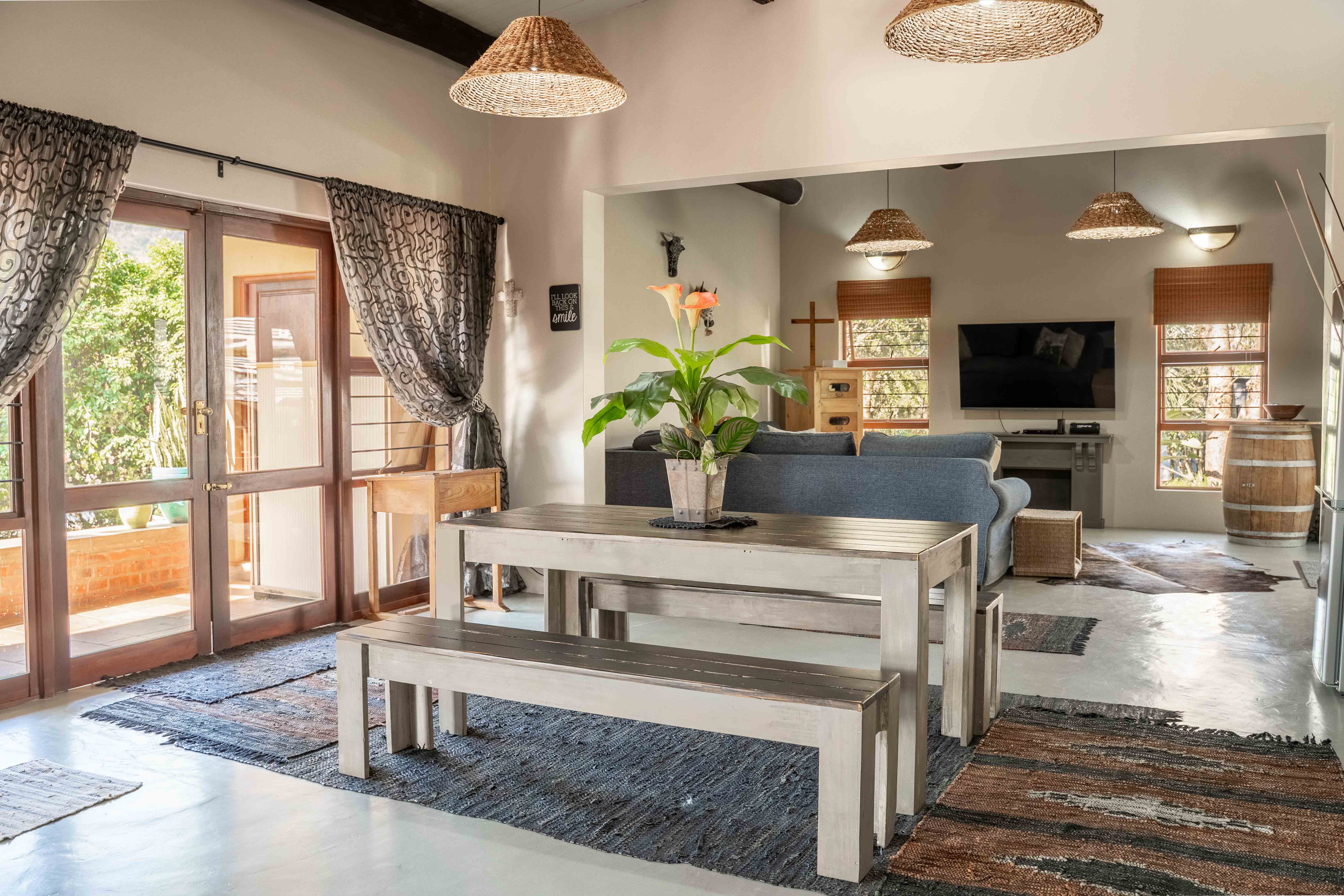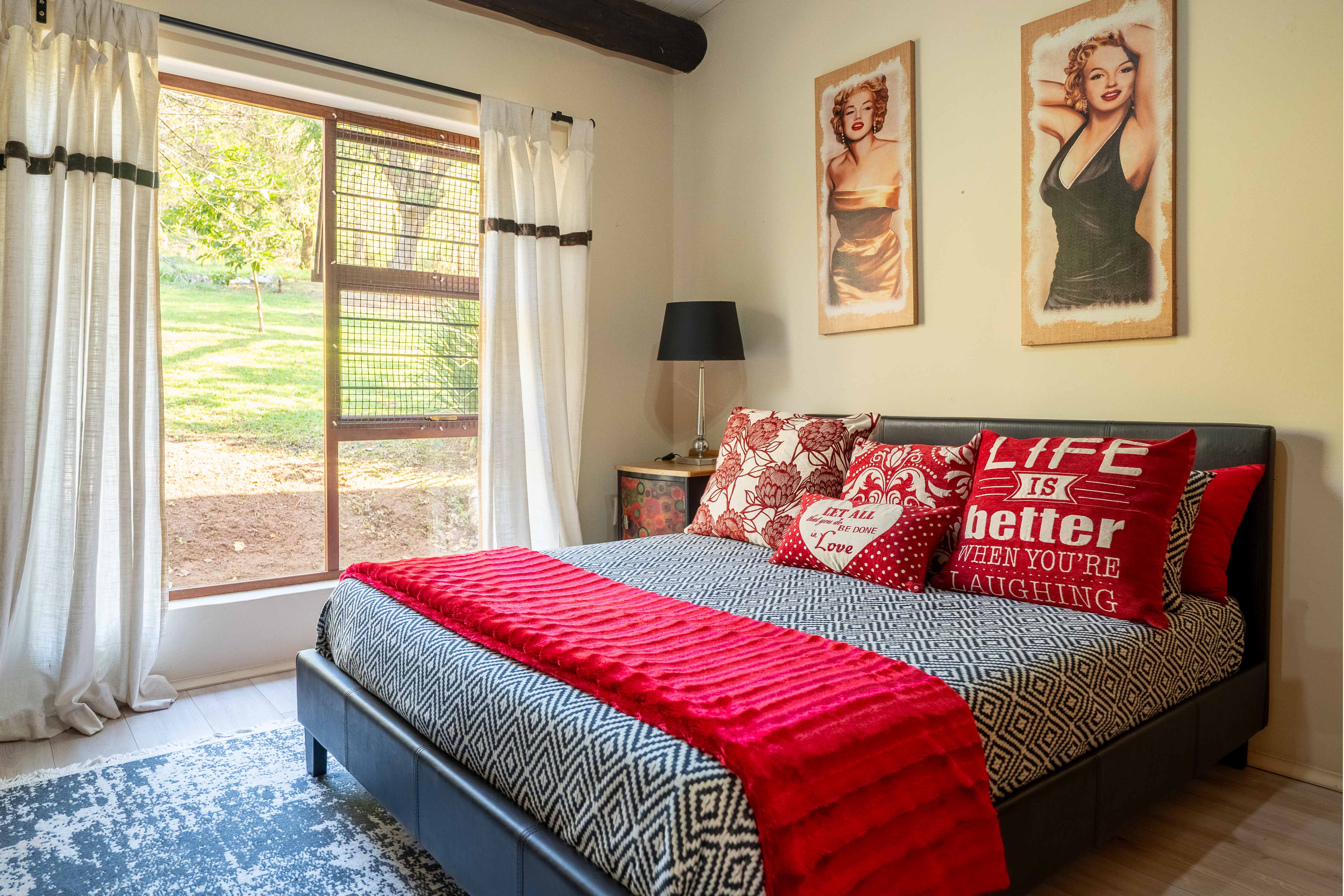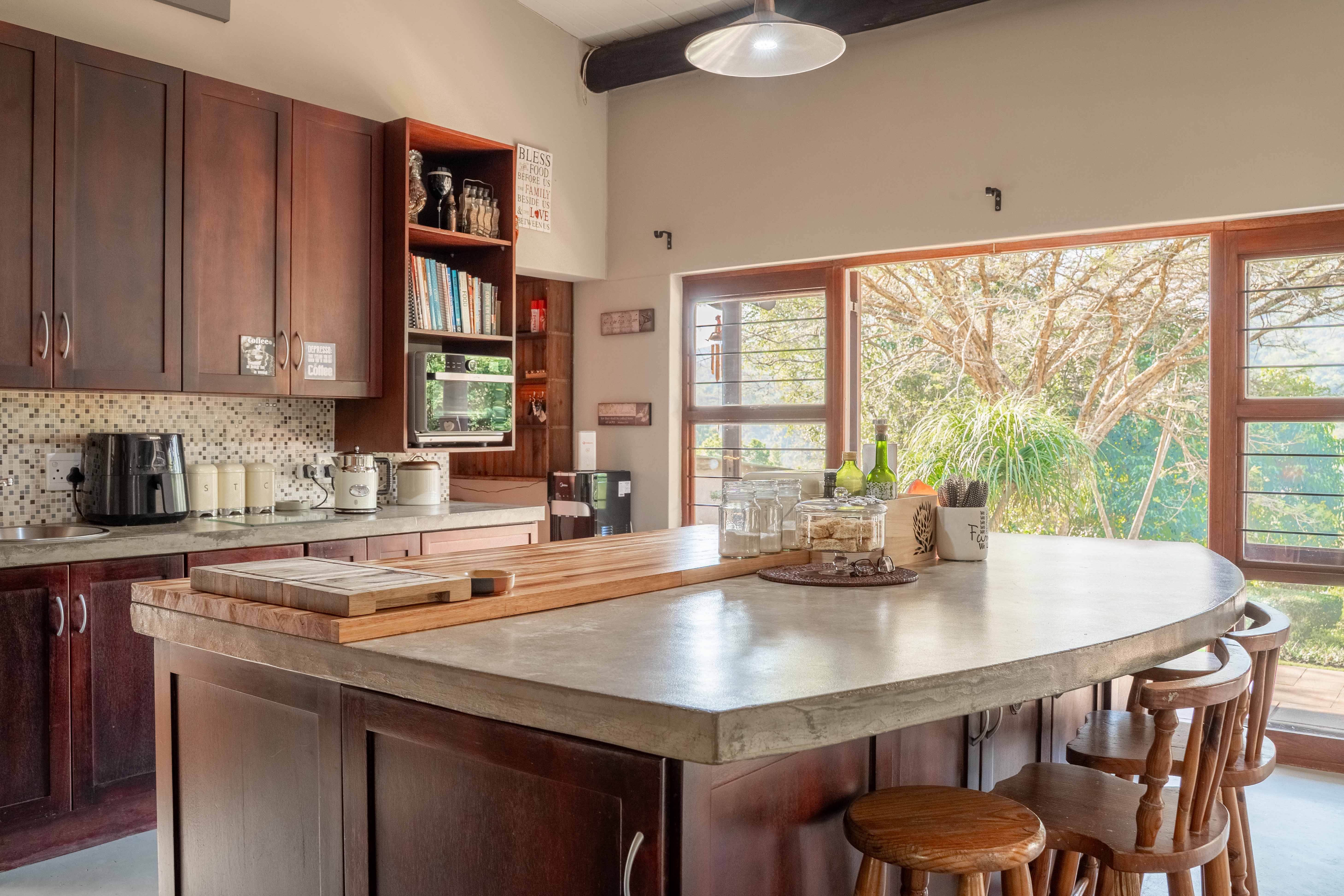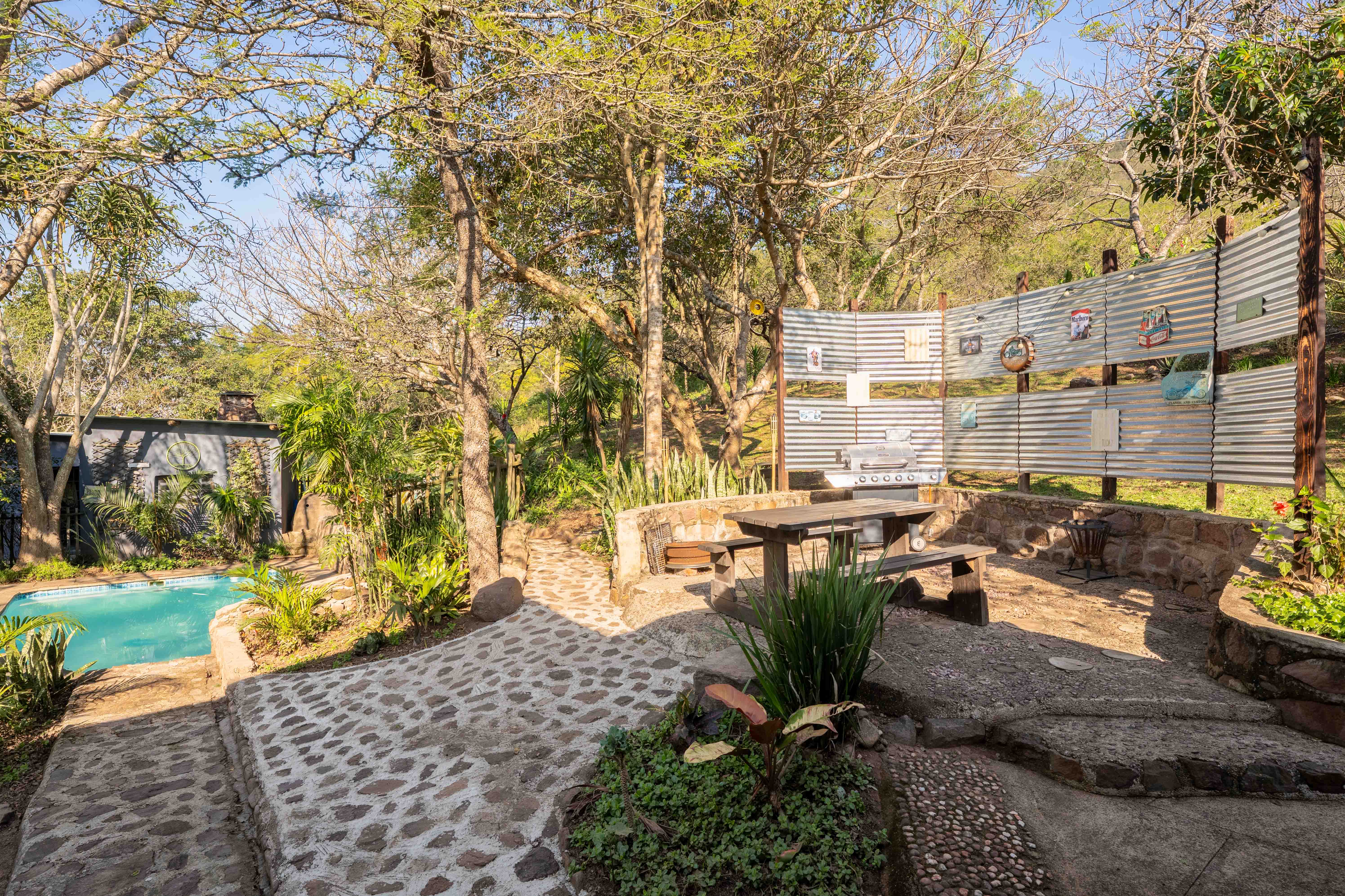 Welcome to your Oasis! A 3 Bed House and 3 Bed Cottage plus more! Welcome to an exceptional property, nestled between mountains in the most peaceful oasis! This secure boomed area of Shongweni is incredibly picturesque and peaceful. You are just minutes to Westown and this area is set to skyrocket in value! This home is set on 2.9 acres at the foot of a mountain and offers breathtaking sunrise and sunset views. This lovely little community of homes is friendly and welcoming with your neighbours being nearby but not too close to ensure your privacy. This home immediately draws you in with its retreat-like vibe and artistic flair. The main house offers three large bedrooms with the main suite boasting doors to the garden and view of the mountain as well as an en suite bathroom and walk-in closet. There are two spacious lounges, both with direct access out to the undercover veranda and view of the pool and the delightful barbecue area. Off the main lounge is a very large office space or 4th bedroom and the tv lounge is perfectly positioned to entertain or use as a pajama lounge. The heart-of-the-home kitchen and dining room are open plan with direct access to the large front stoep and more mountain views! The kitchen has a scullery and there is also an additional guest bathroom. For when family and friends come to stay there are 2 delightful outside guest suites with a funky indoor/outdoor bathroom to share and these rooms are positioned near the pool also making them a great option for Airbnb!