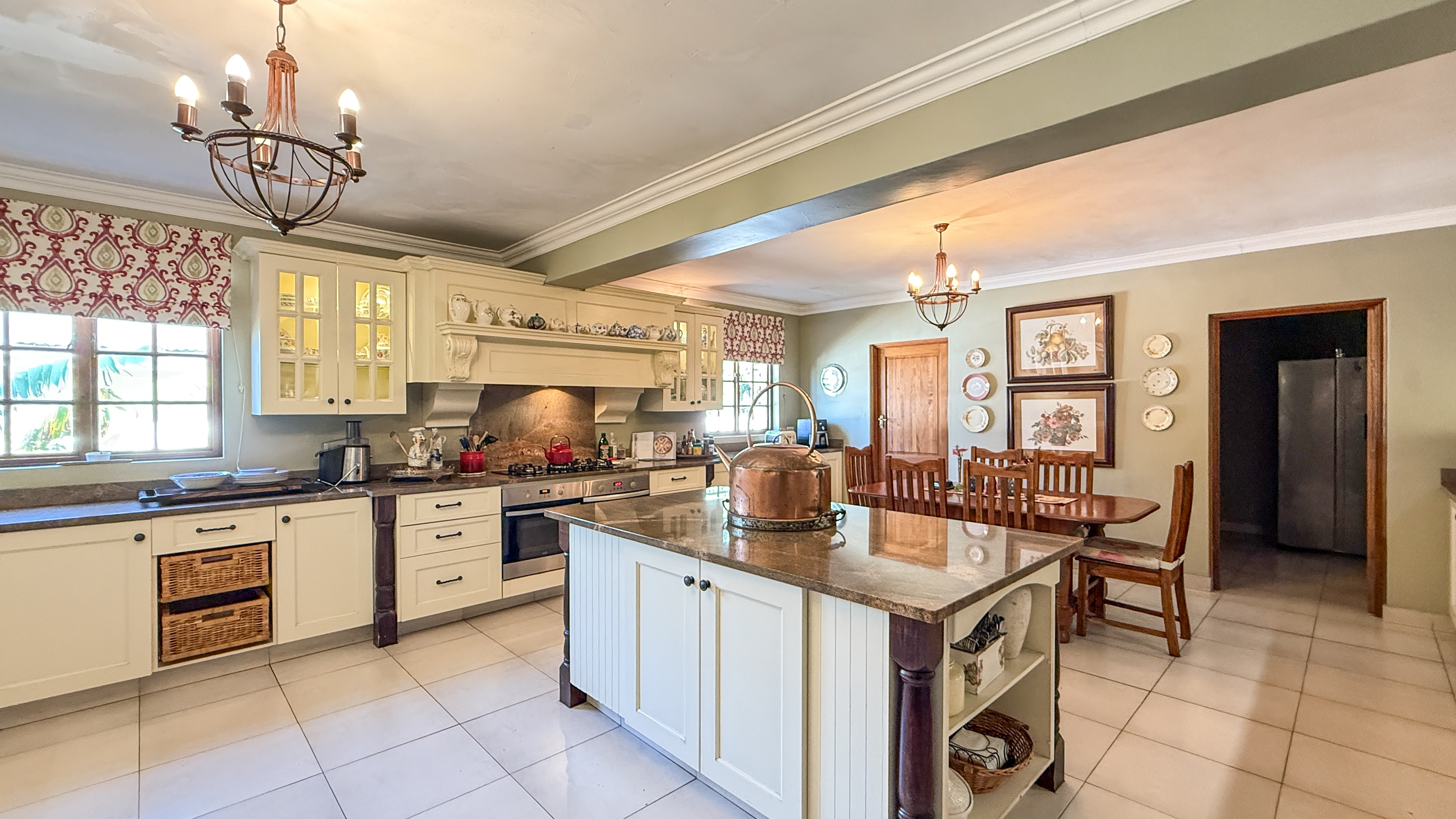 Practical & Spacious Kitchen – A large kitchen complemented by extensive cupboard space, a scullery, and a laundry area for effortless functionality.