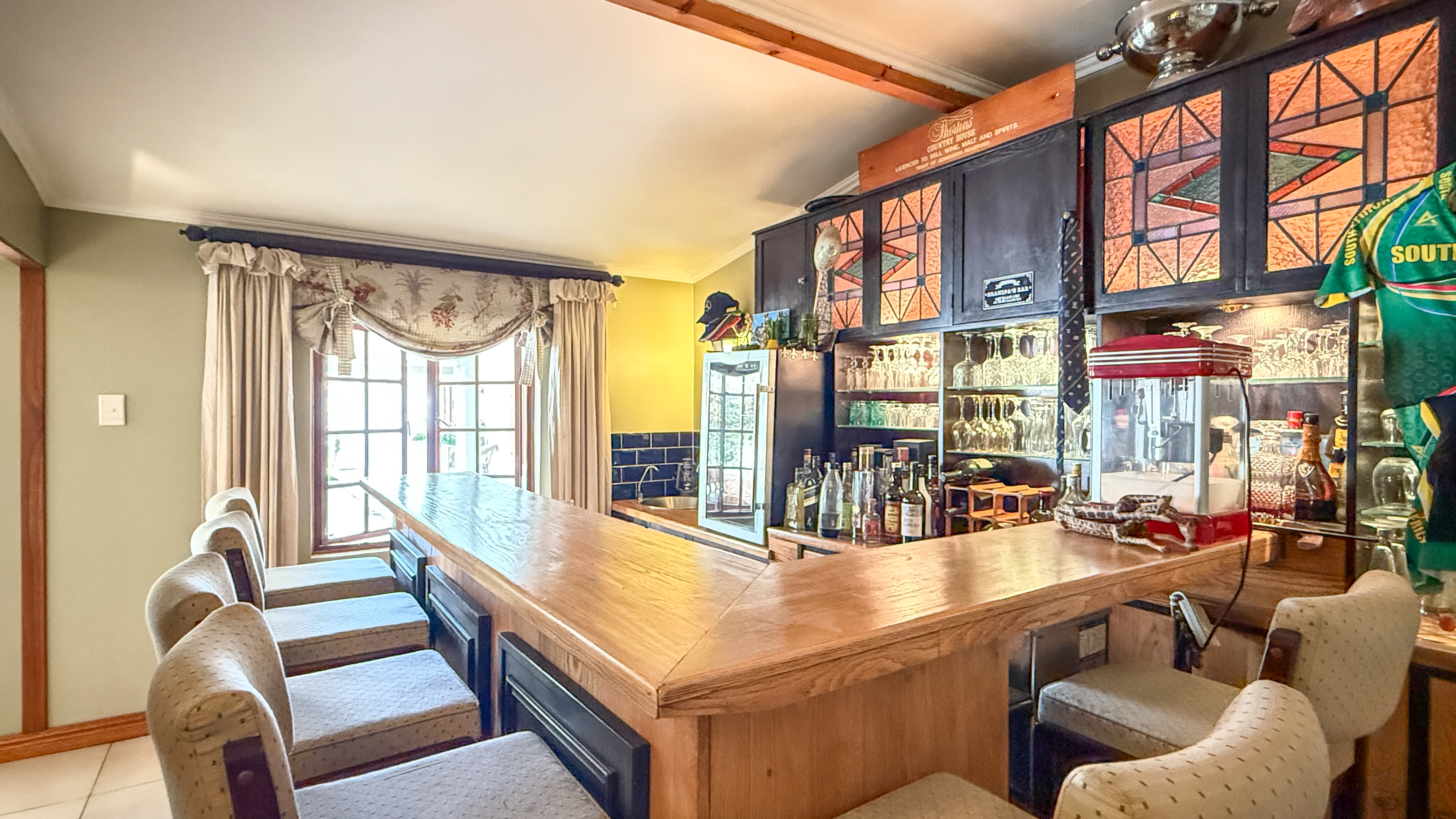 Discover the rare opportunity to own a 135-year-old residence that seamlessly blends historic character with modern living. Situated in the heart of Ballito, this distinguished home showcases original Canadian pine flooring, intricate stained-glass windows, and architectural details that reflect its rich heritage.