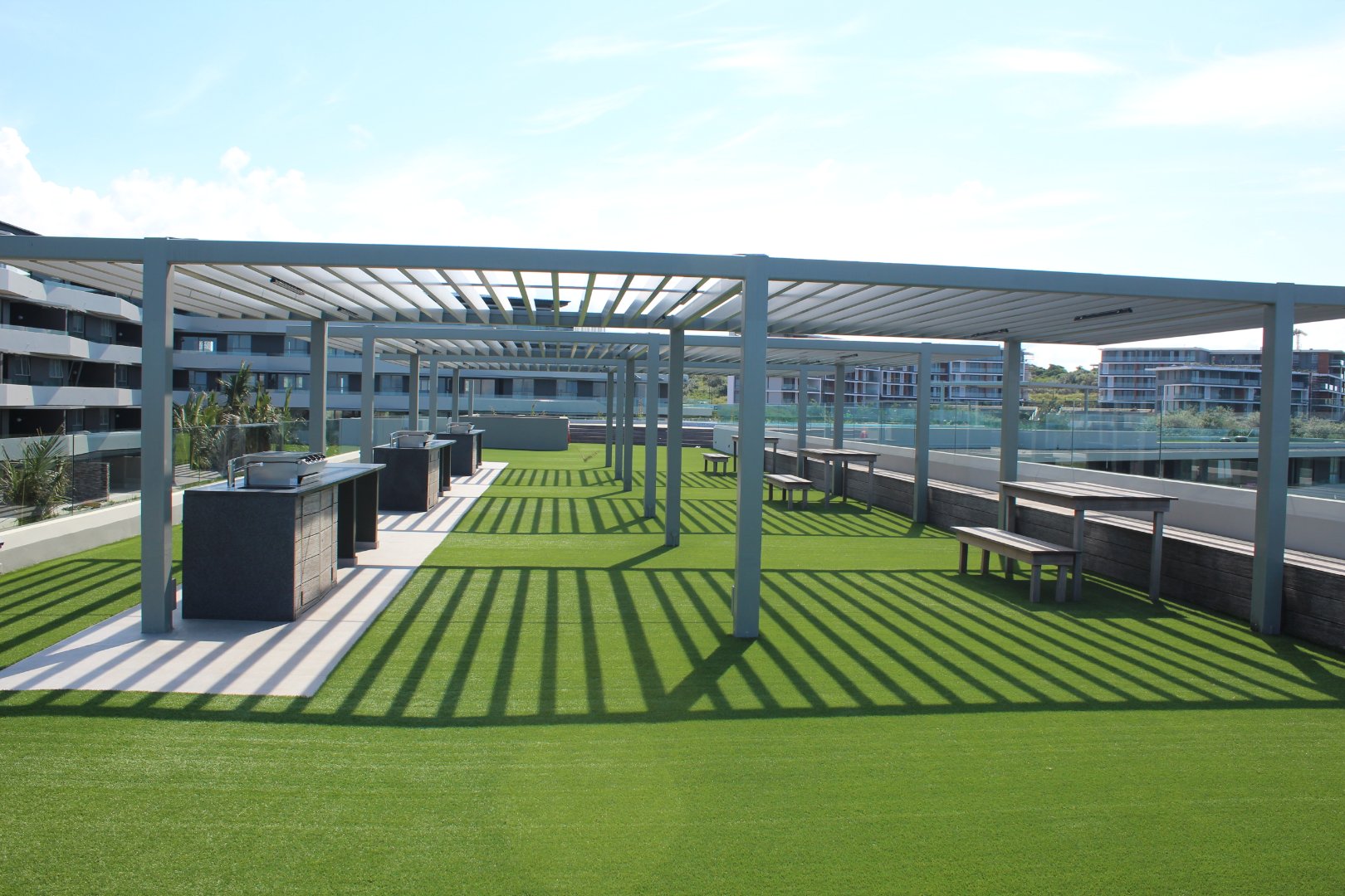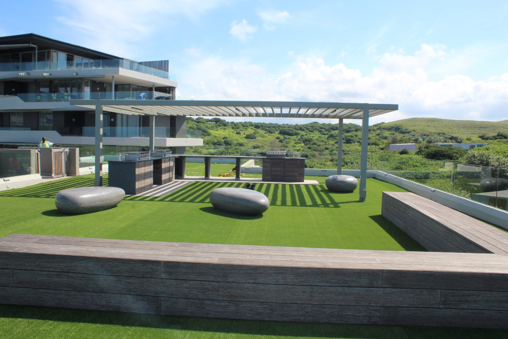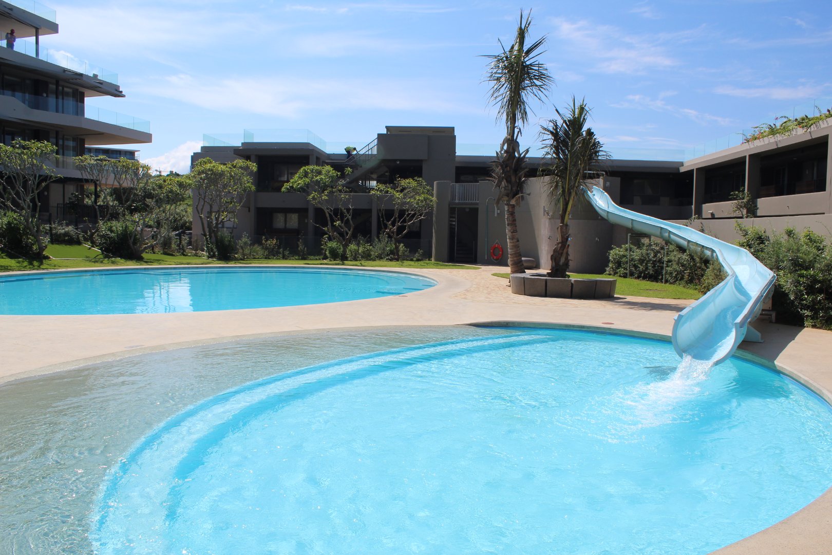 Pebble Beach offers two rooftop swimming pools and gas braai entertainment areas a kiddies pool with slide and jungle gym and a rooftop putting green.