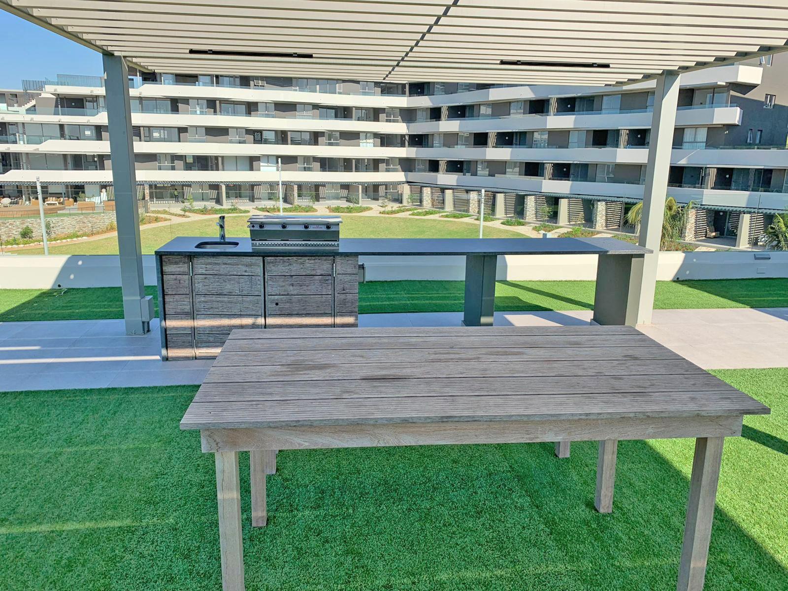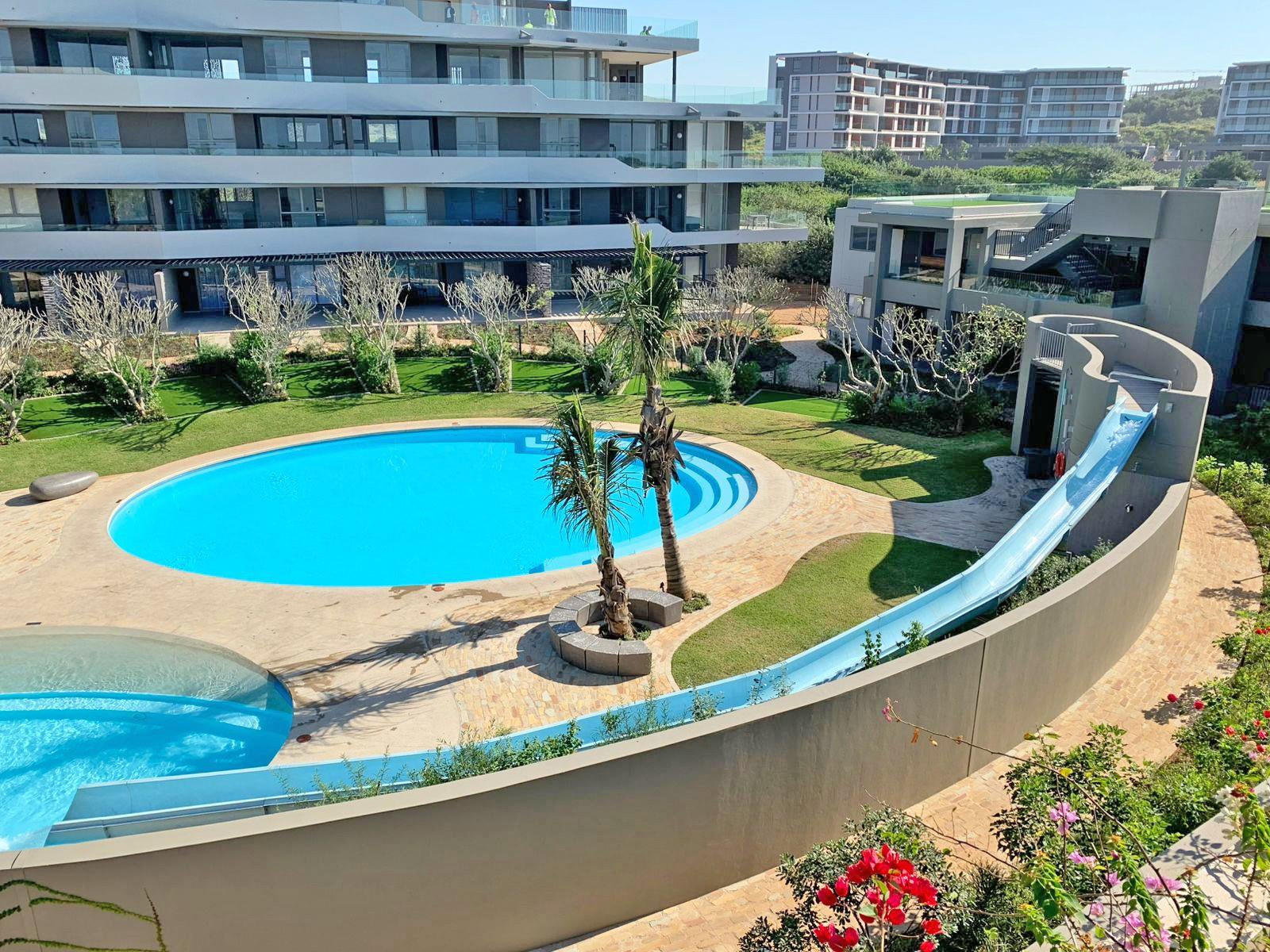 This modern 2-bedroom, 2-bathroom apartment is fully furnished, featuring an en-suite master bedroom, spacious second bedroom, and a stylish kitchen with Caesarstone countertops. It includes air conditioning, a large covered patio with scenic views, and double parking. Located in the desirable Pebble Beach development, residents enjoy amenities like rooftop pools, a golf putting area, braai spots, and direct beach access. Ideal for couples, vacationers, or work getaways. Contact us to view today!