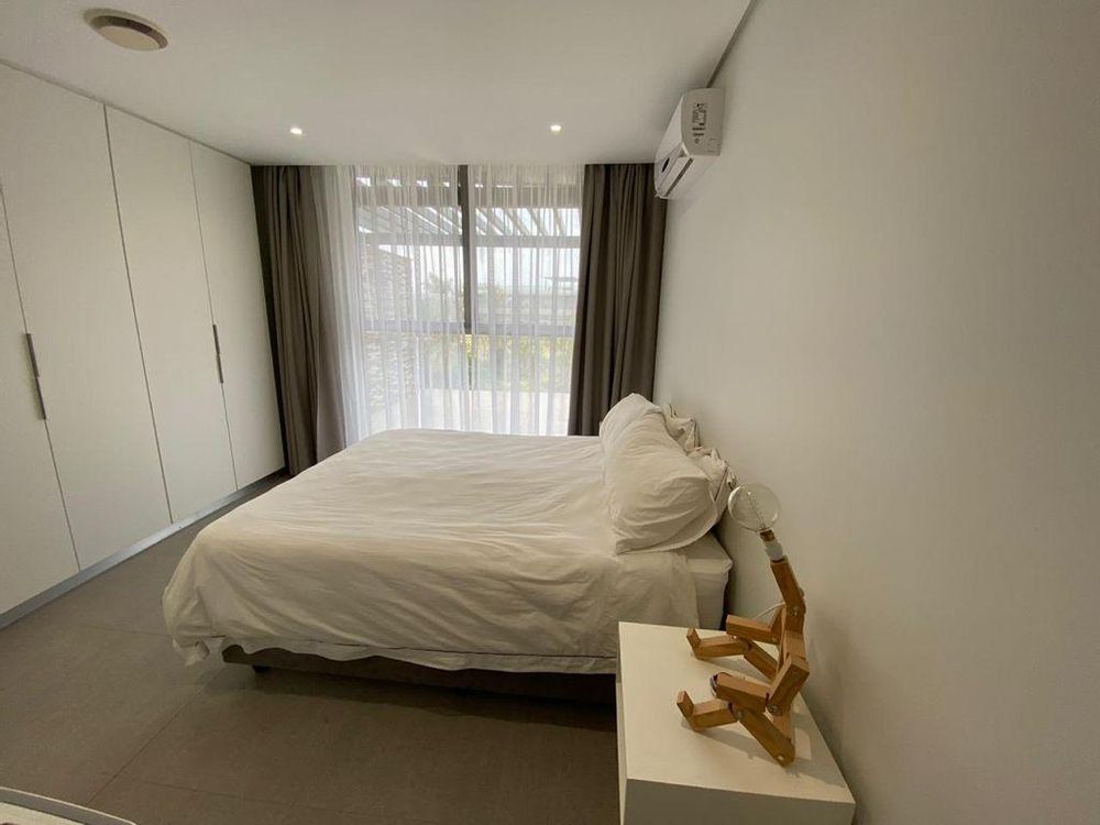 This unit features two spacious bedrooms, including a master en-suite, and two sleek, modern bathrooms. The open-plan lounge and dining area flow effortlessly into a contemporary kitchen equipped with granite countertops and a gas stove. Fully air-conditioned, the home extends onto a large covered patio with stunning views, perfect for entertaining or unwinding. The property also includes double garages for secure parking.