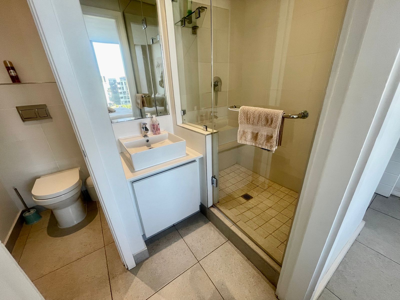 Two spacious rooms paired with two bathrooms