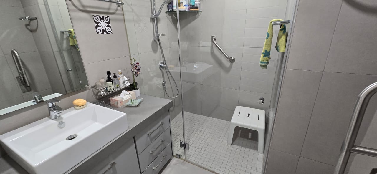 The main bedroom includes an en-suite bathroom, while the additional two bedrooms are ideal for guests, a study, or hobbies. The second bathroom is tastefully finished and easily accessible.