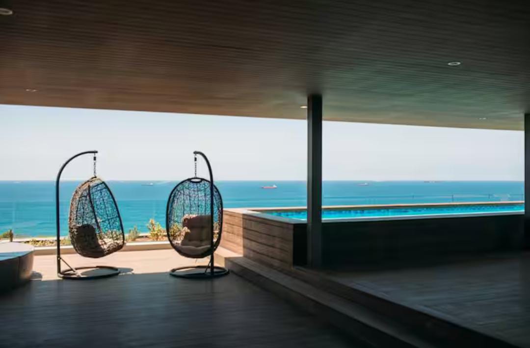 Covered patio leading off the living area—ideal for relaxing or entertaining, featuring views of the coastal forest or ocean.