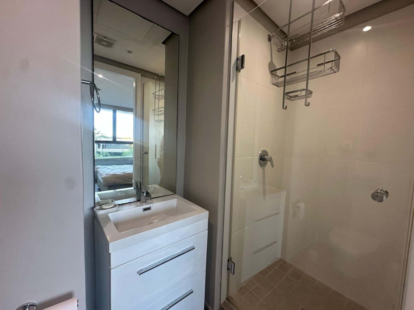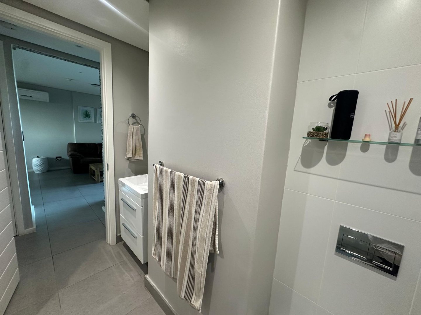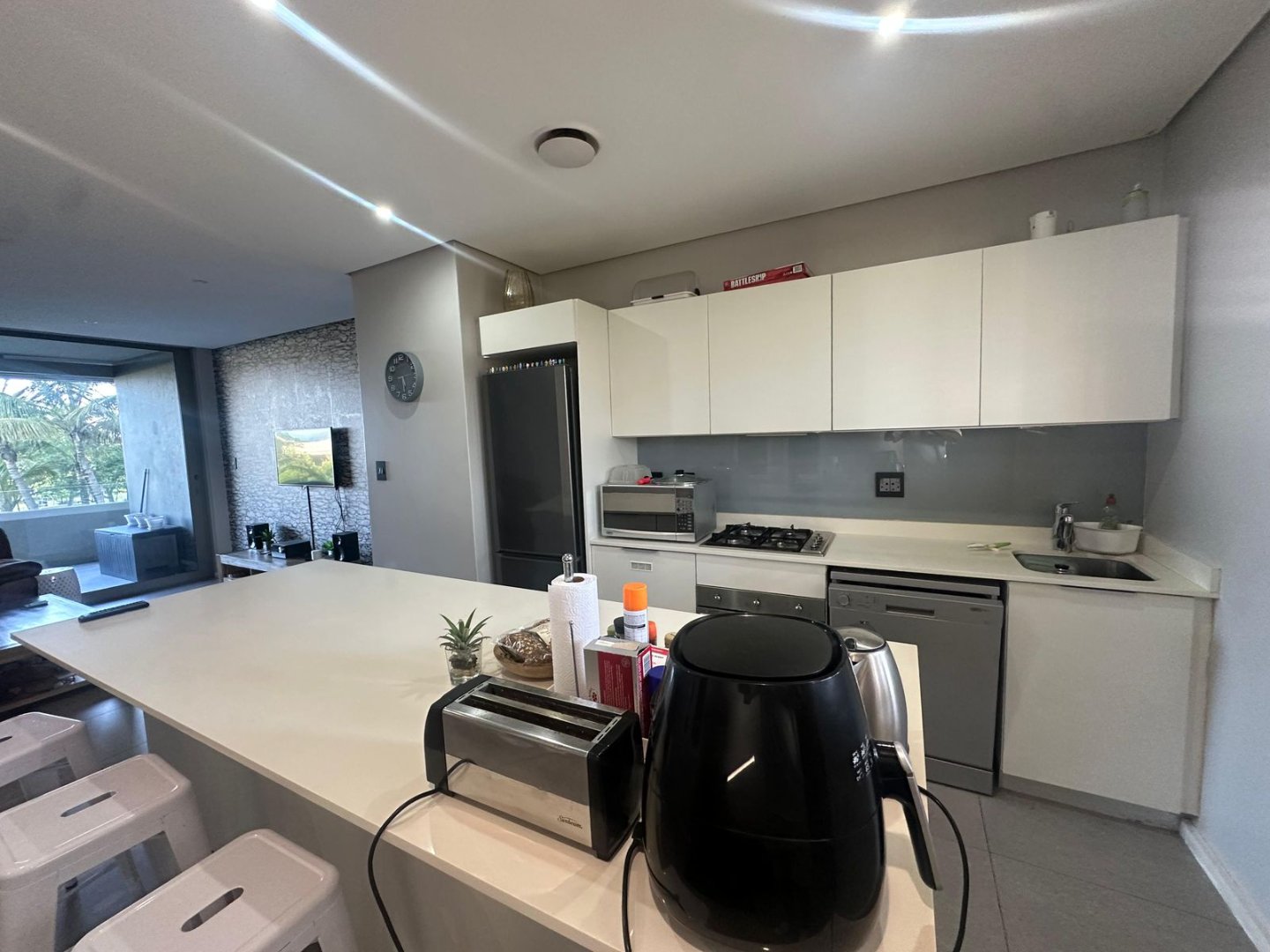 The apartment is fully fitted, furnished, and equipped, offering a seamless move-in experience. The open-plan living and dining area flows effortlessly into a contemporary kitchen with quality finishes and ample cupboard space. Designed for both comfort and functionality, the unit is ideal for professionals, couples, or small families seeking coastal luxury living.