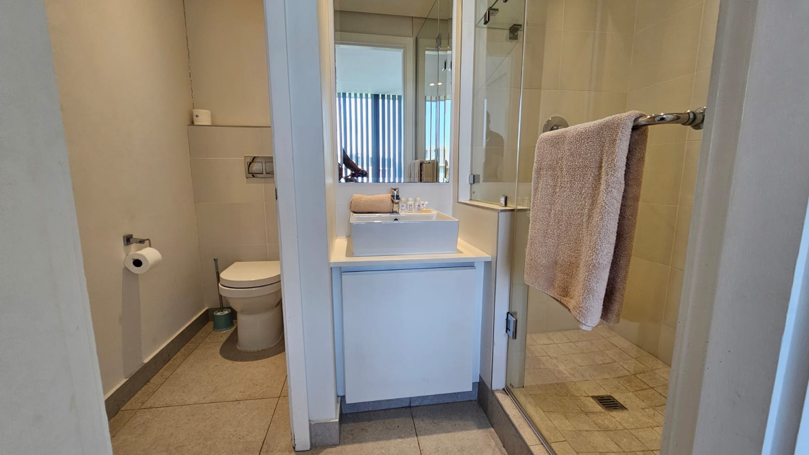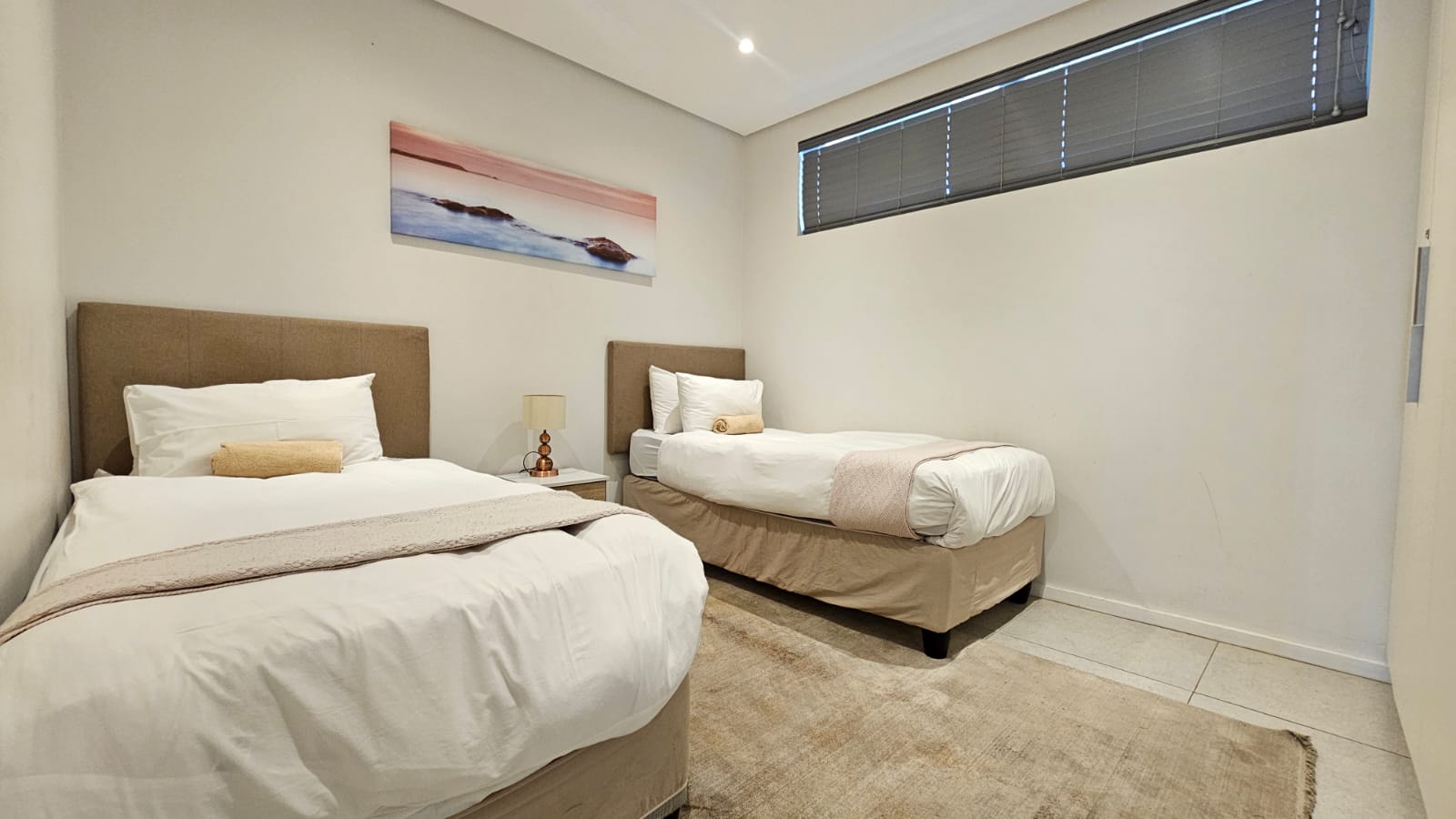 Two spacious rooms paired with two bathrooms
