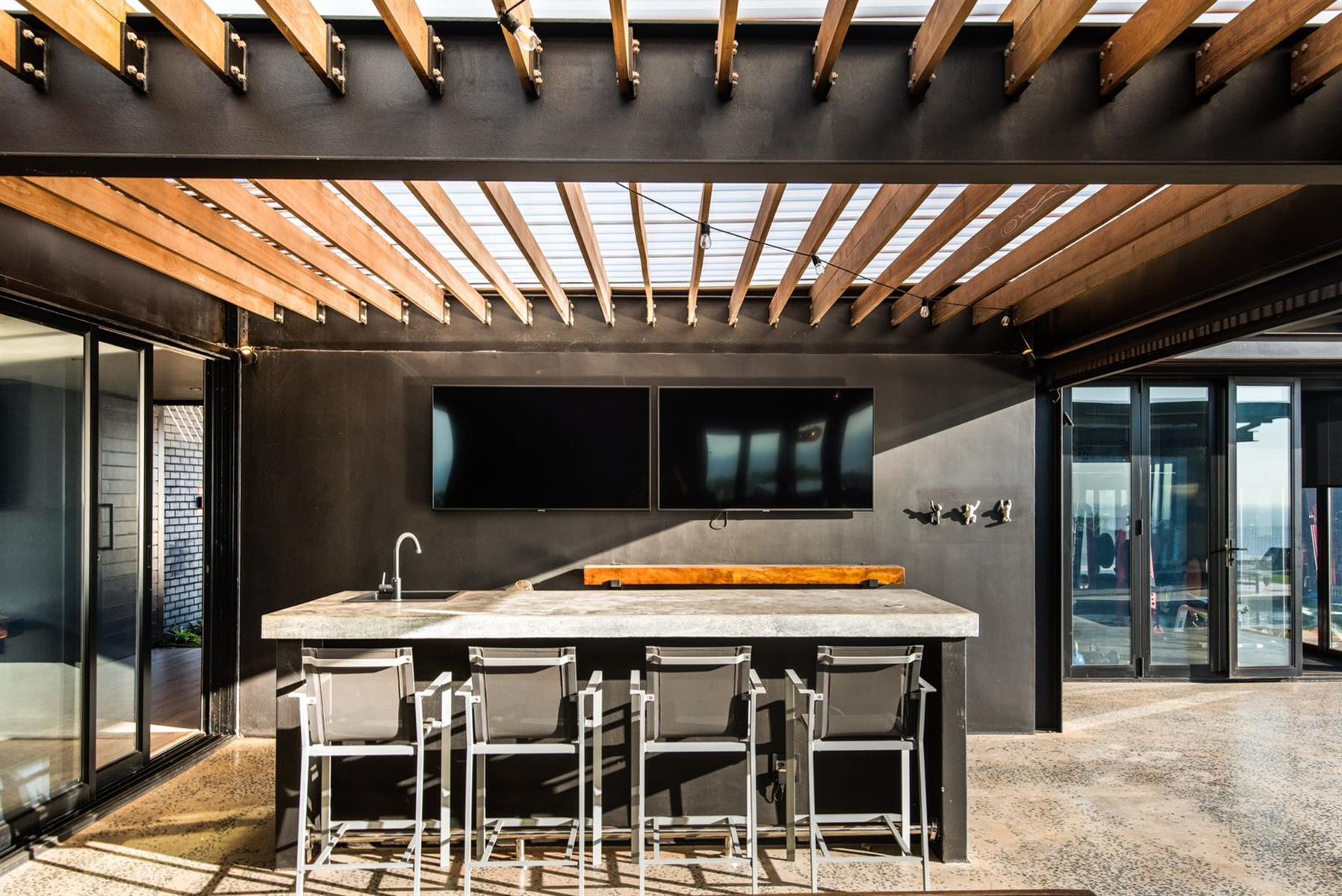 This sleek and sophisticated modern home, proudly situated in the highly sought-after Gold Coast Estate in Sibaya, is a true architectural gem — and a recipient of the prestigious SAISC Steel Award, recognizing its excellence in design and engineering.