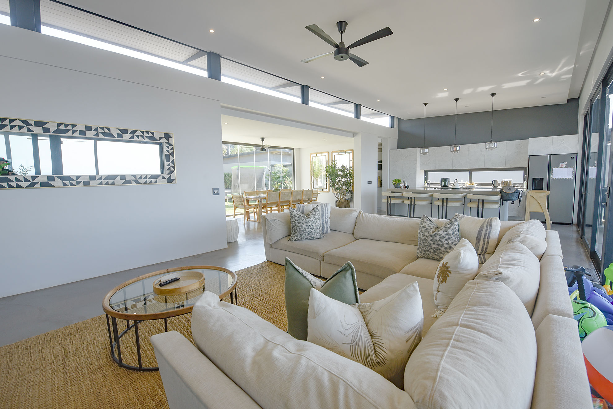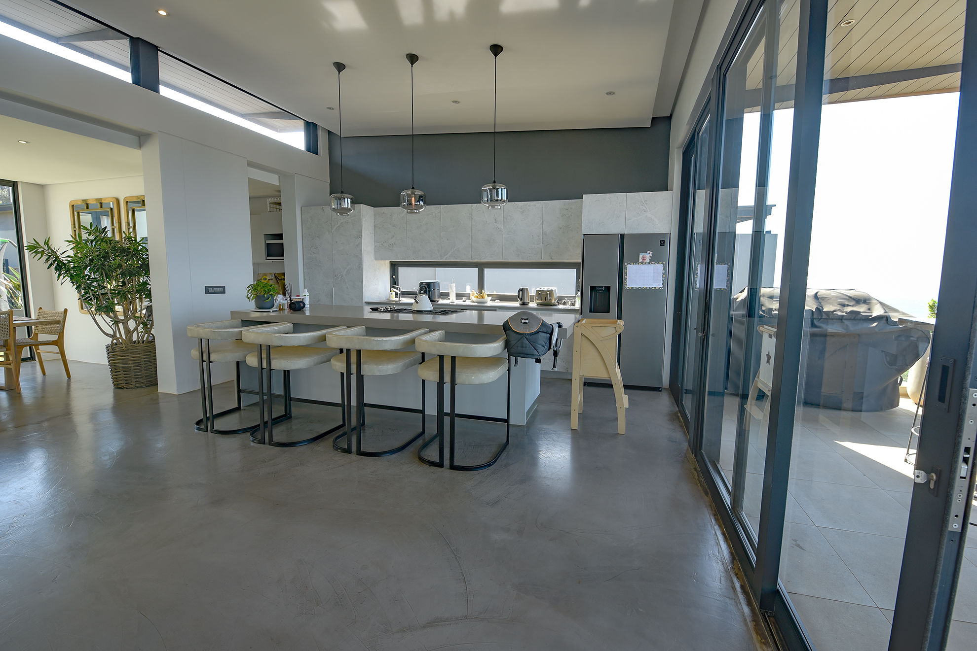 Open-plan living, kitchen, dining, bar, and scullery