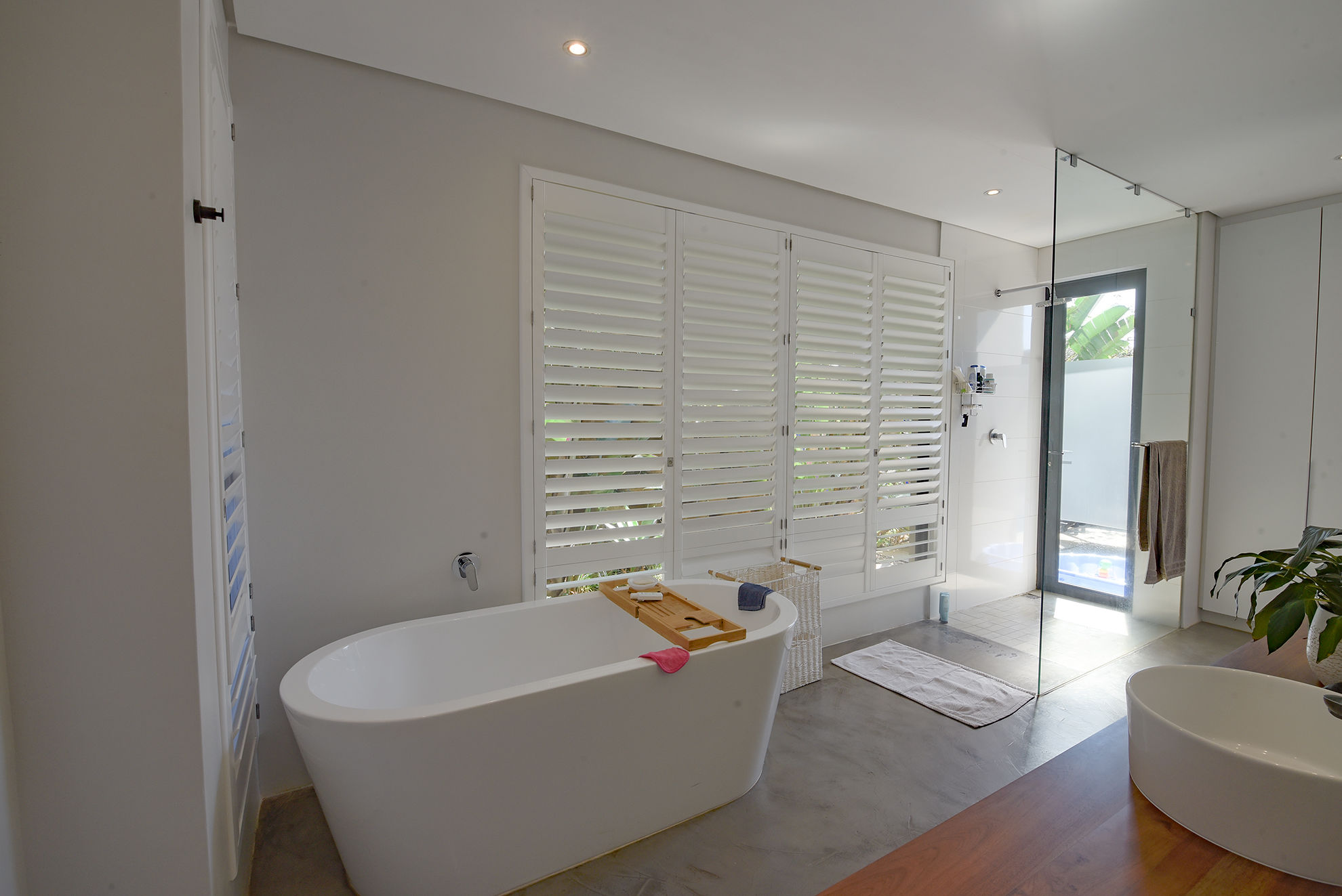 Central swimming pool, deck, and garden nestled between entertainment zones and bedrooms, sheltered from wind