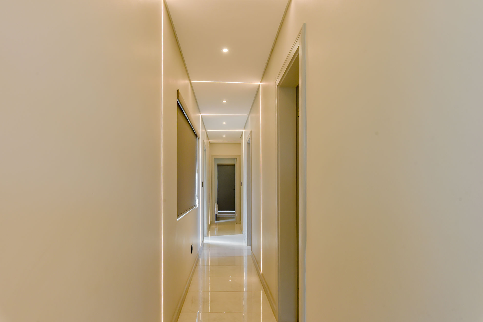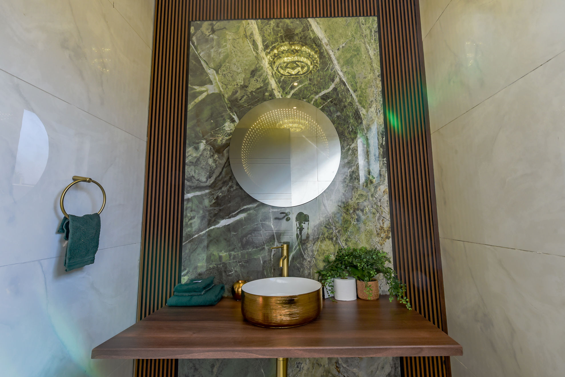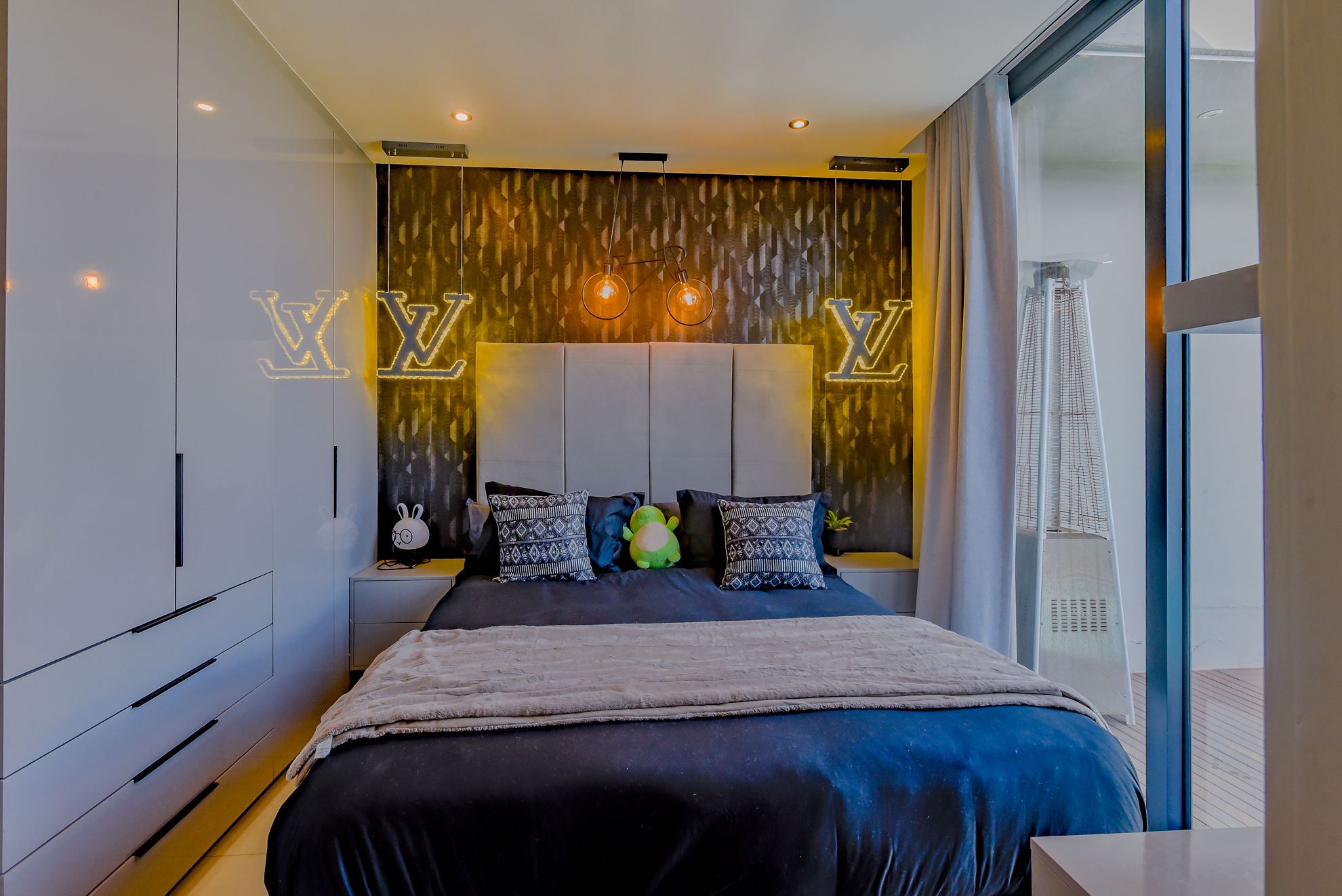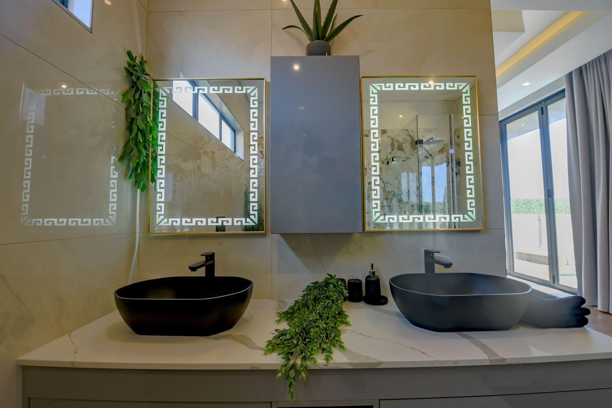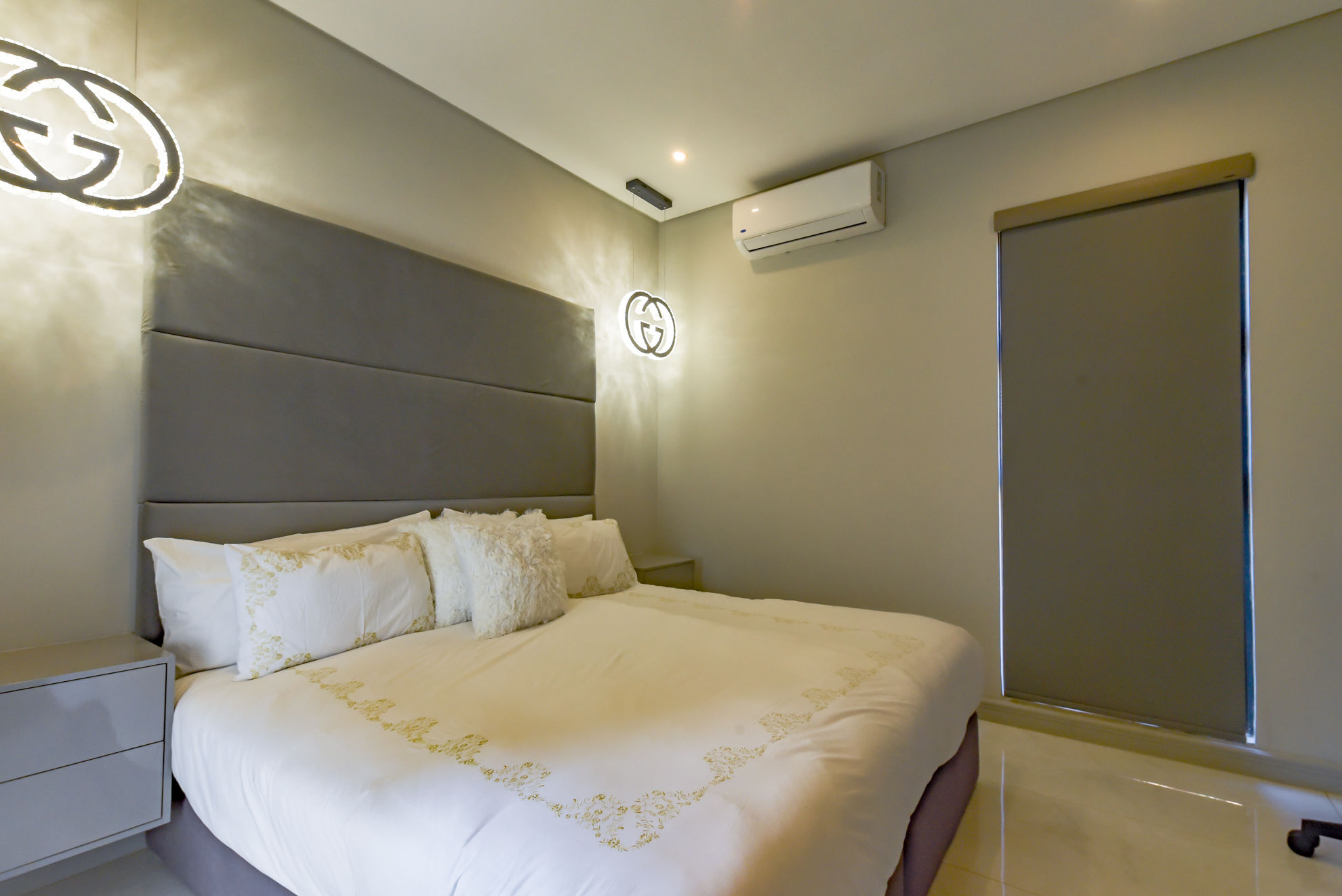 Four luxurious en-suite bedrooms, including a master suite with a walk-in dressing room, full bathroom, and private garden or pool access.