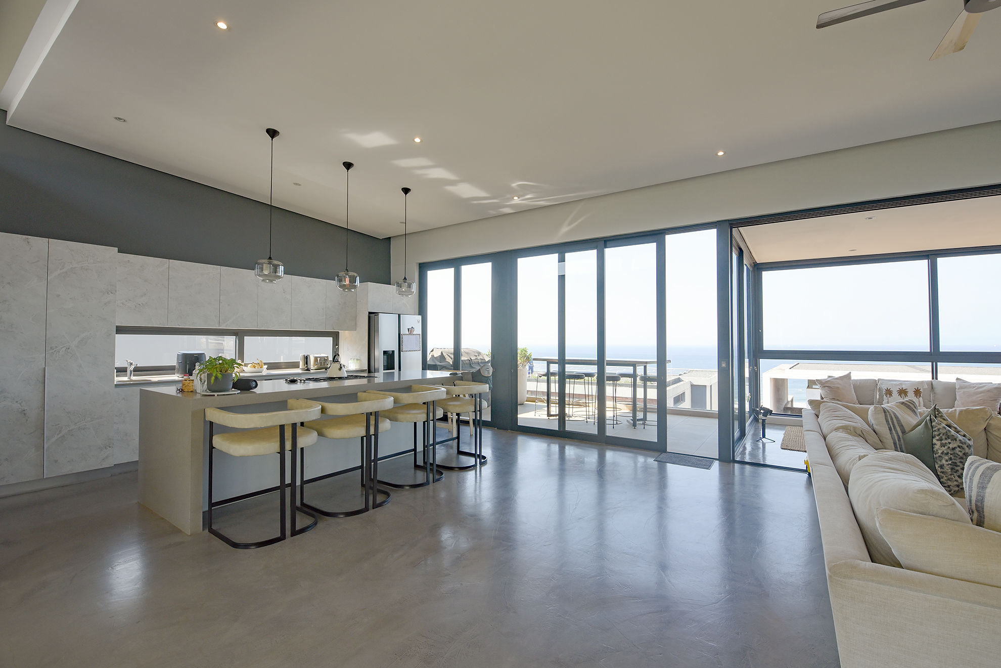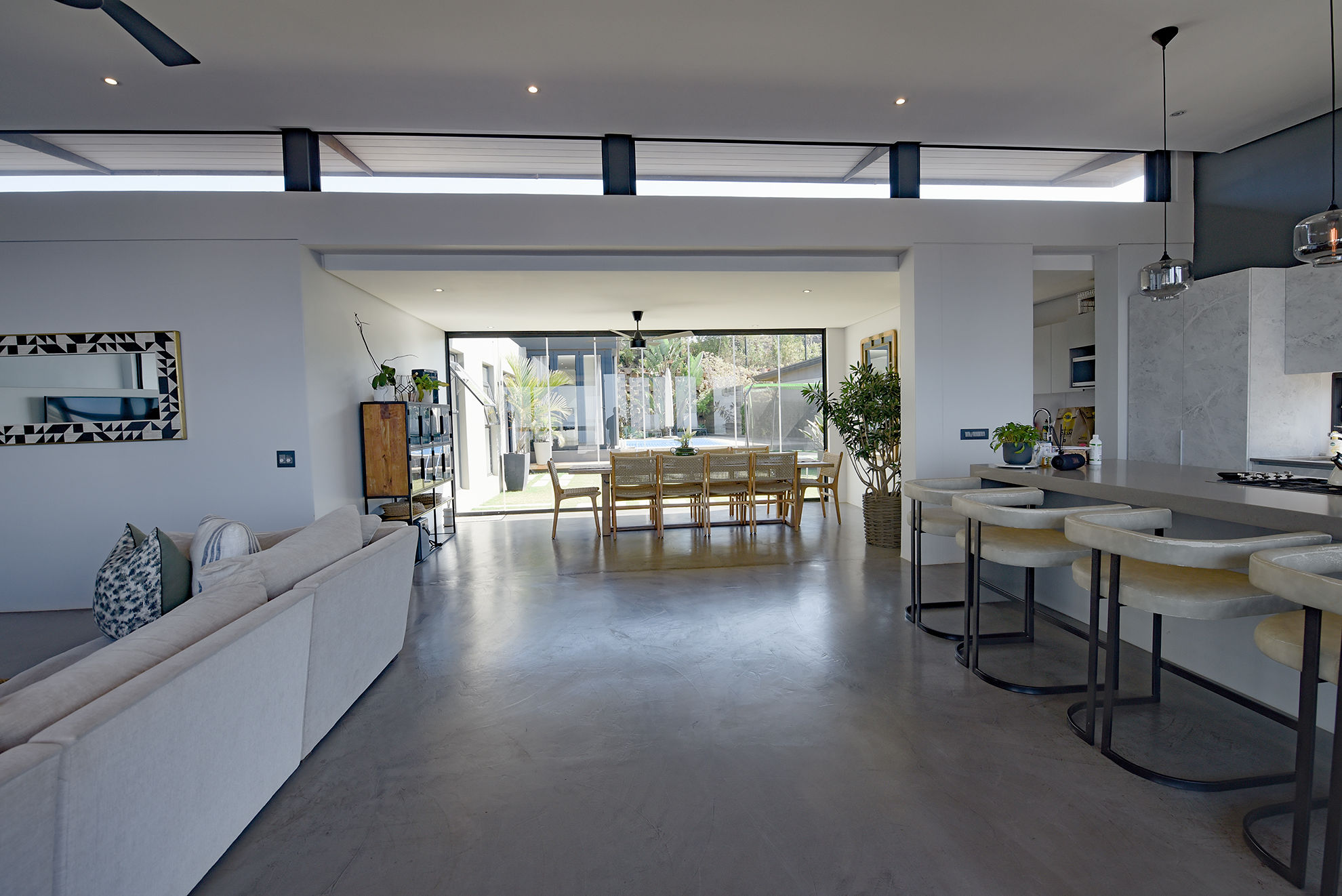 Open-plan living, kitchen, dining, bar, and scullery