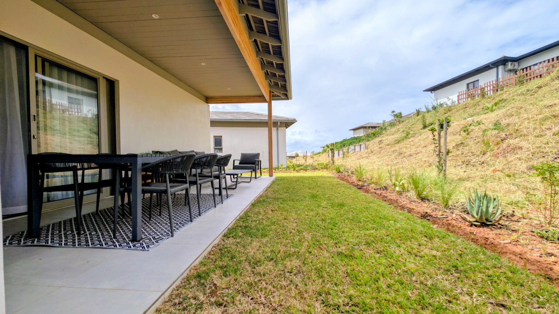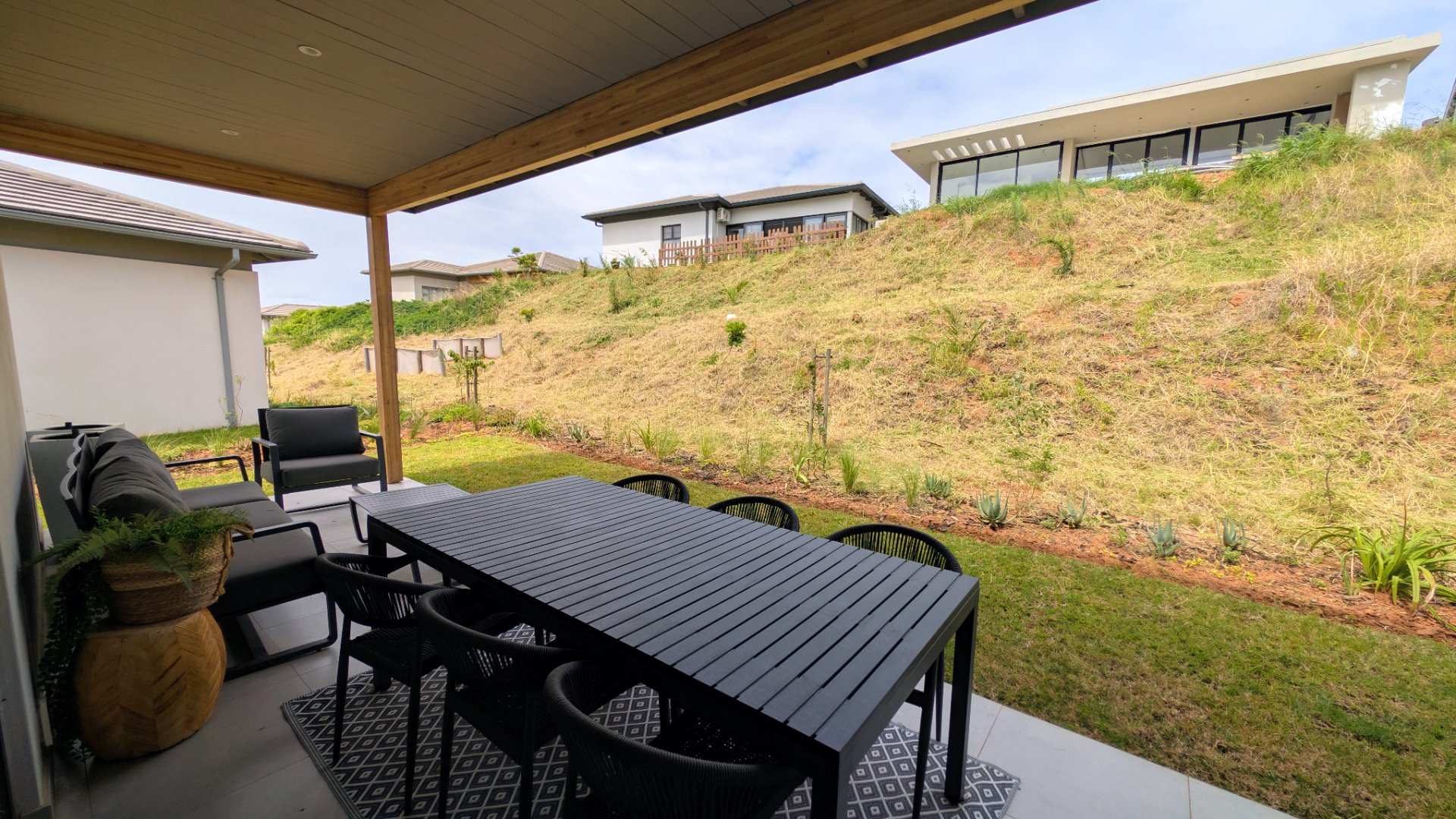 Sliding doors from the lounge leading onto covered patio and large indigenous garden