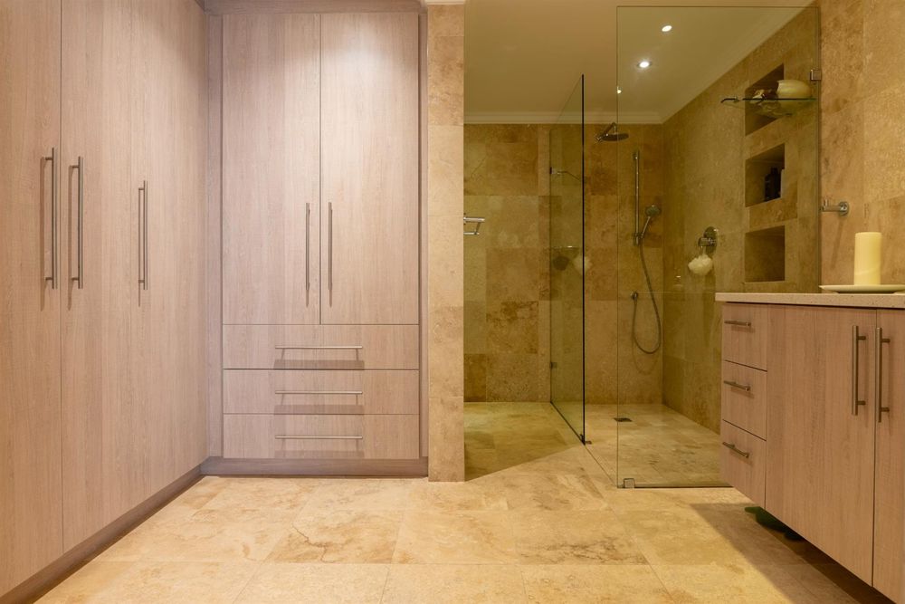 - Underfloor heating, wooden flooring, and travertine-tiled bathrooms