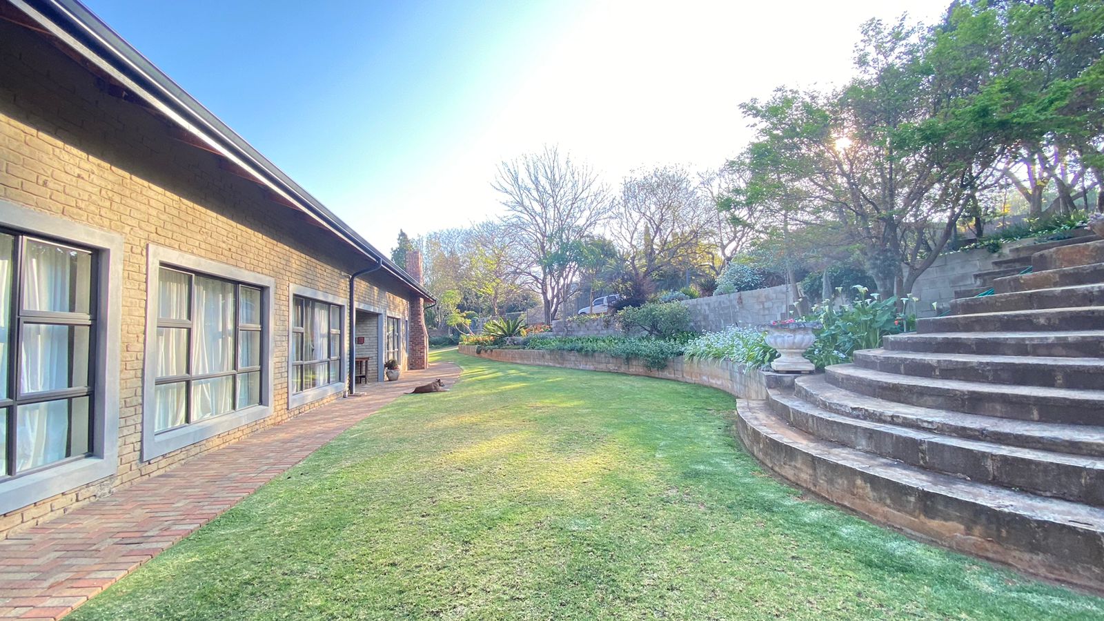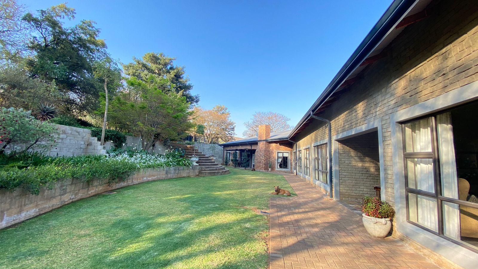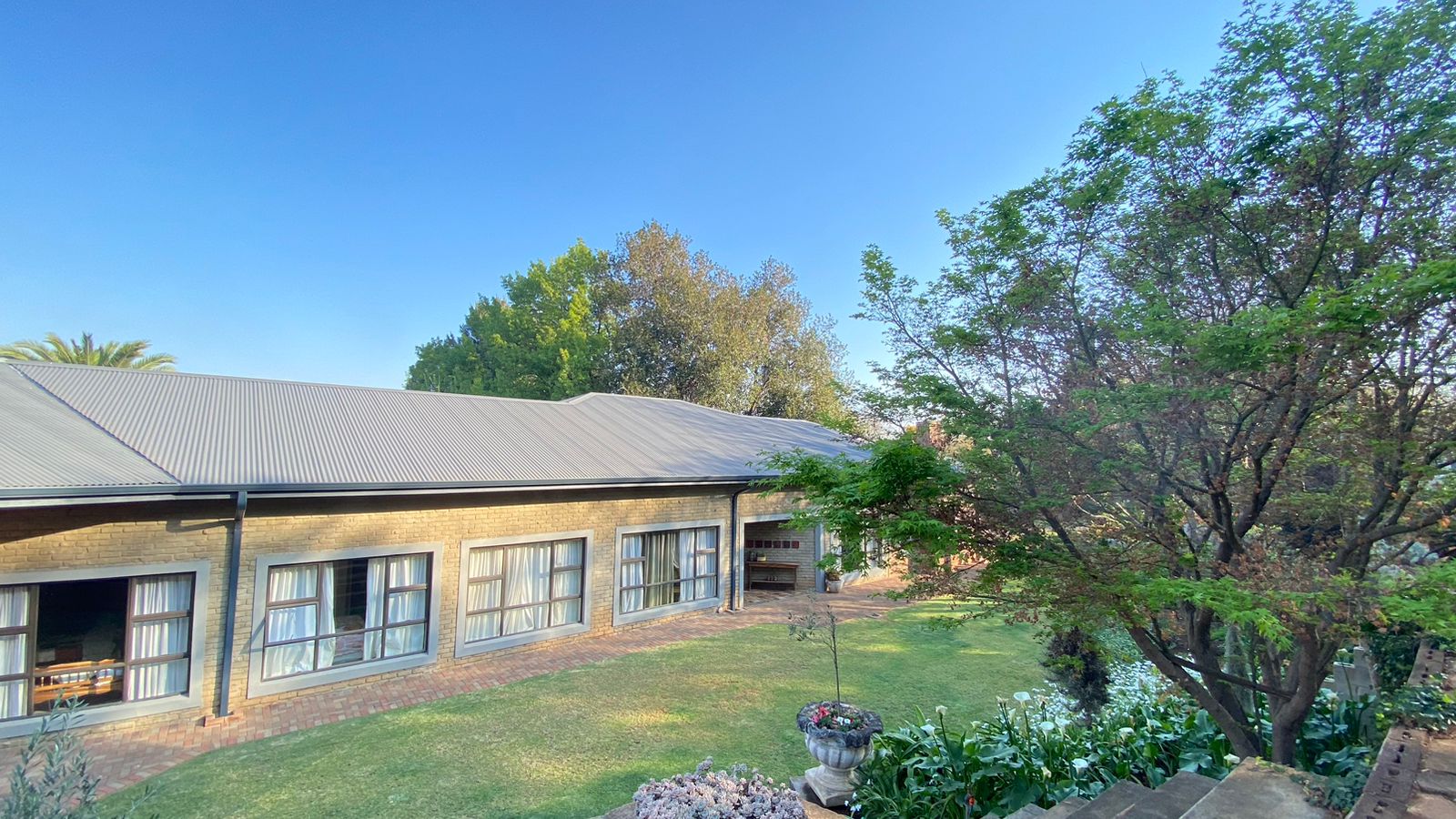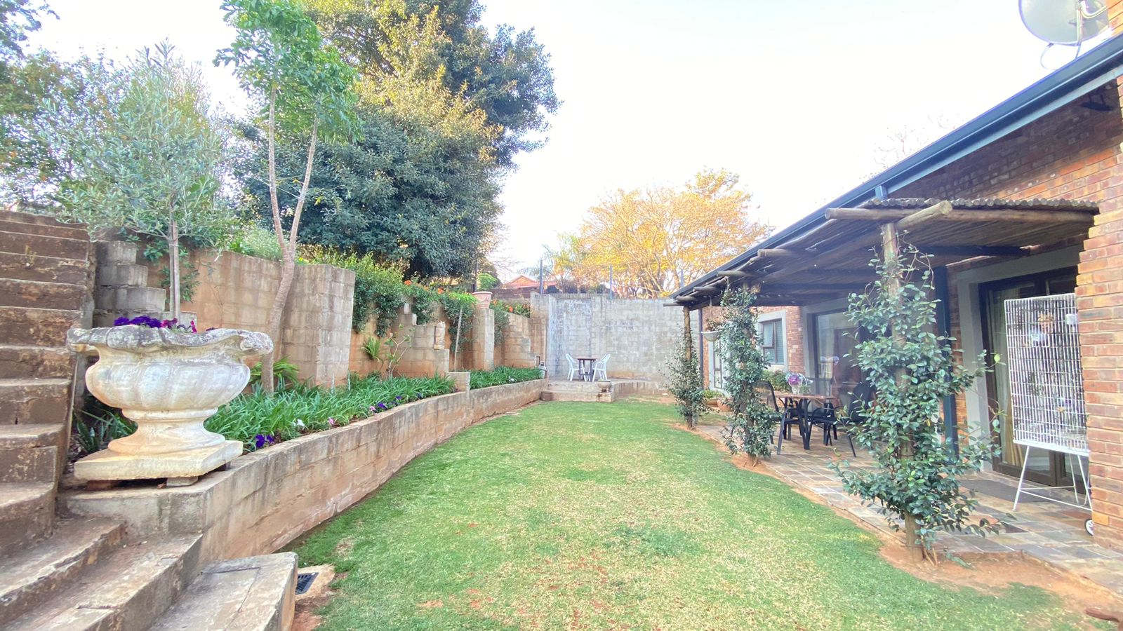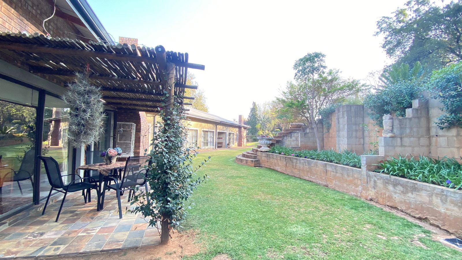 Lush Gardens: Surround yourself with beautiful, well-maintained gardens, including evergreen trees, flowers, and two Wendy houses for extra storage. With an irrigation system in place, maintenance is easy, and you can truly enjoy your outdoor space.