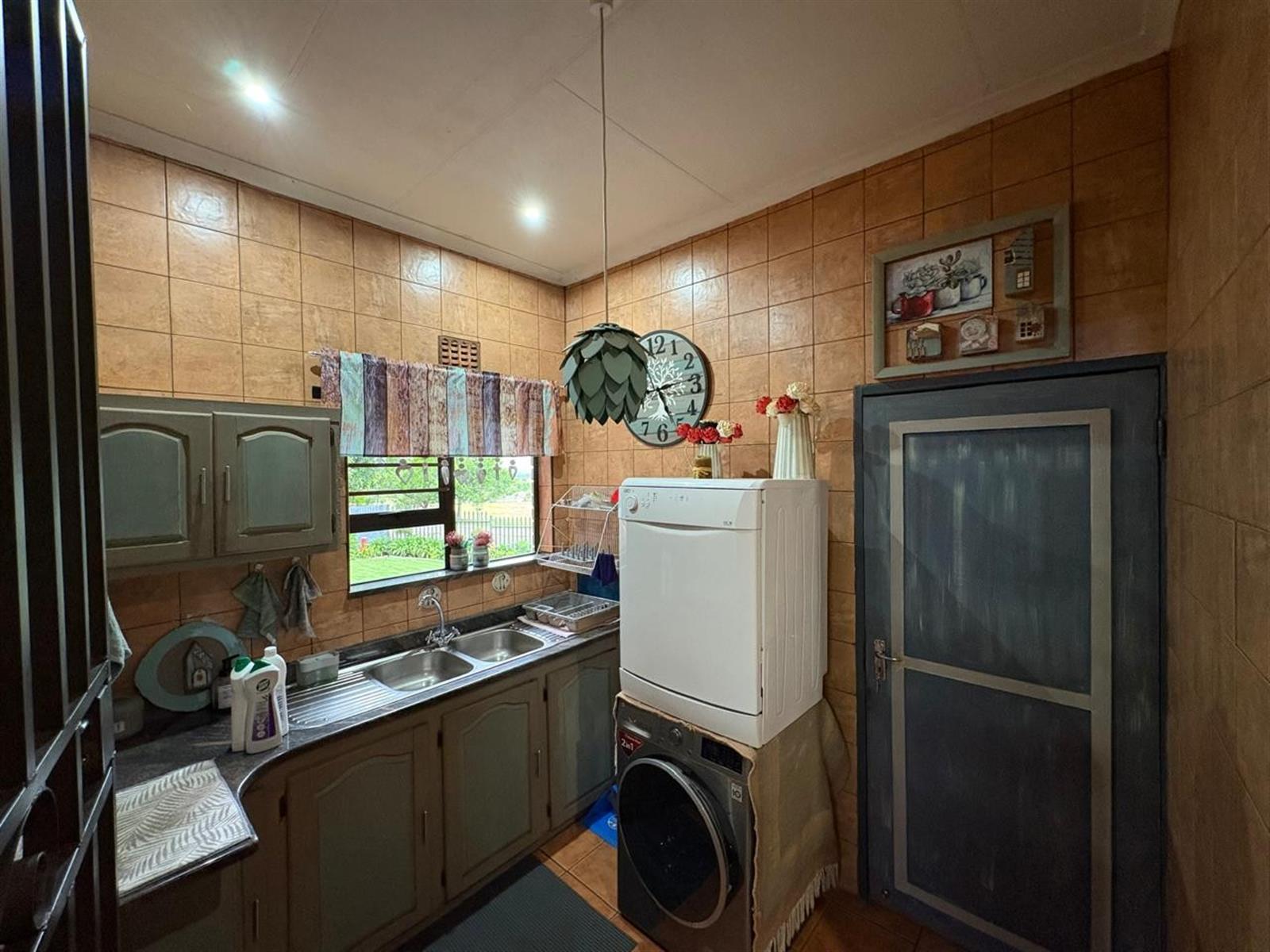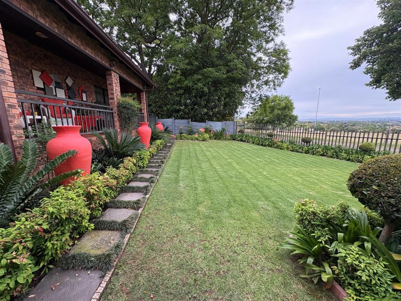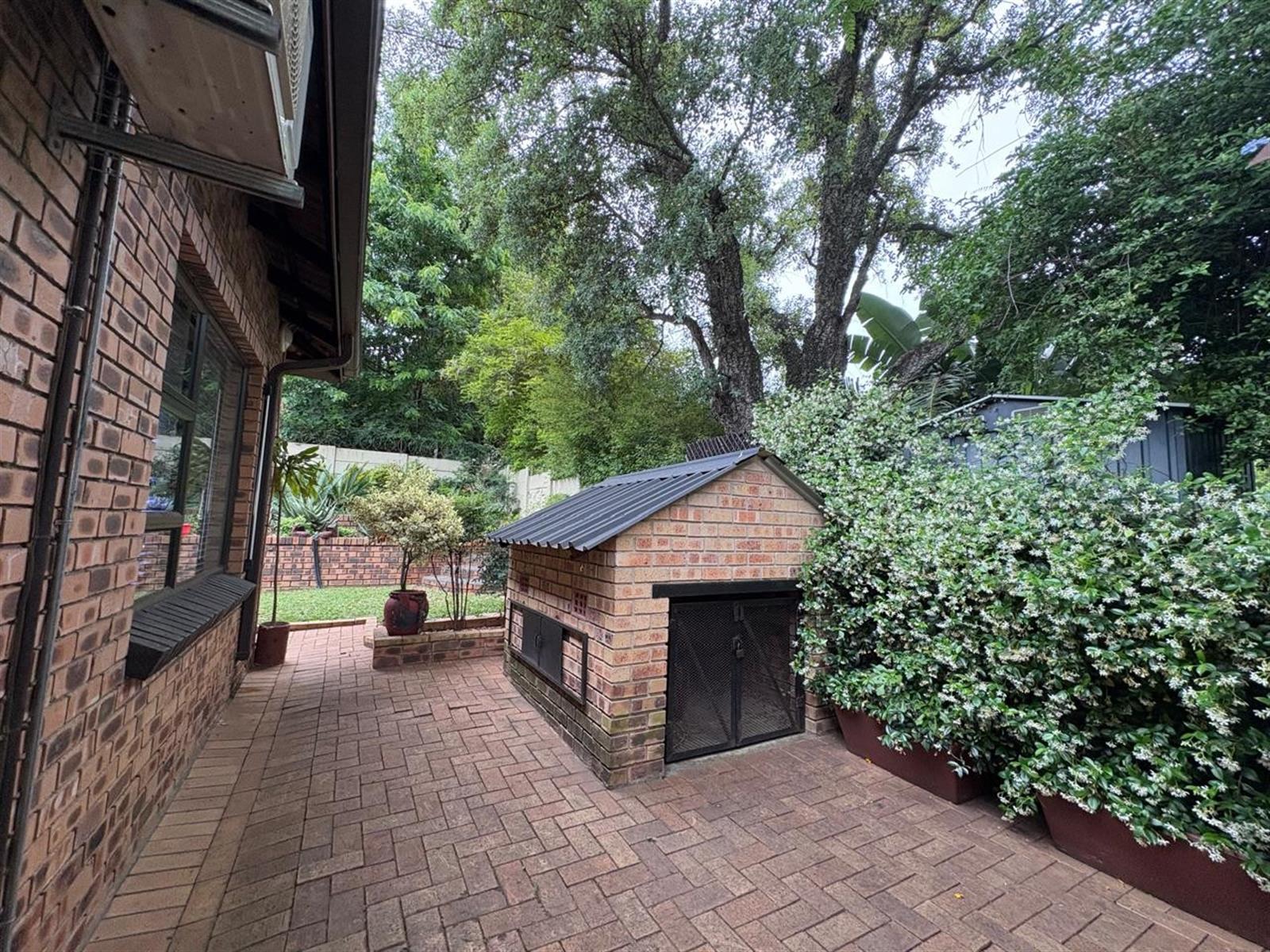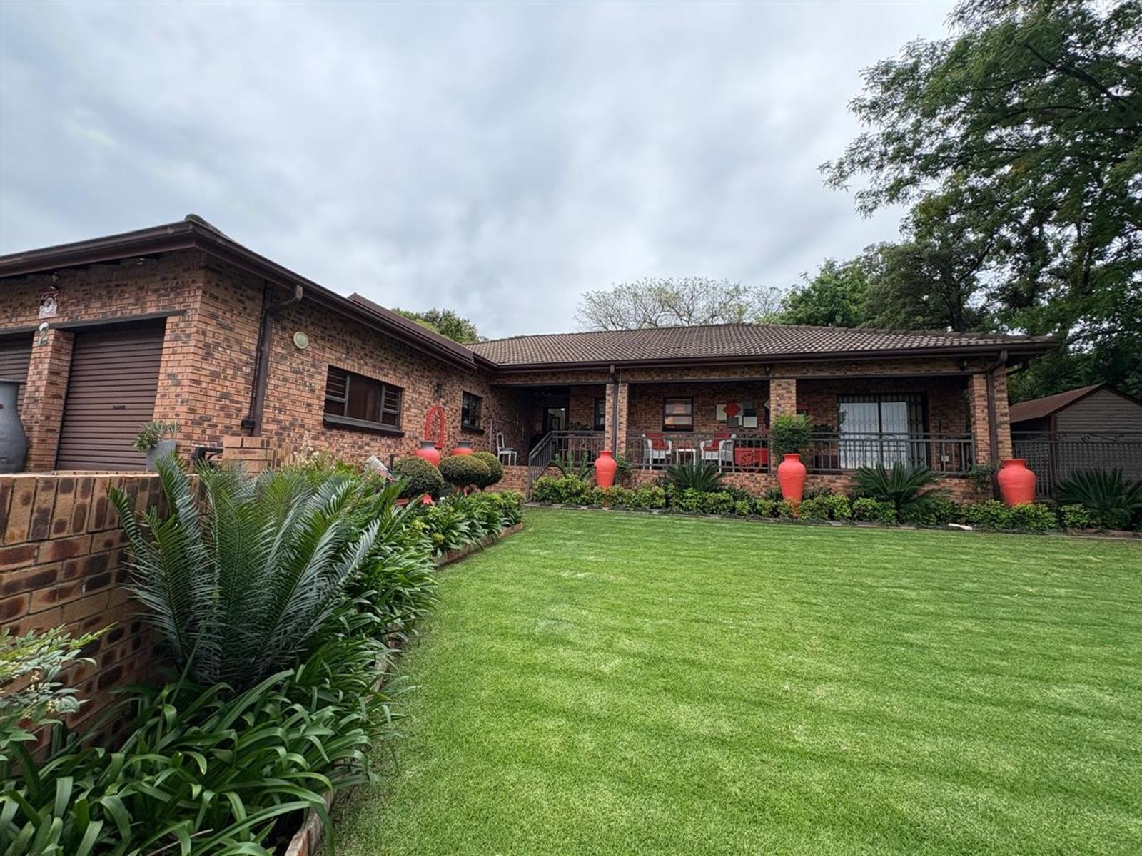 Outside, the pristine garden is a tranquil retreat, enhanced by an irrigation system, solar panels, inverter, and generator—offering sustainable living without compromise. A double garage with electric doors provides secure parking, and a charming Wendy house adds versatile storage or hobby space.