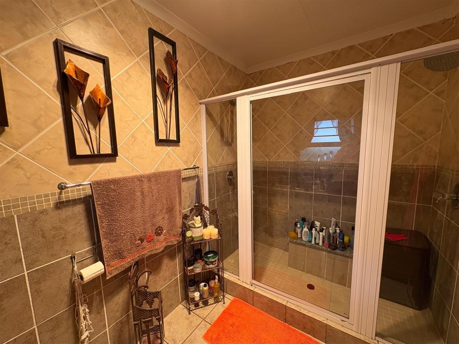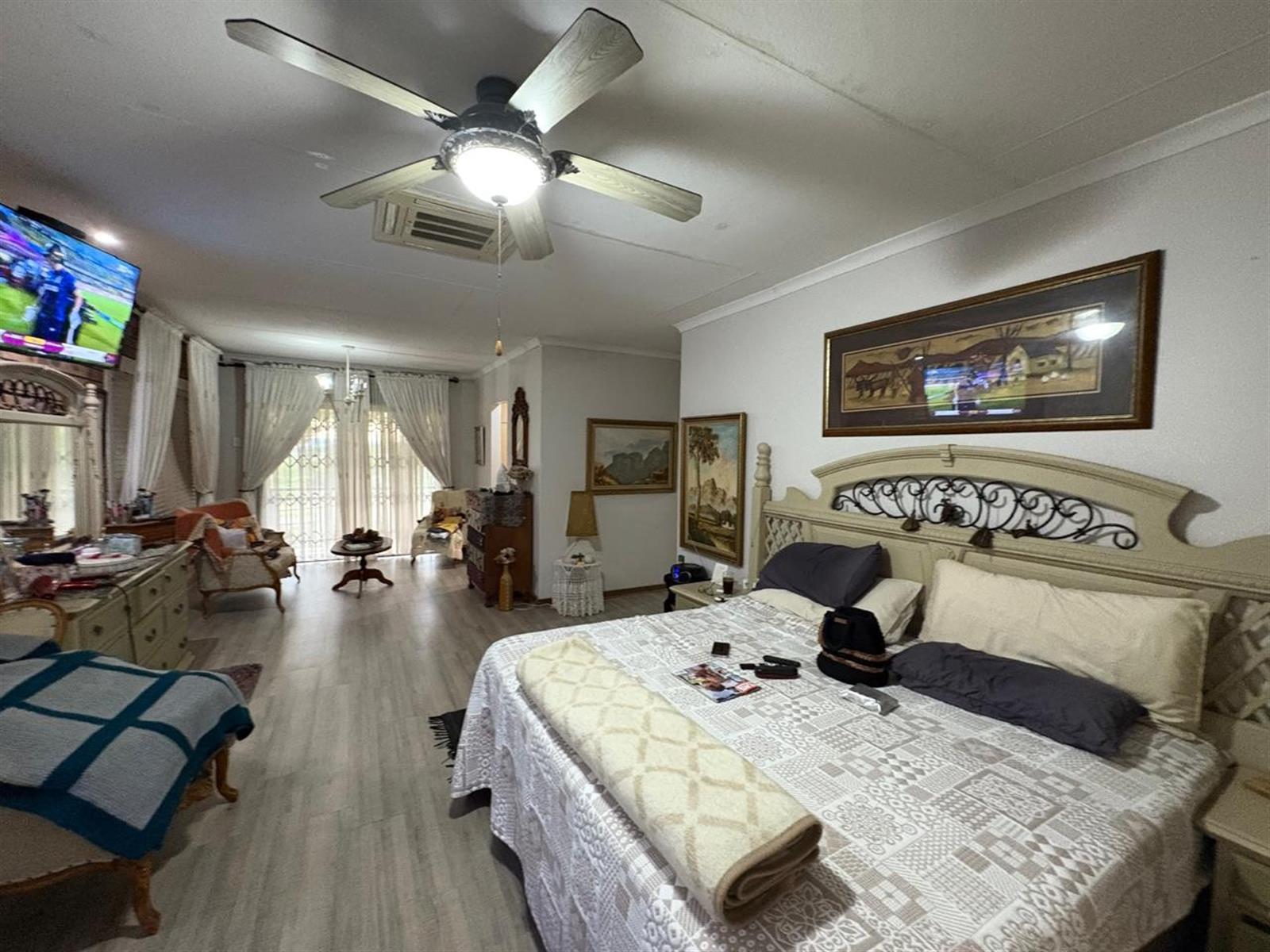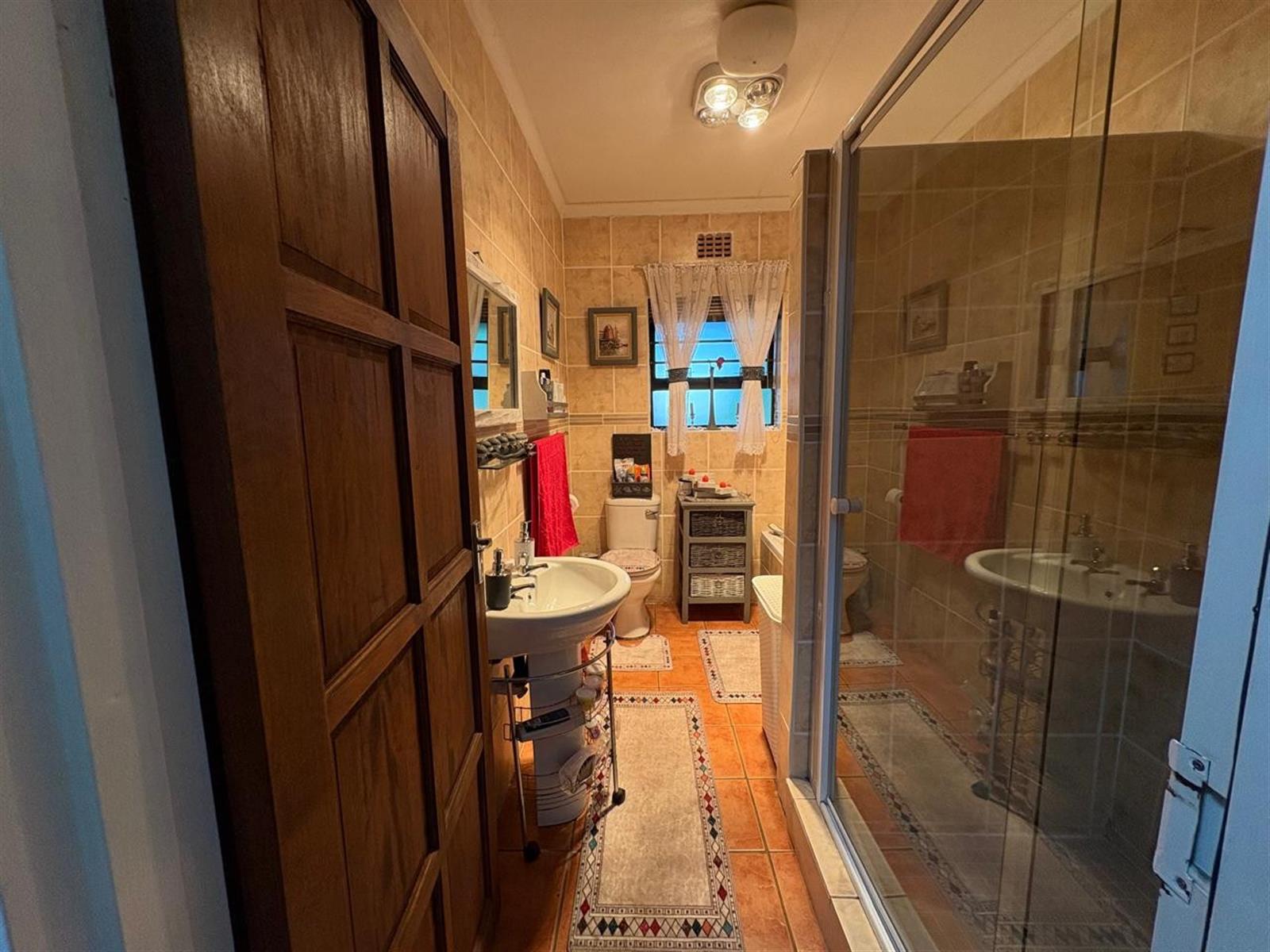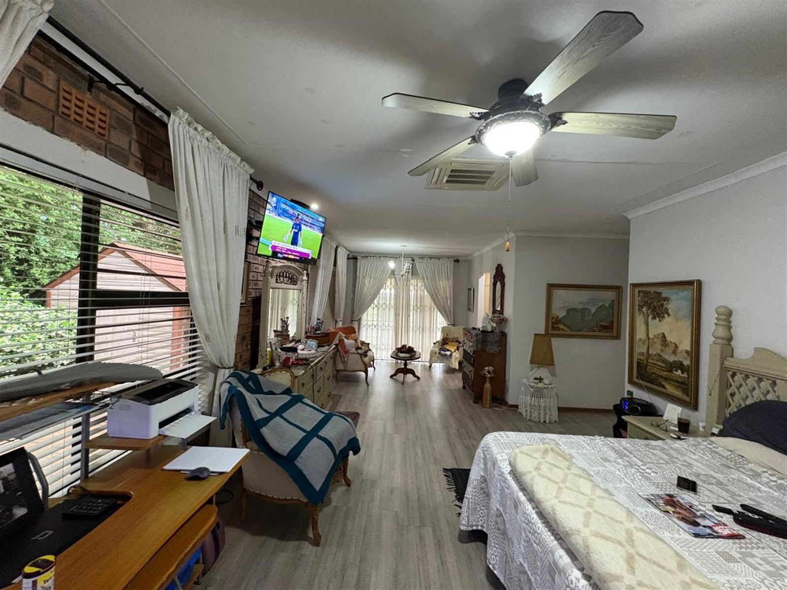 Outside, the pristine garden is a tranquil retreat, enhanced by an irrigation system, solar panels, inverter, and generator—offering sustainable living without compromise. A double garage with electric doors provides secure parking, and a charming Wendy house adds versatile storage or hobby space.