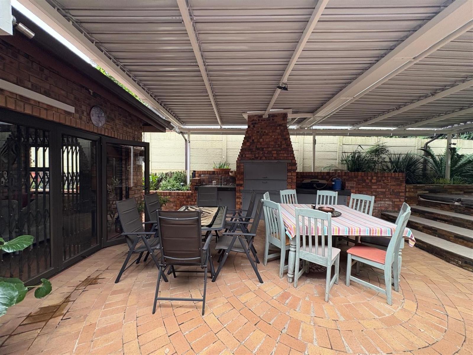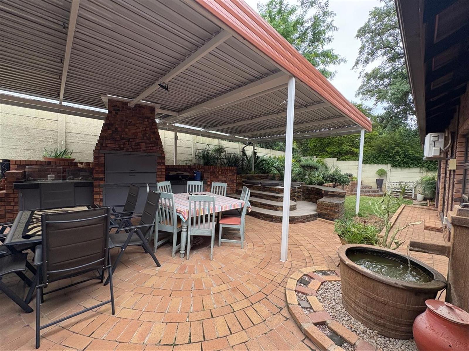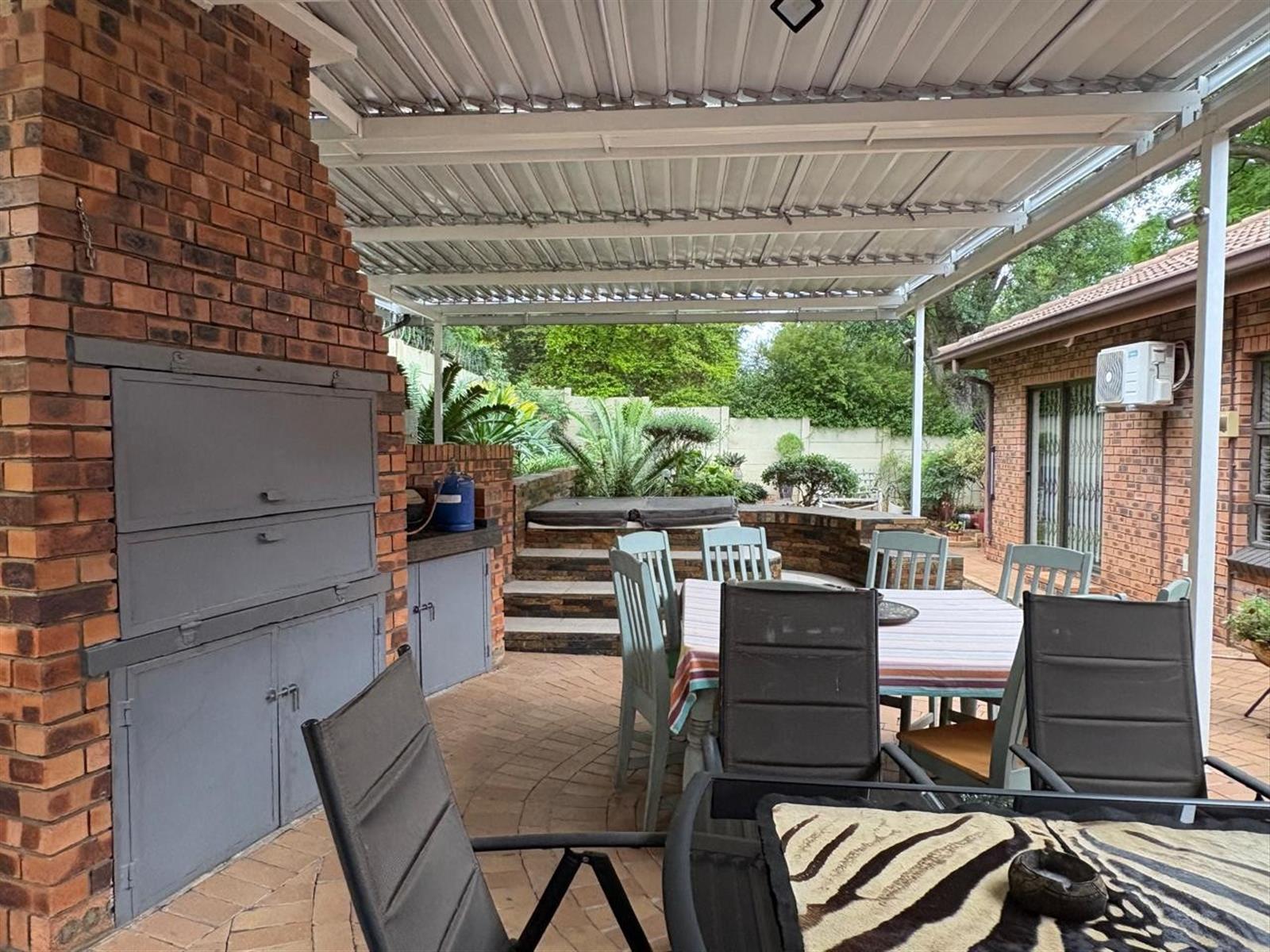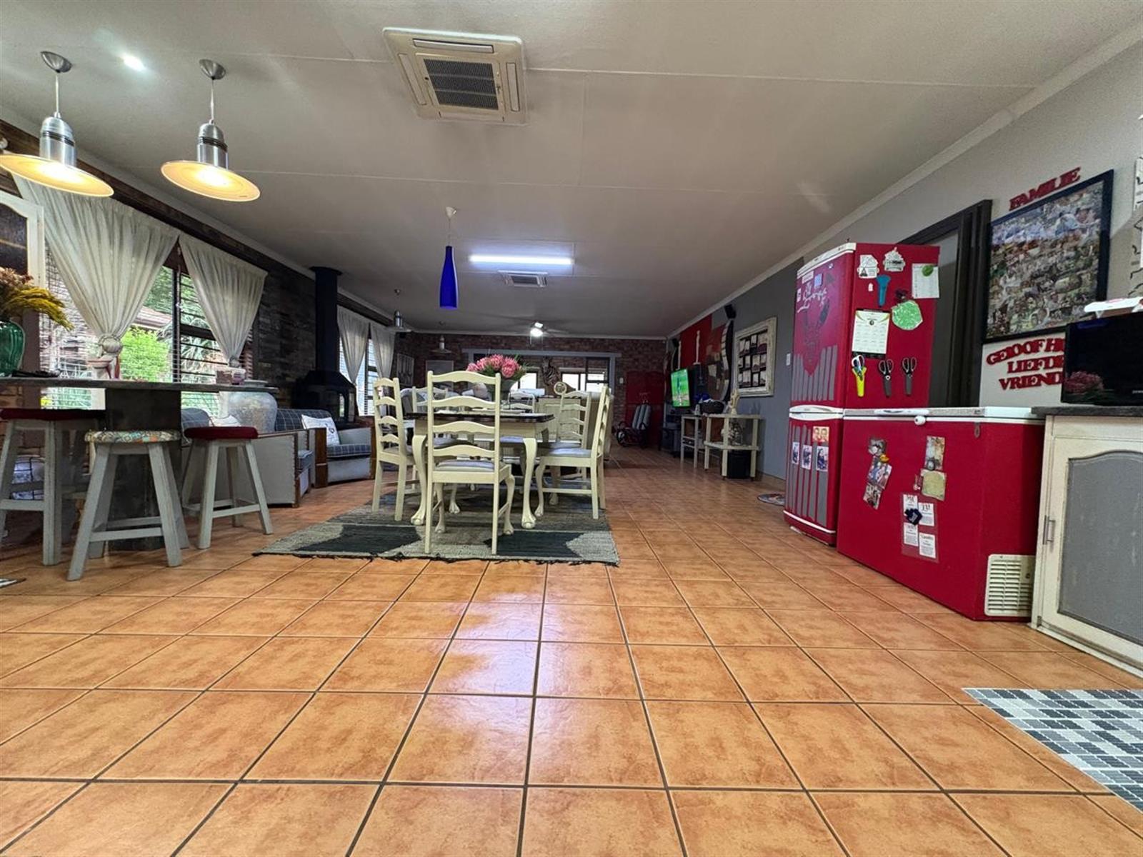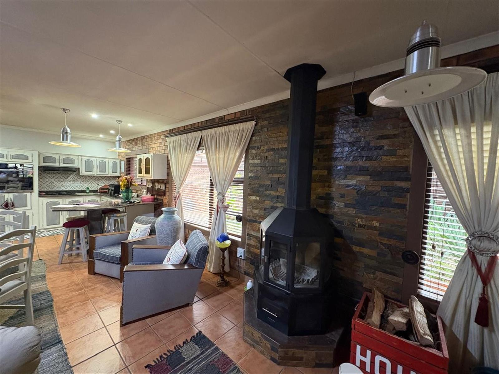 Step inside to discover a generous open-plan layout where the living, dining, and kitchen areas flow seamlessly—ideal for both relaxed family living and effortless entertaining. A cozy fireplace and air-conditioning ensure year-round comfort, while the indoor entertainment area and enclosed patio with built-in braai invite memorable gatherings, rain or shine.