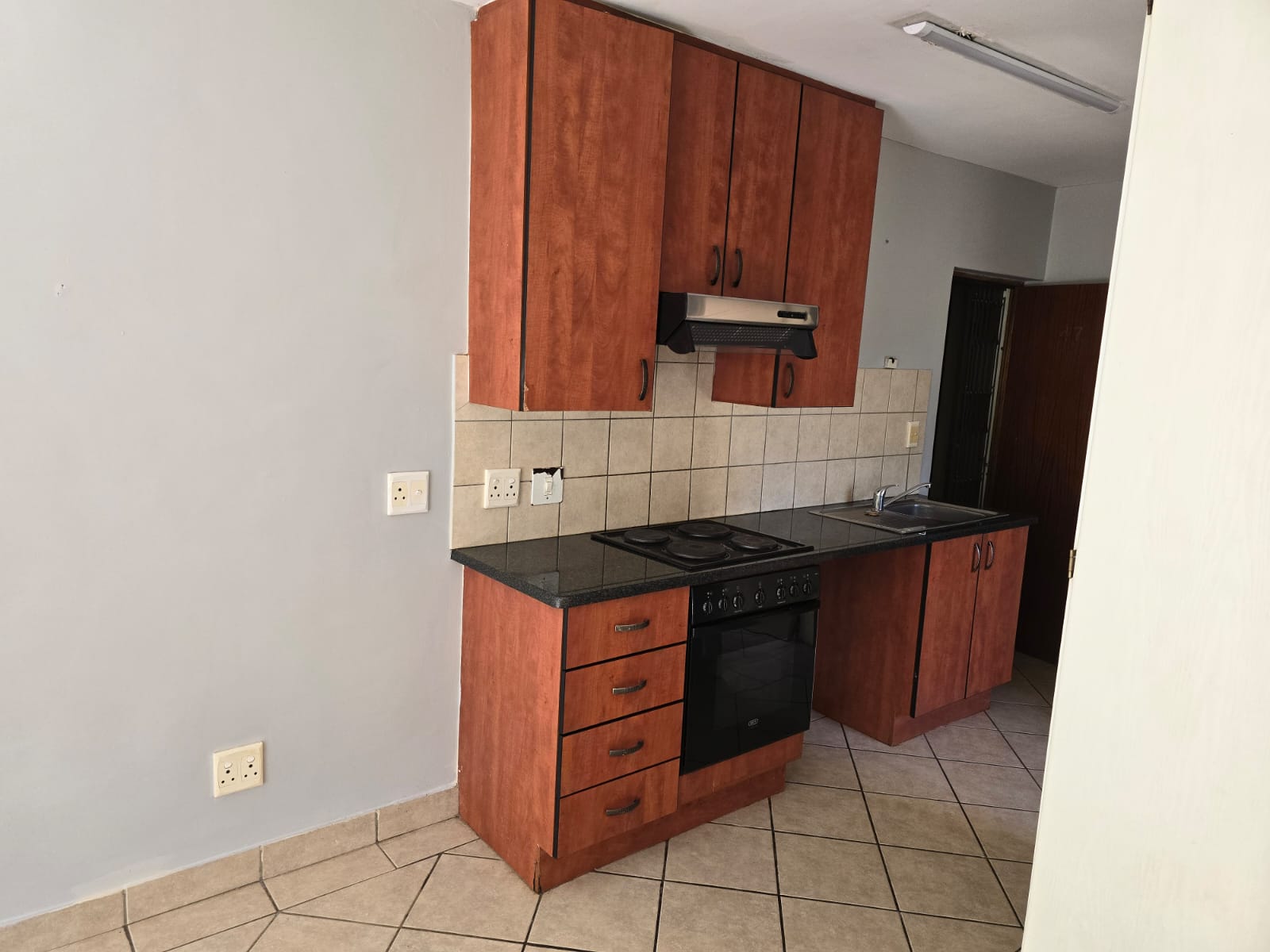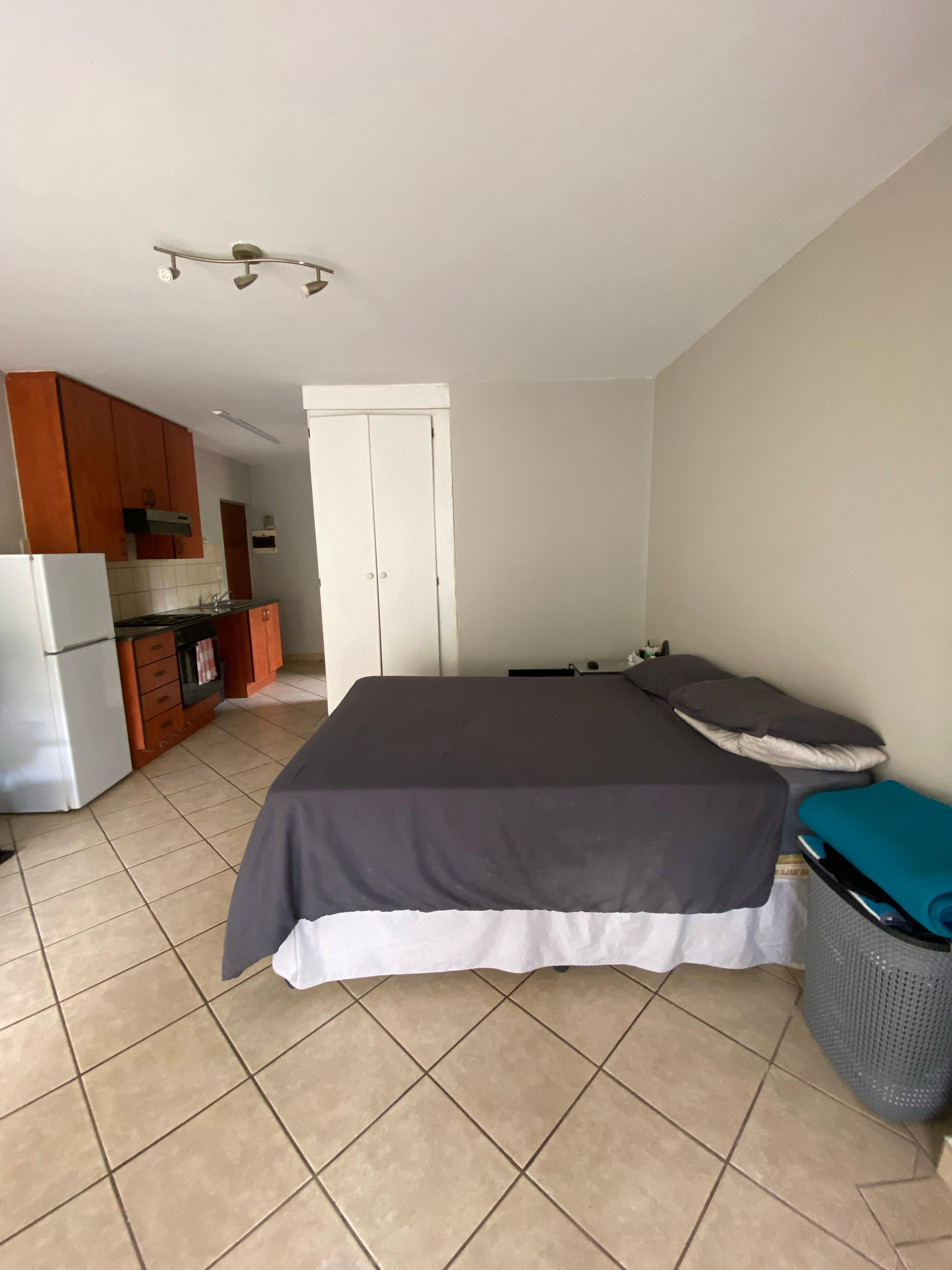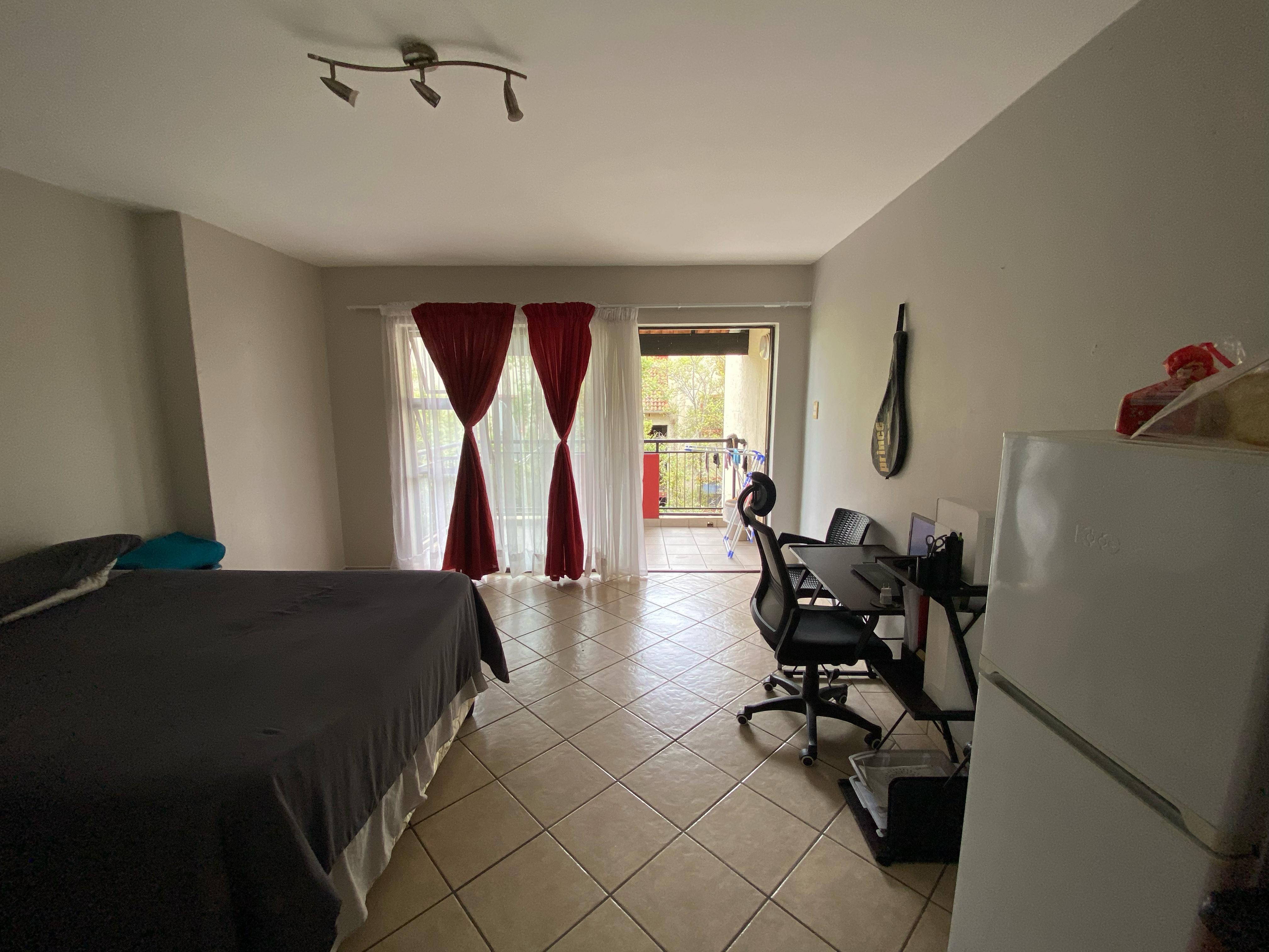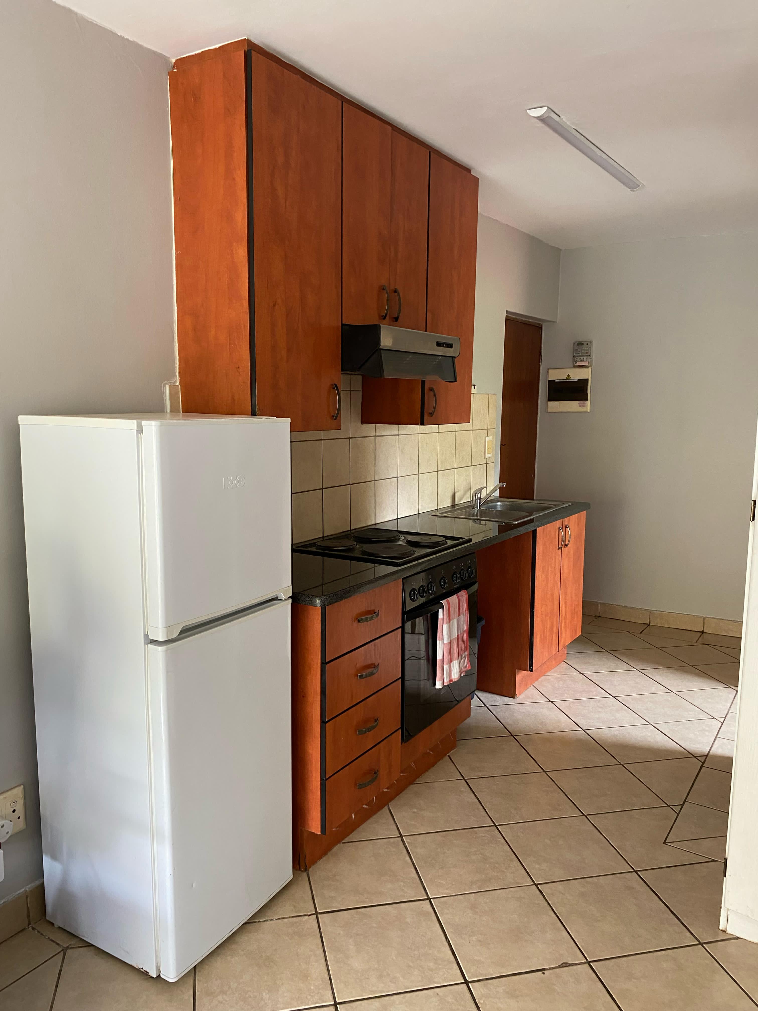 This stylish studio apartment, for rental located on the 4th floor of the sought-after Oukraal Estate, is the perfect blend of comfort and convenience. Upon entering, you're greeted by a modern kitchen featuring brand new built-in cupboards and a recently installed stove. The open-plan layout seamlessly integrates the bedroom area, complete with built-in cupboards and a sliding door that leads out to a private balcony, offering beautiful views and a relaxing space to unwind.