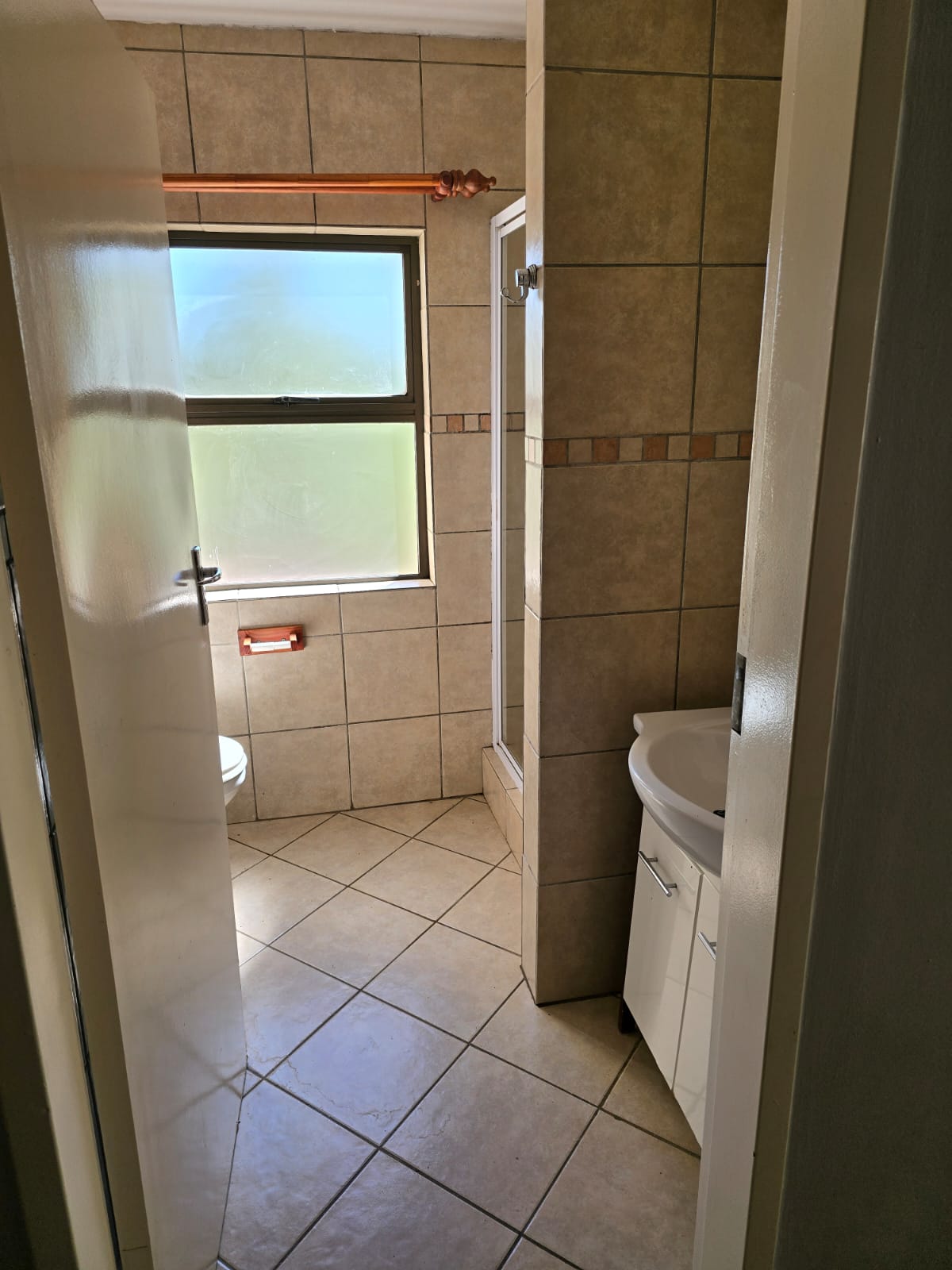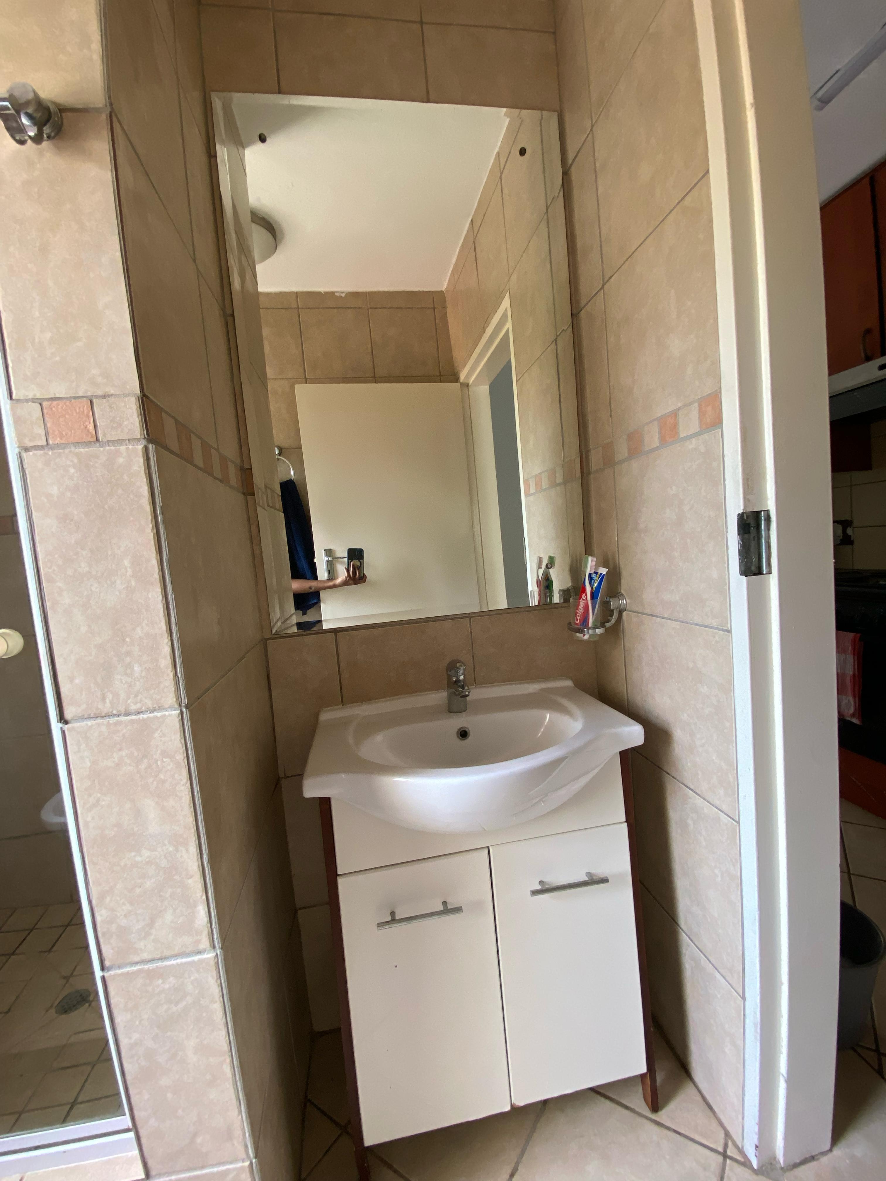 The separate bathroom boasts contemporary finishes, including a sleek shower. The apartment also comes with a dedicated carport and ample visitor parking. Additionally, there is no loadshedding, and prepaid electricity ensures easy management of utilities.