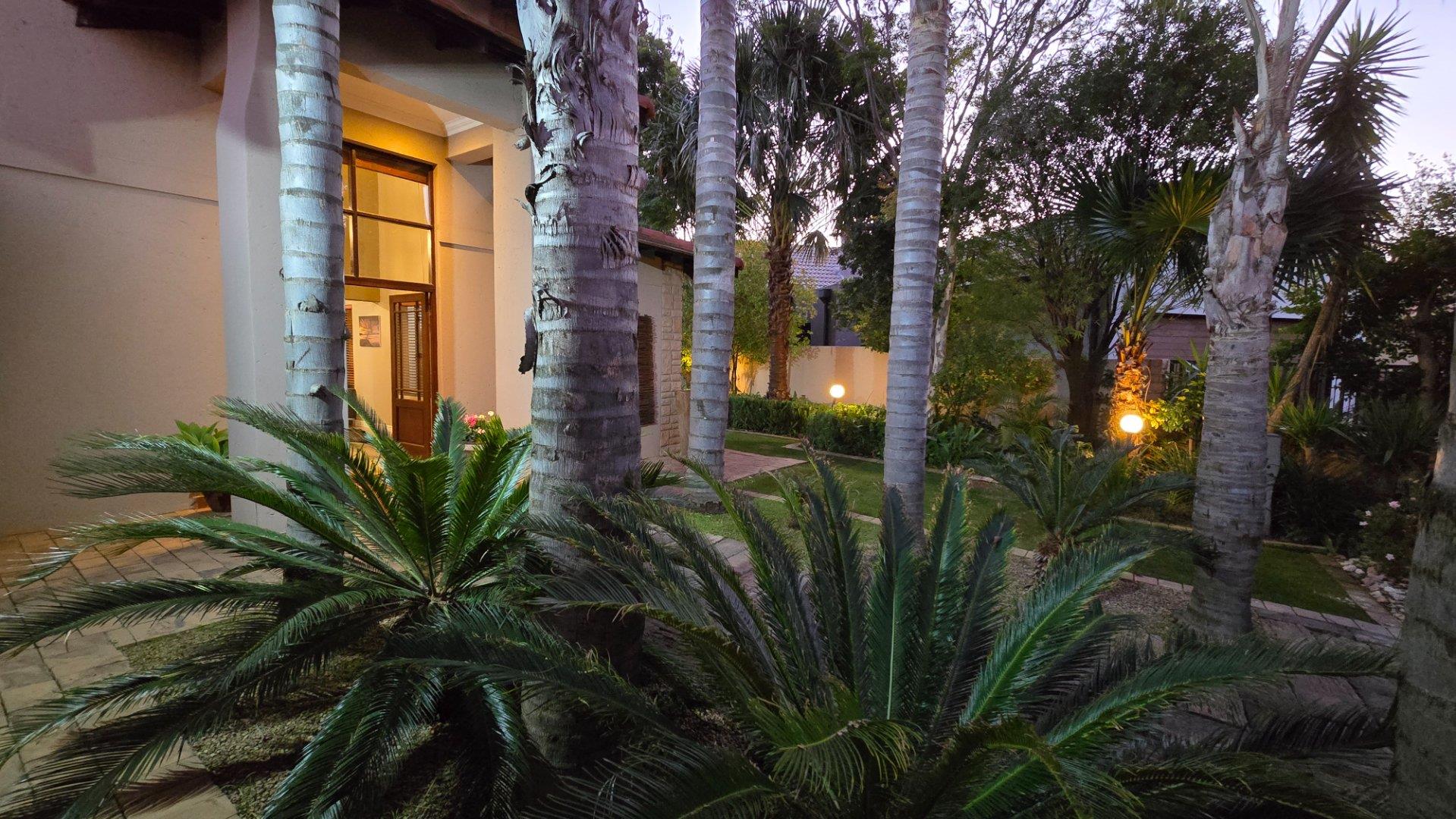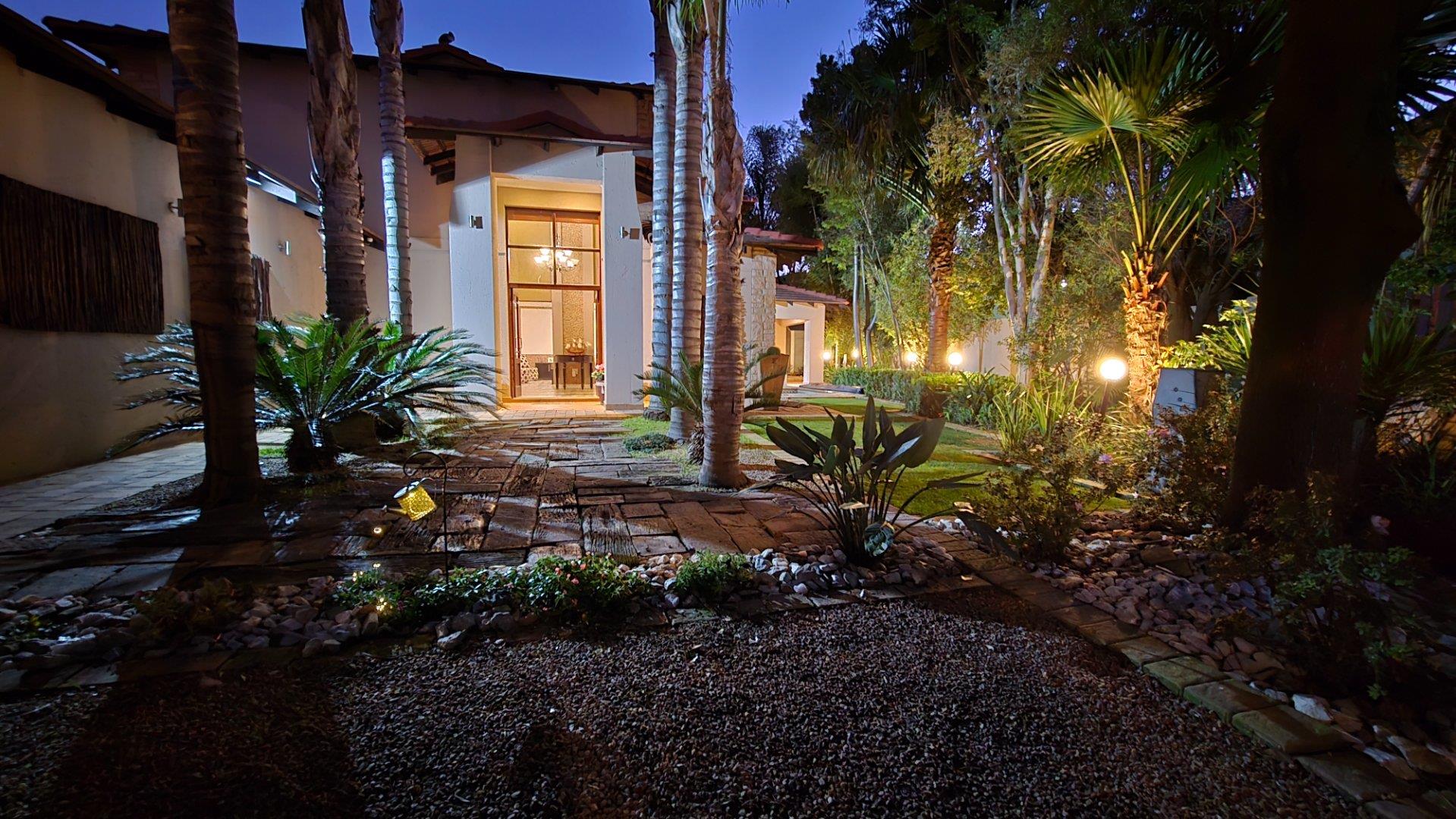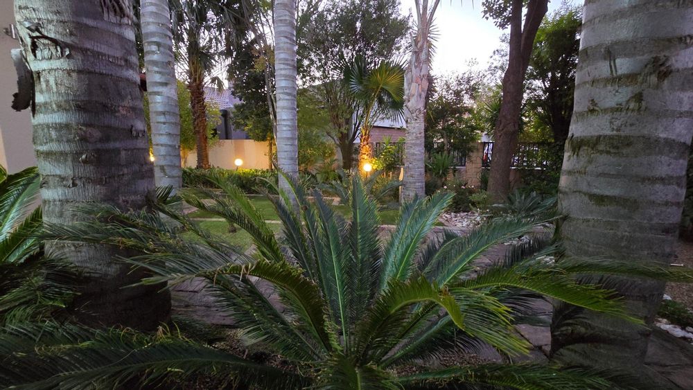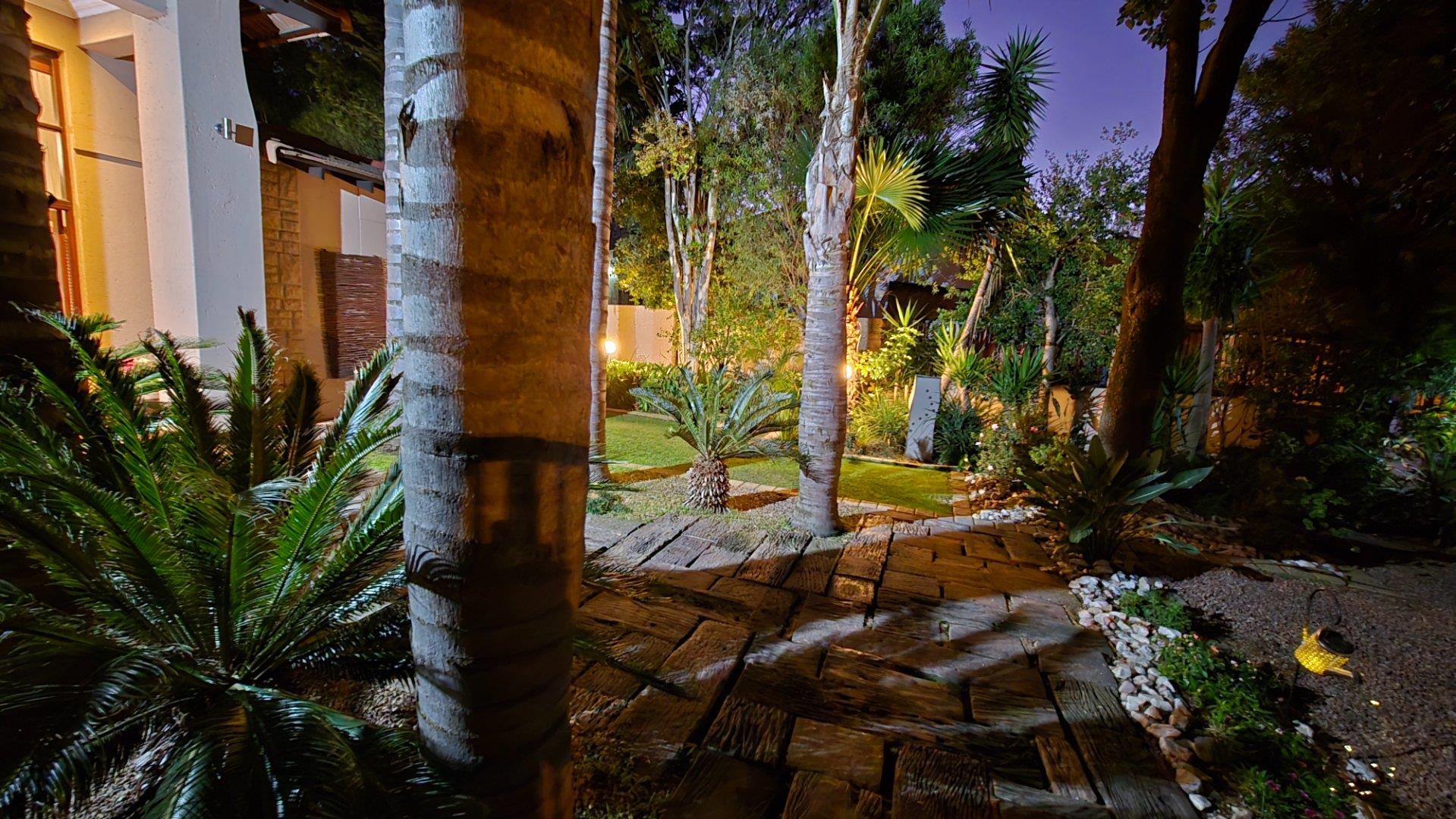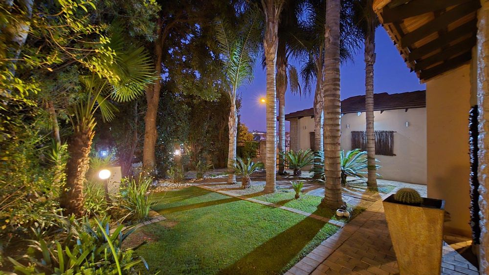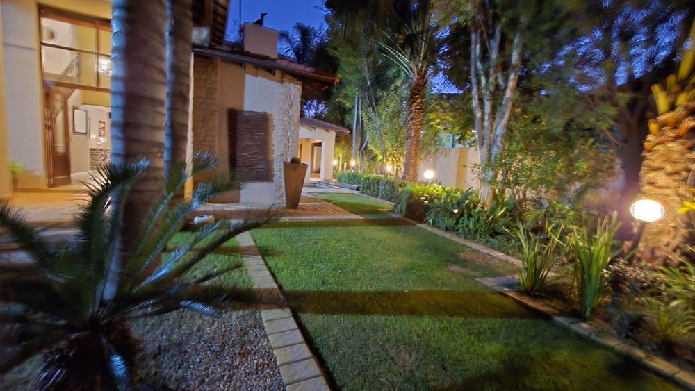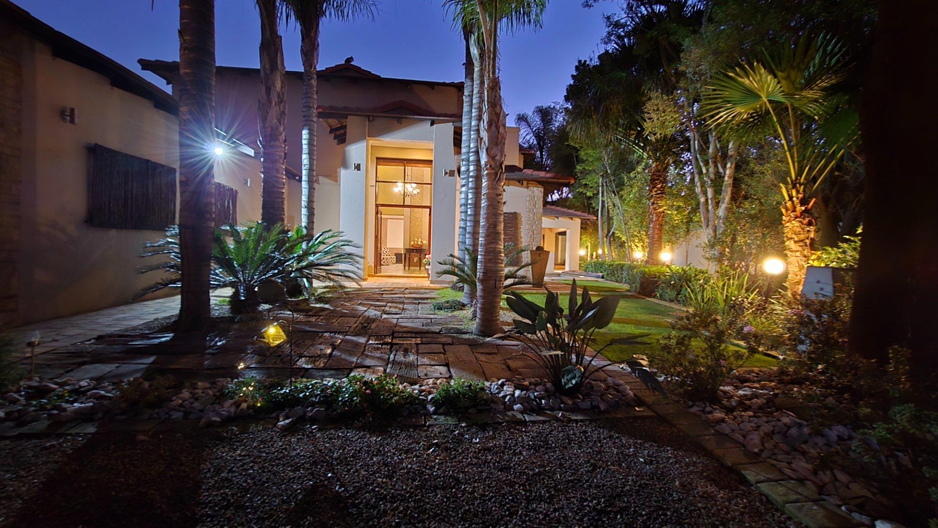 The private garden creates an authentic retreat feel, complete with palm trees and a black marblelite pool. An expansive outdoor entertainment area includes a boma and patio, both capable of being enclosed with awnings to suit all-weather enjoyment.