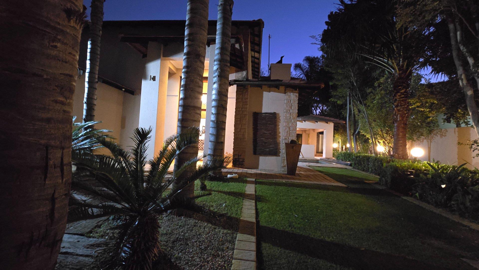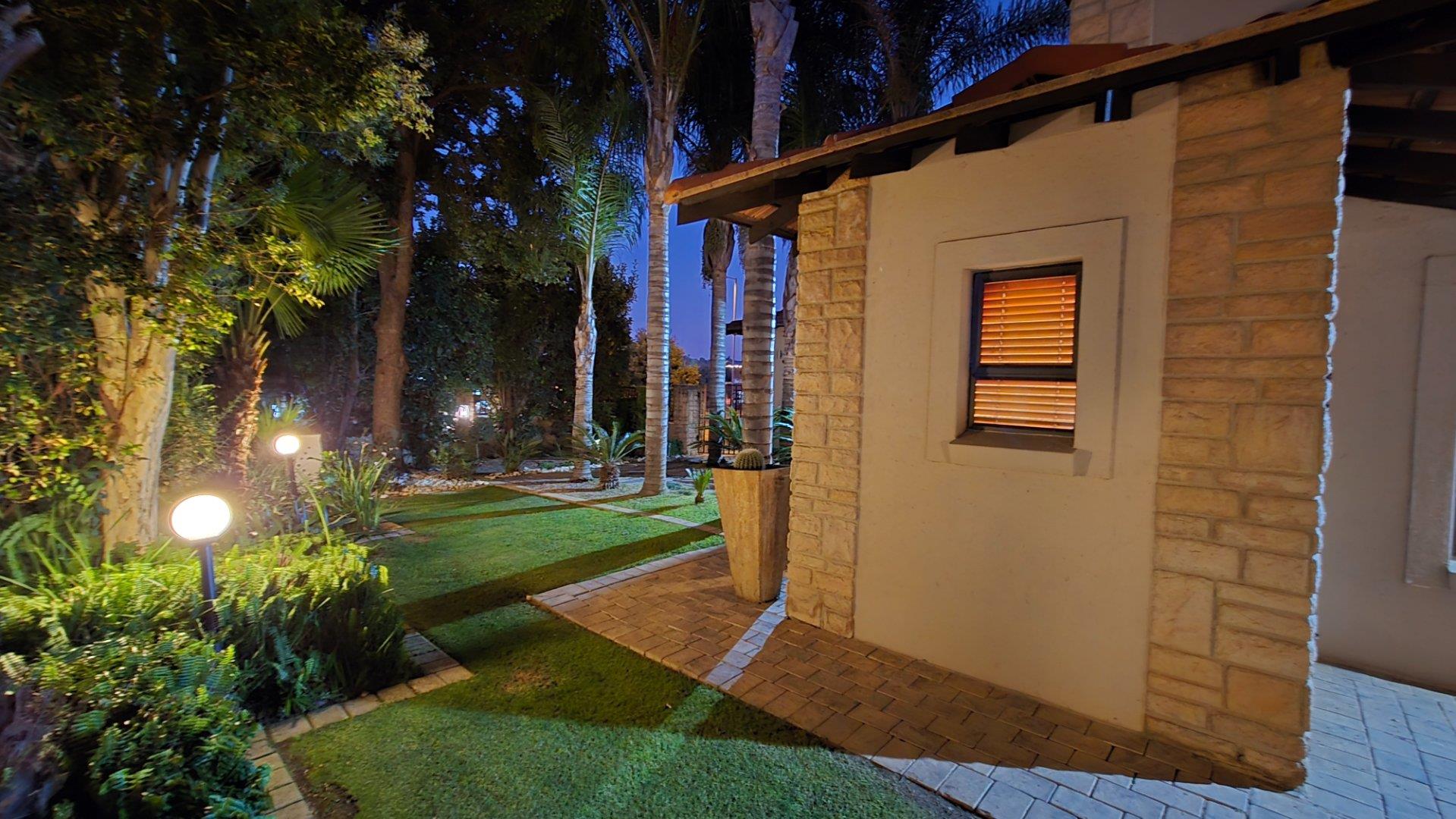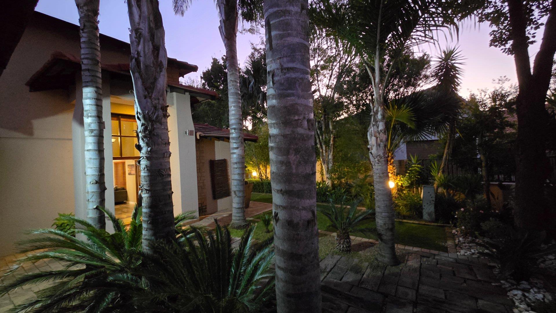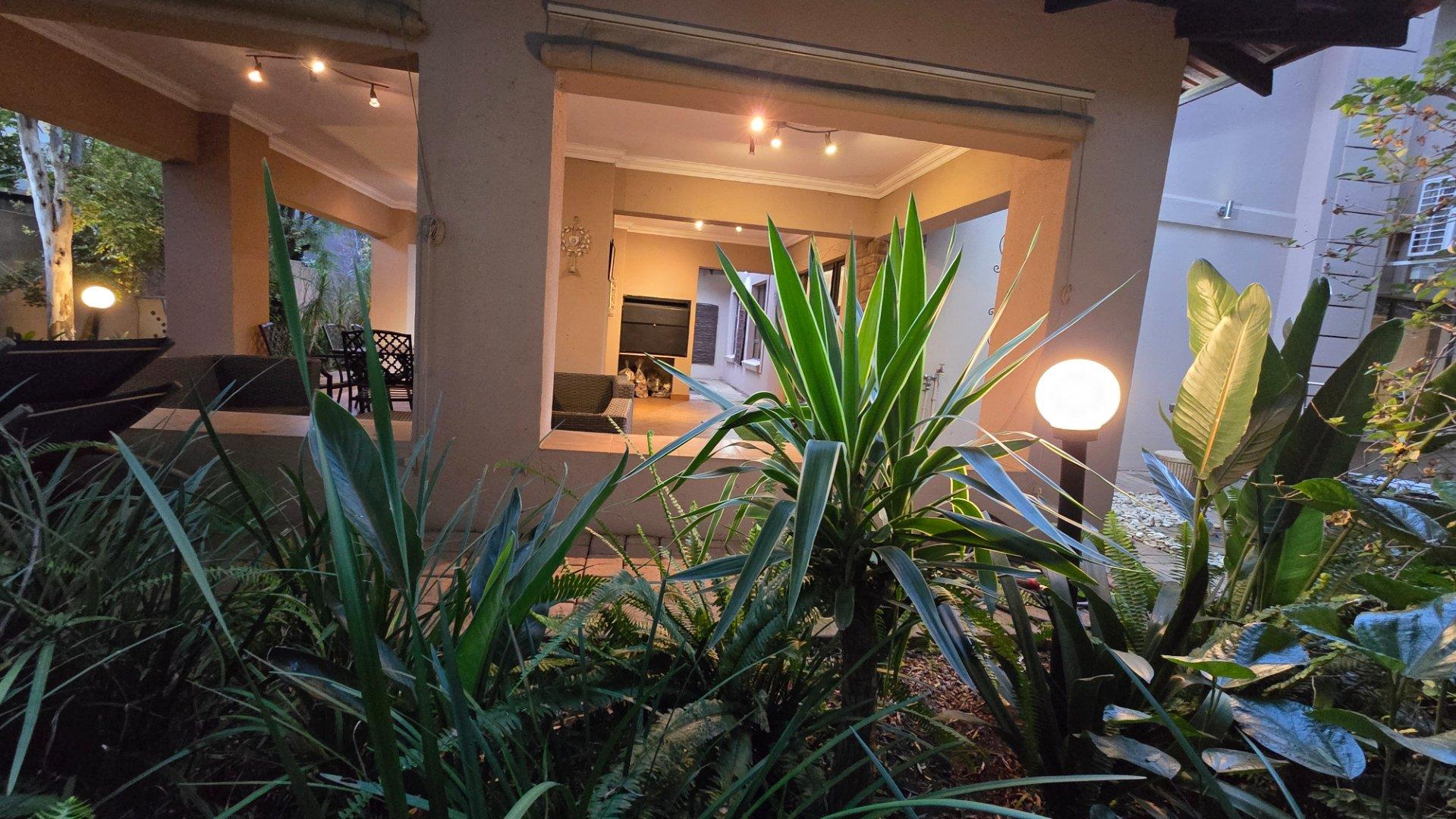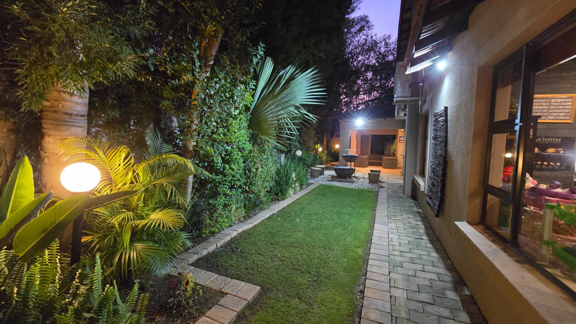 The private garden creates an authentic retreat feel, complete with palm trees and a black marblelite pool. An expansive outdoor entertainment area includes a boma and patio, both capable of being enclosed with awnings to suit all-weather enjoyment.